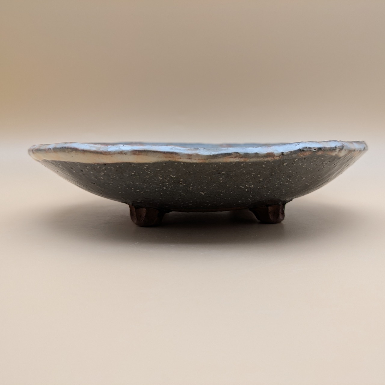 萩焼の盛皿6.5寸です。手仕事の温かみが感じられる美しい萩焼の盛皿です。素朴ながらも上品なデザインで、どんな料理も引き立ててくれます。4つの足付き高台が付いているため、食卓に置いても安定感があります。