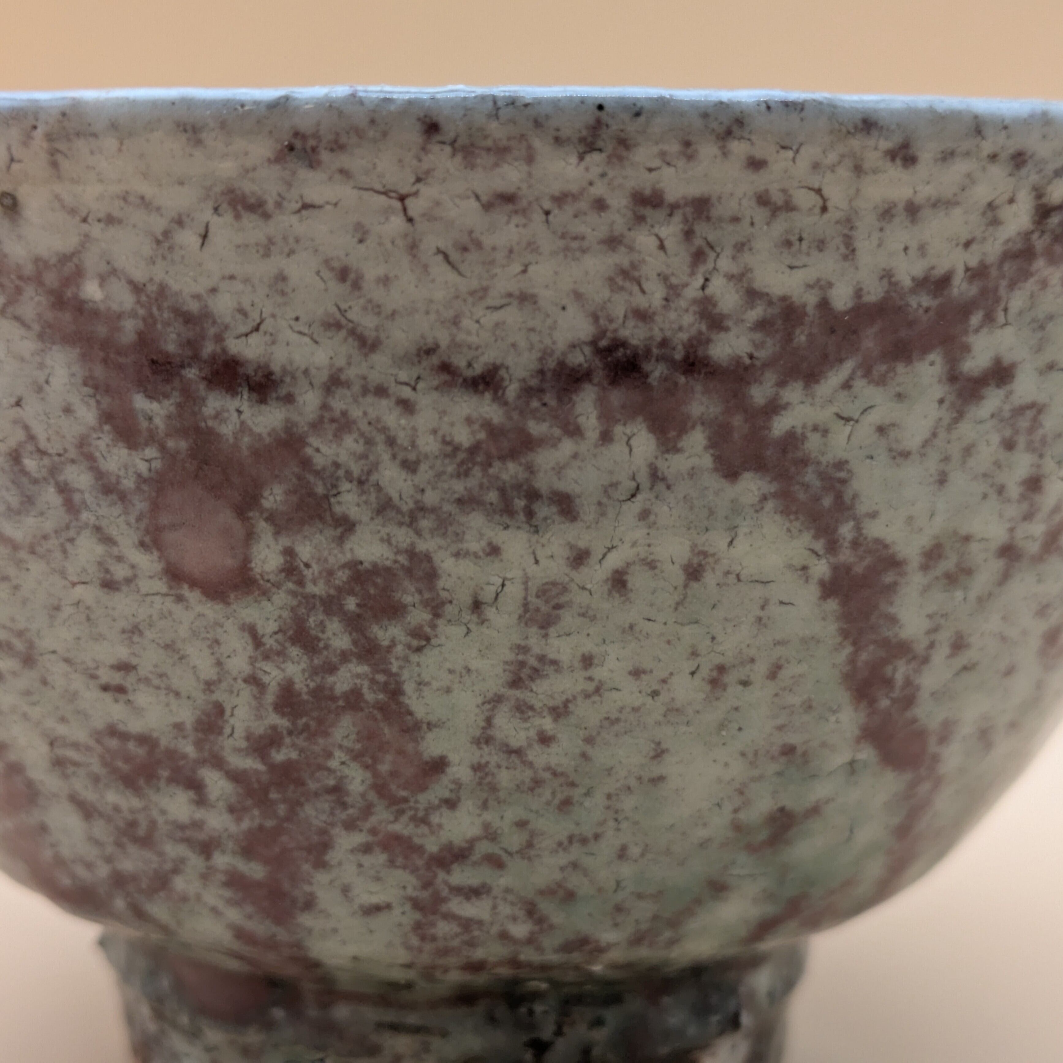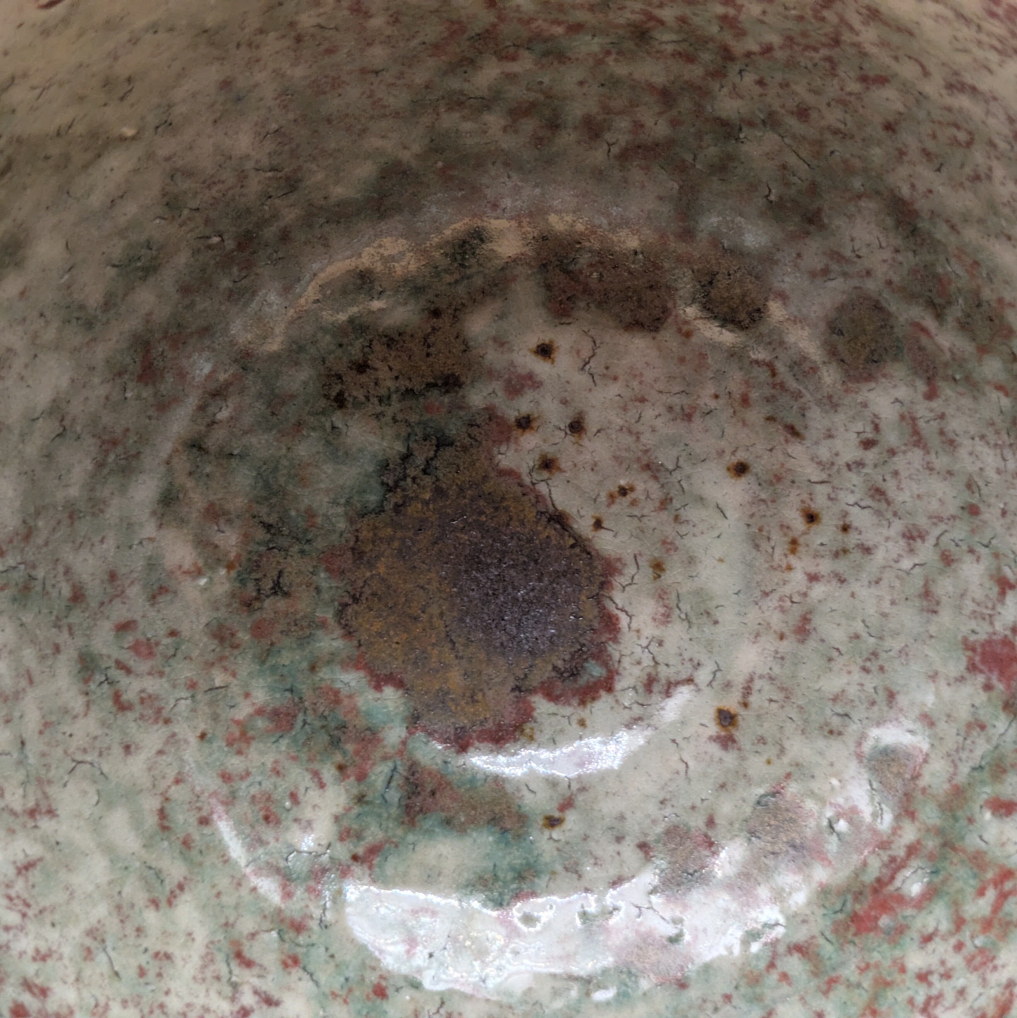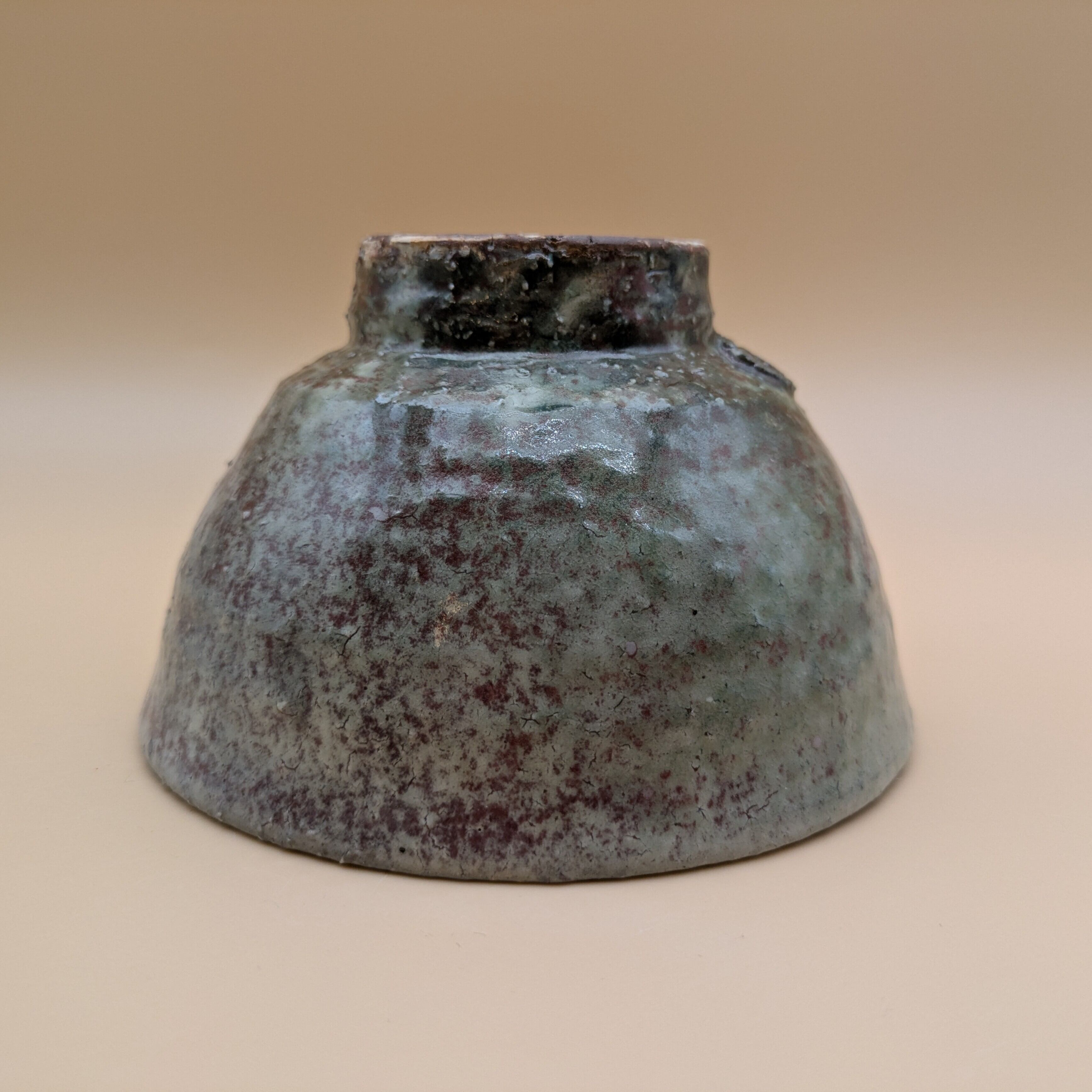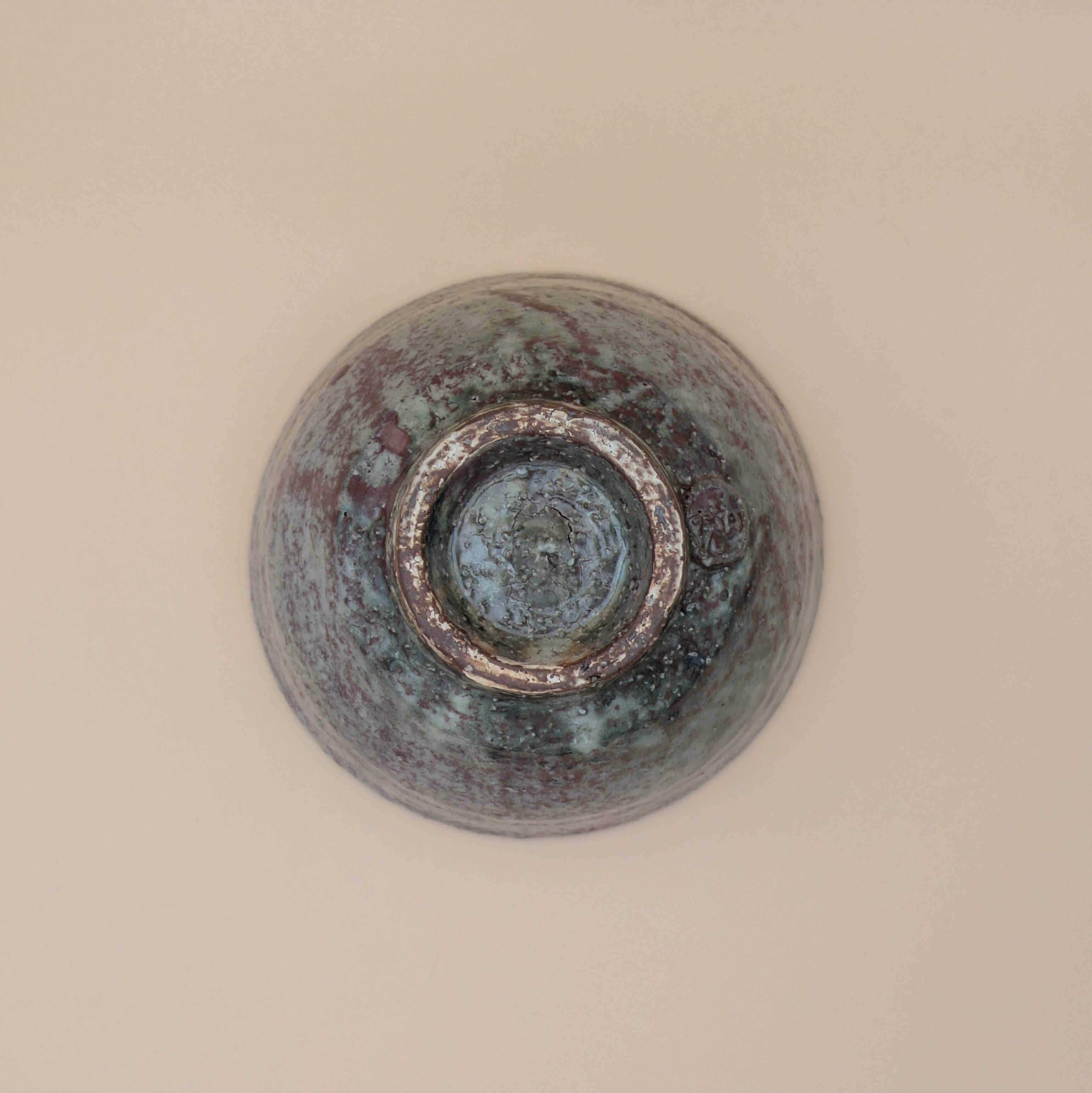 茶椀の表面には、もえぎ色の釉薬が施されています。この釉薬の特徴は、焼成時の炎の中で自然に発生する模様で、一つとして同じものはありません。それによって、一つ一つの茶椀が個性的でありながらも、統一感のある美しい風合いを持っています。