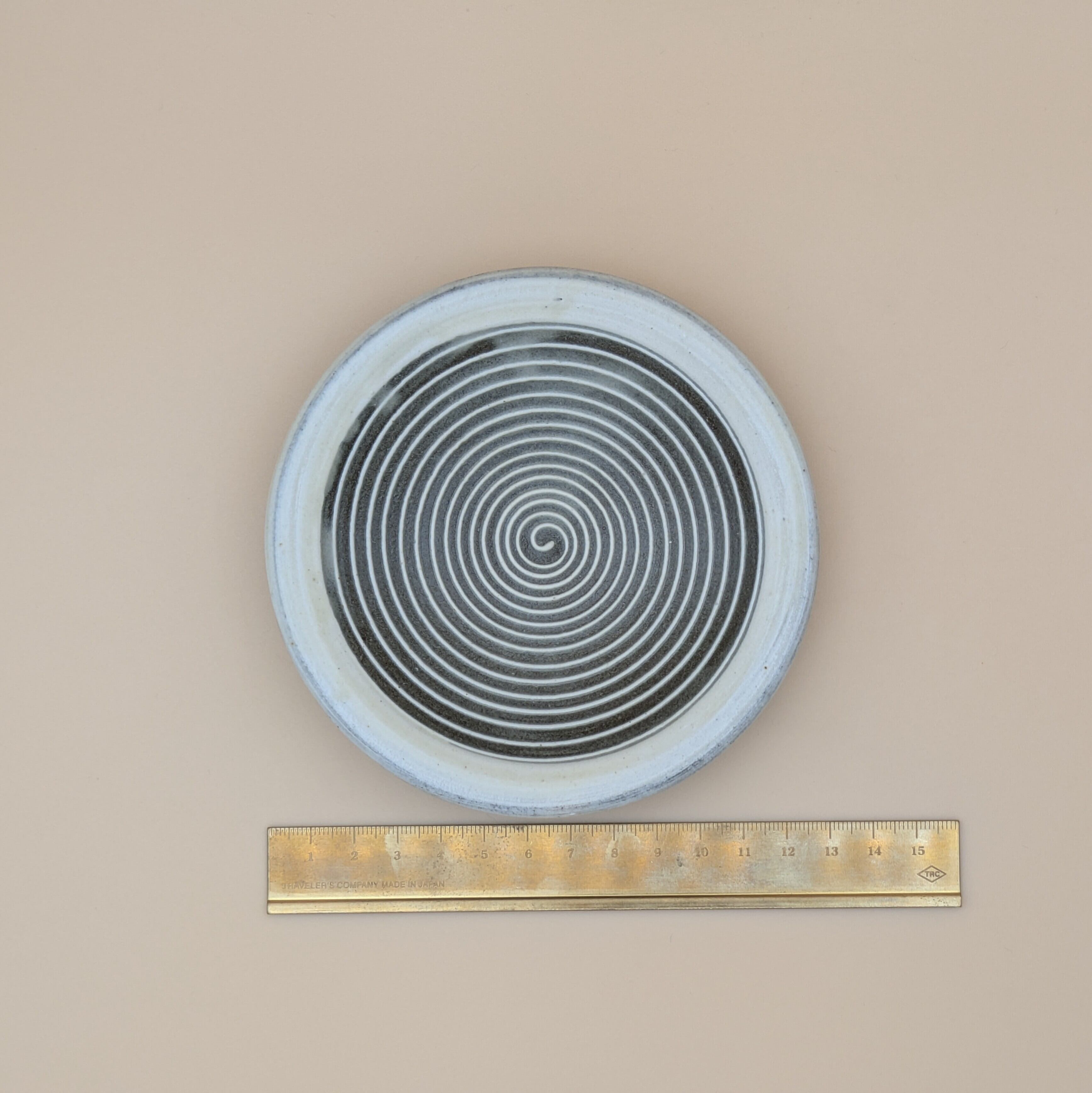 平皿4寸 小石原焼(白縁に渦巻) 直径12.2cm 高さ2.7cm 重量126g