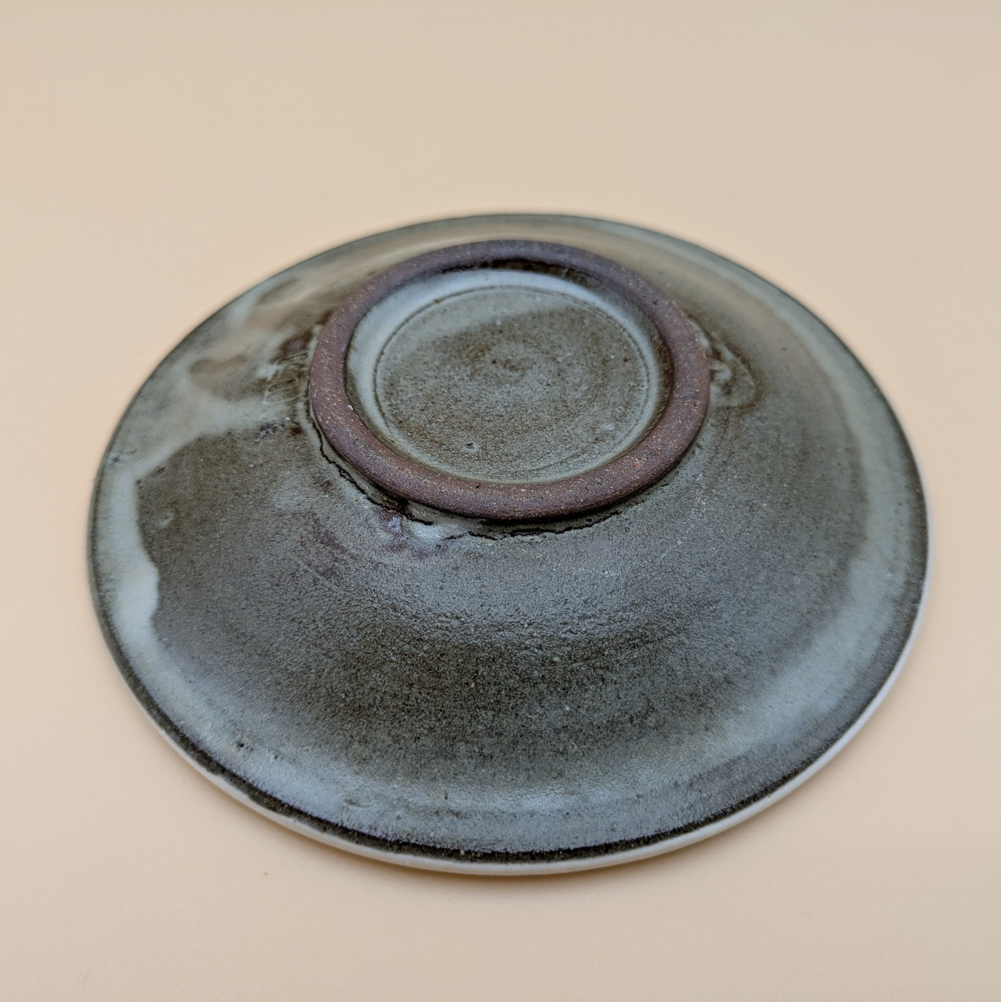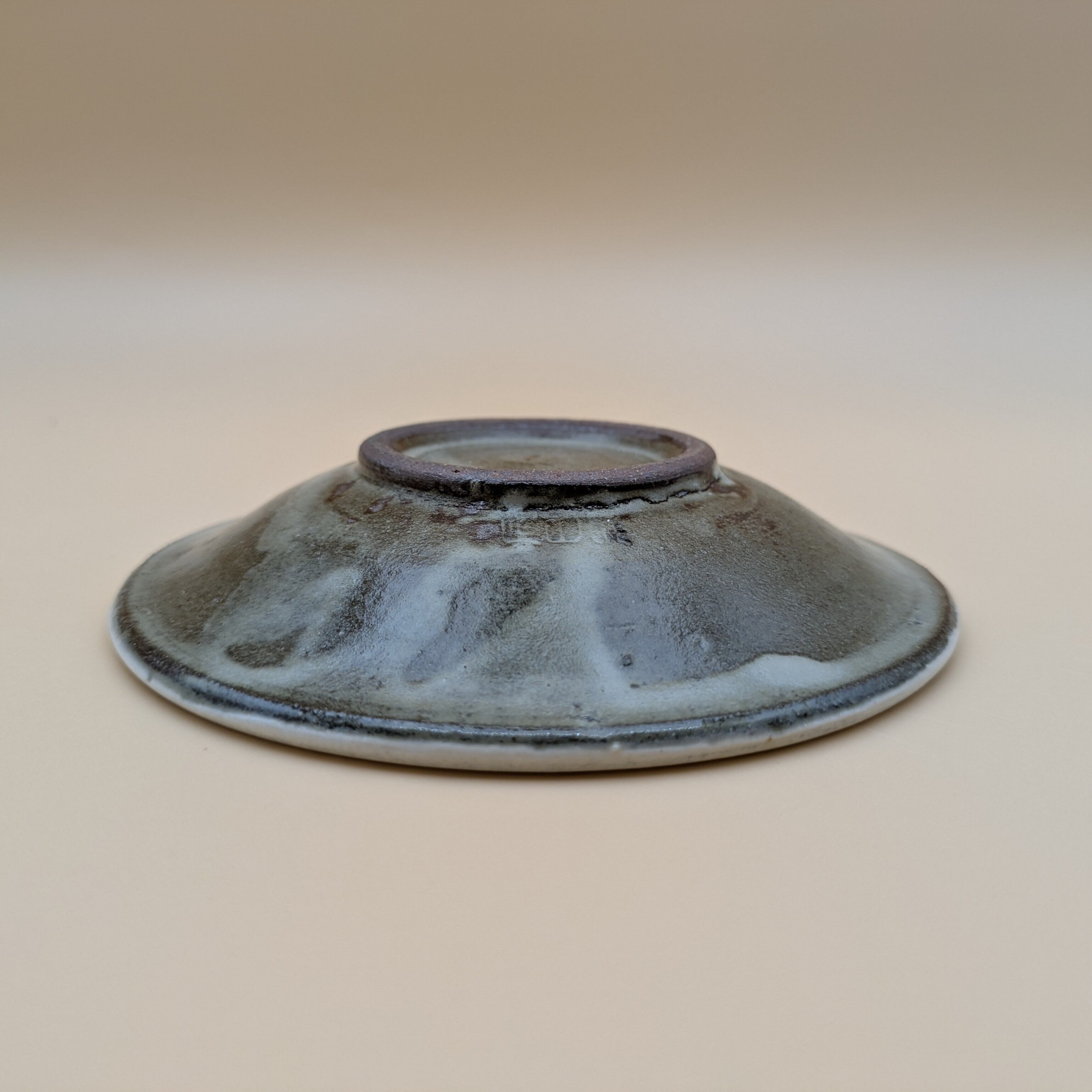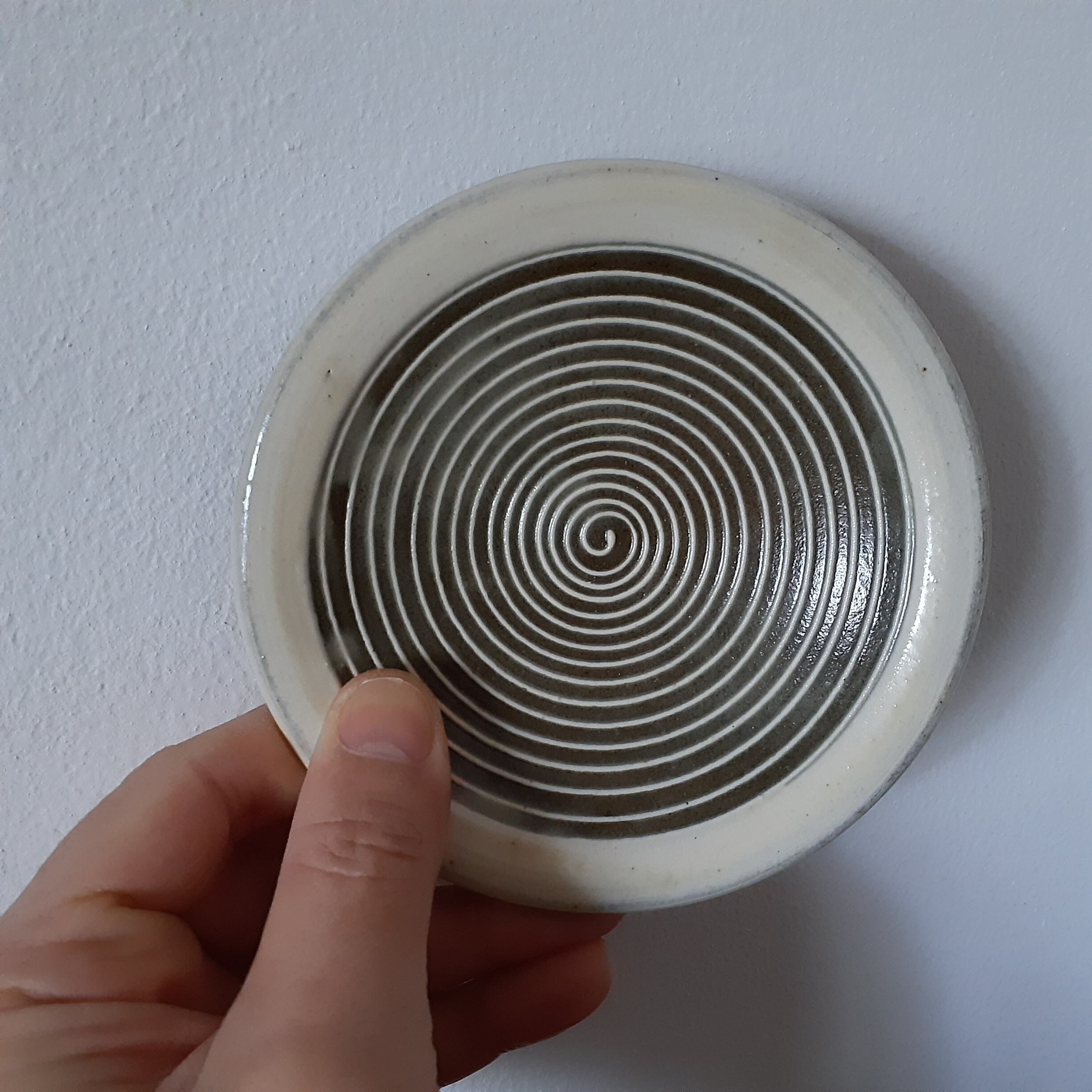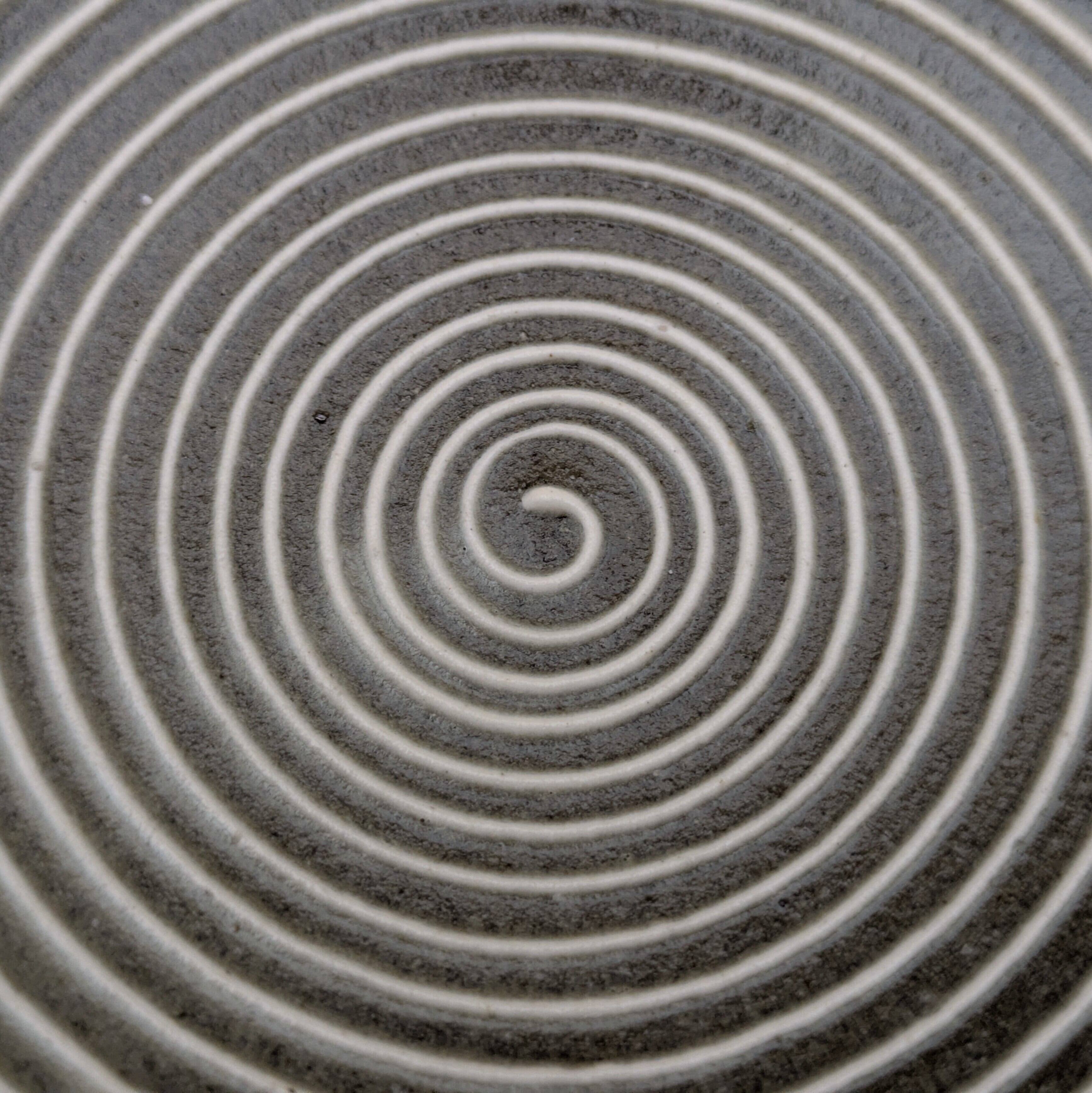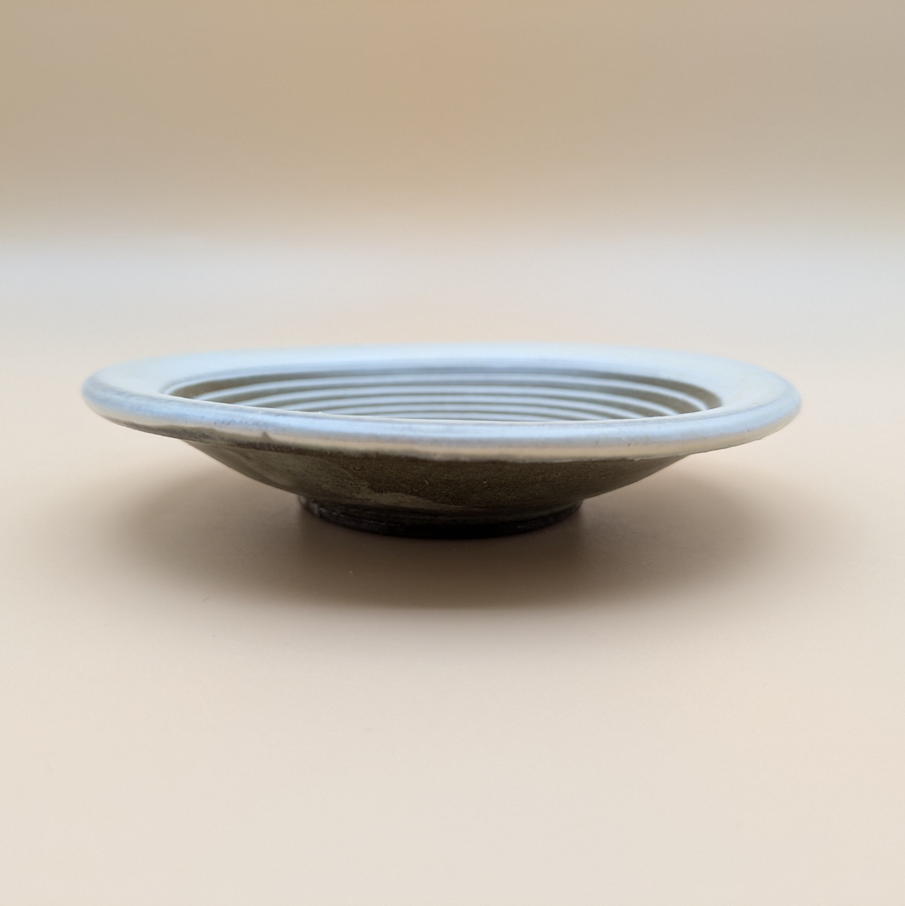 小石原焼の豆皿です。灰釉の地に白縁・白渦巻模様がポイントの可愛らしいデザインです。手作りならではの温かみと風合いがあり、使えば使うほど味わい深さが増します。