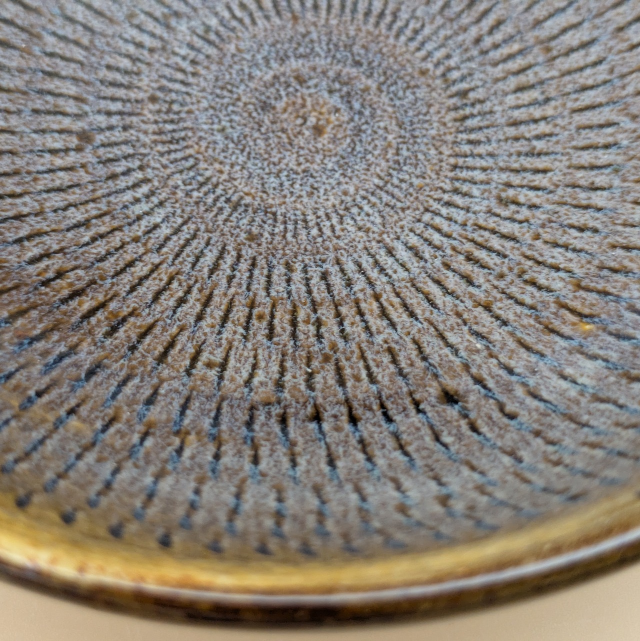 内面に飛び鉋文様を施した、小ぶりながら存在感のある盛皿です。緻密な手作業で作られた小石原焼の美しい陶器は、どんな料理も引き立ててくれることでしょう。