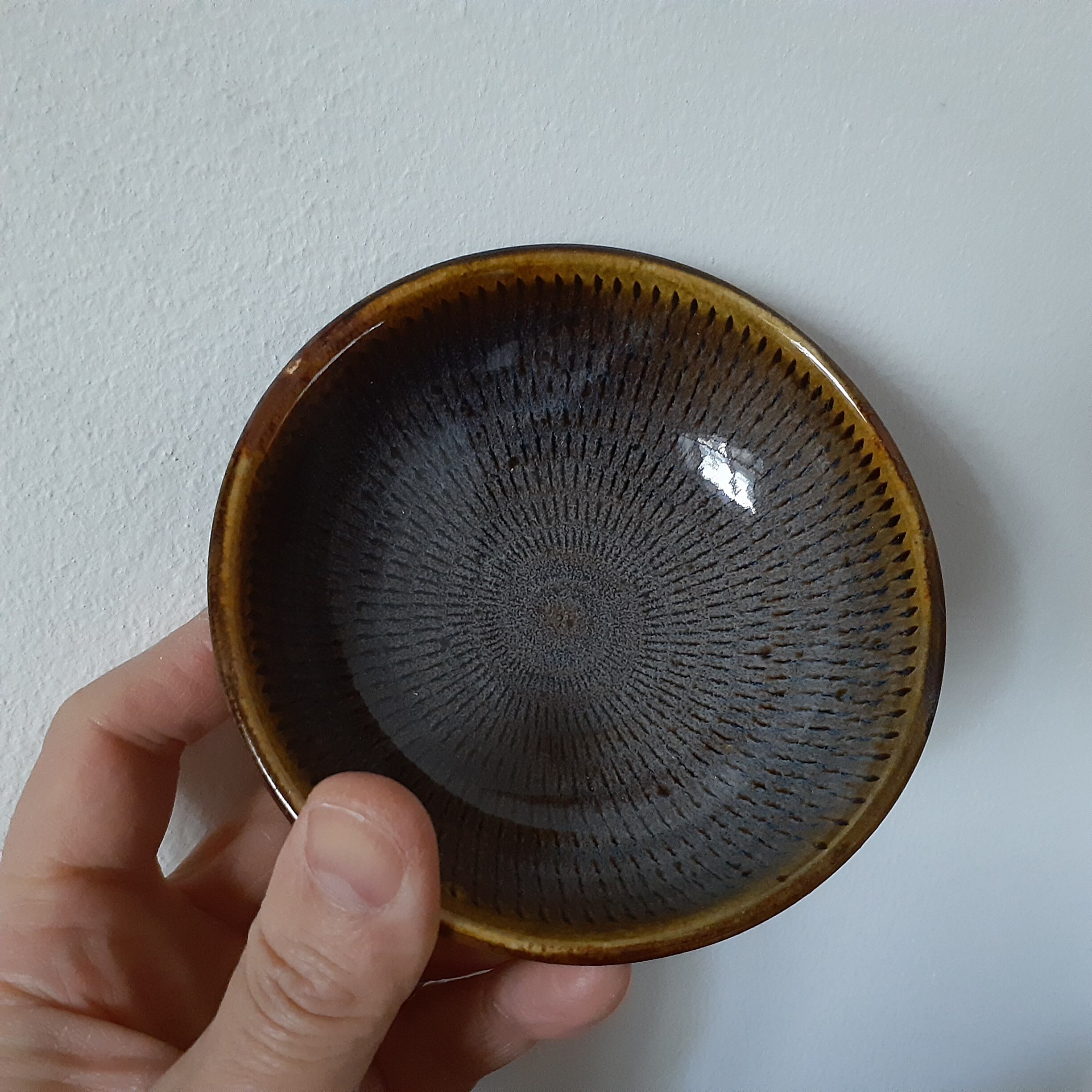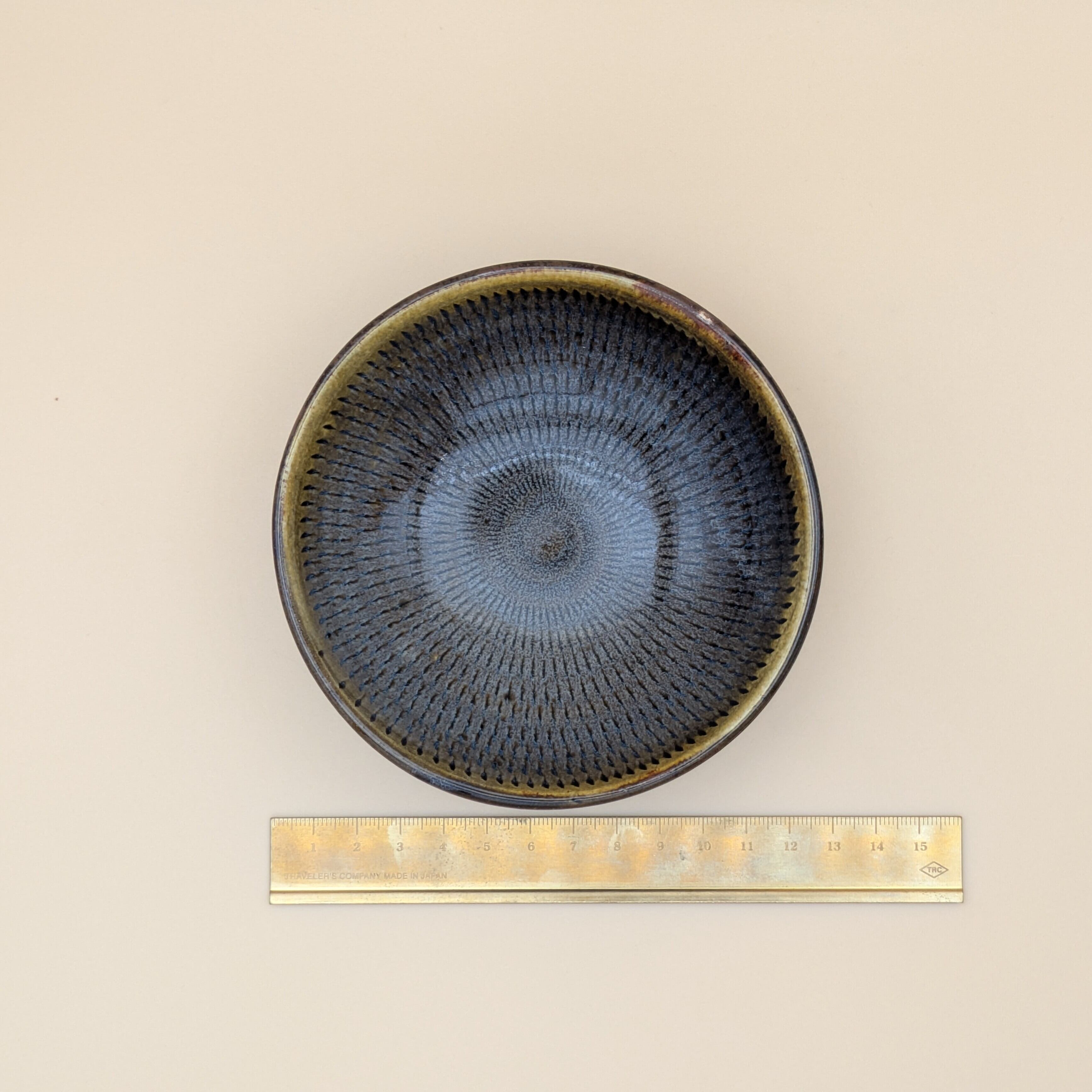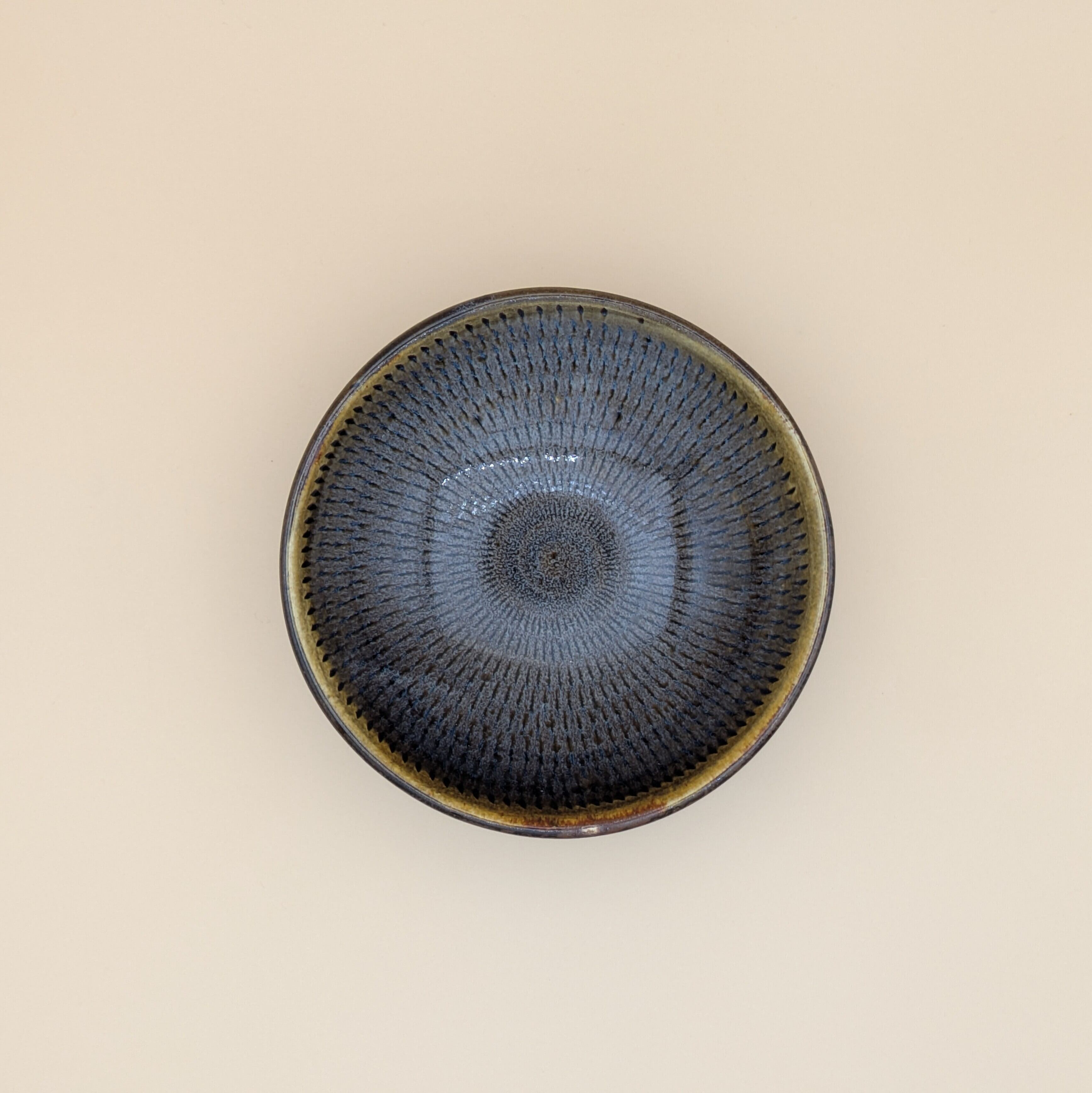 盛皿 約4寸 小石原焼(青釉 飛び鉋) 直径11.7cm 高さ4.3cm 重量158g