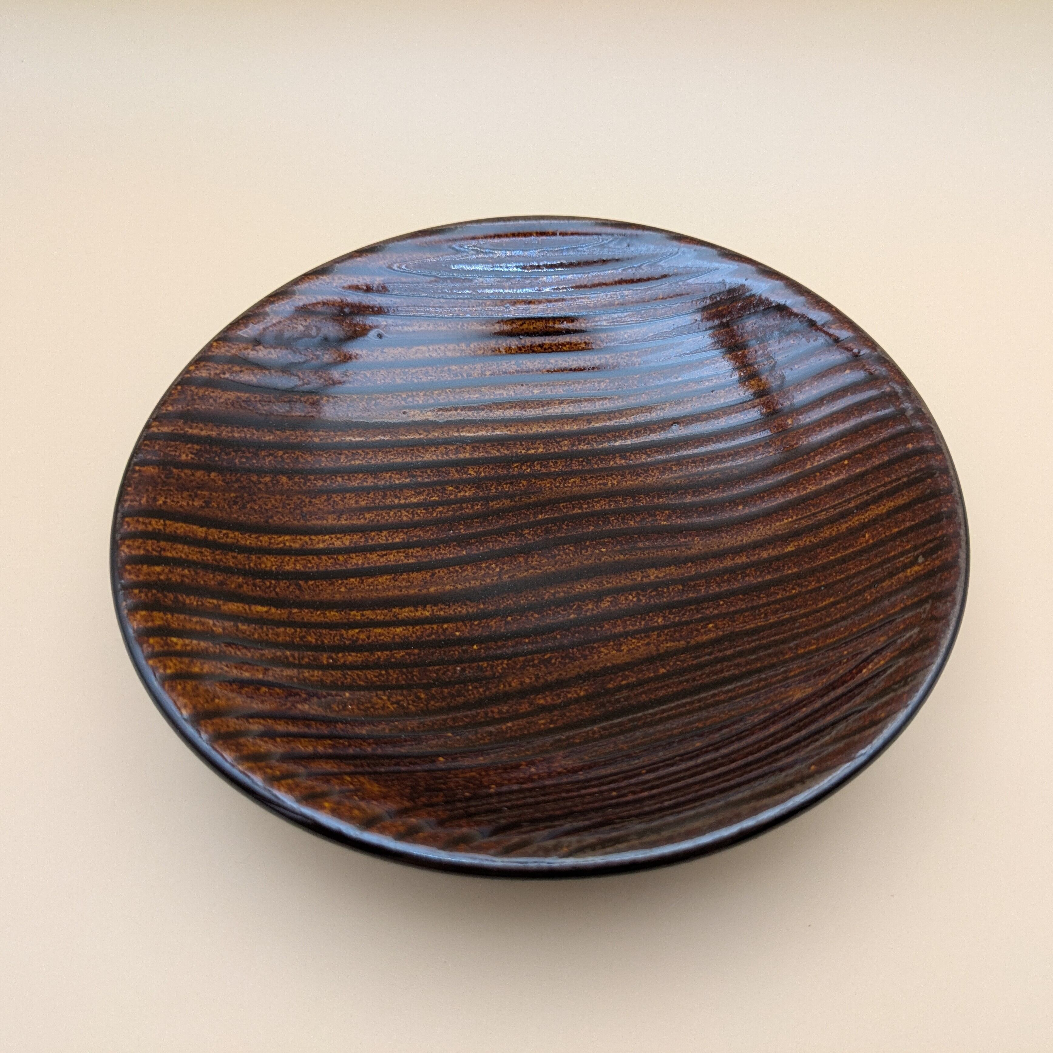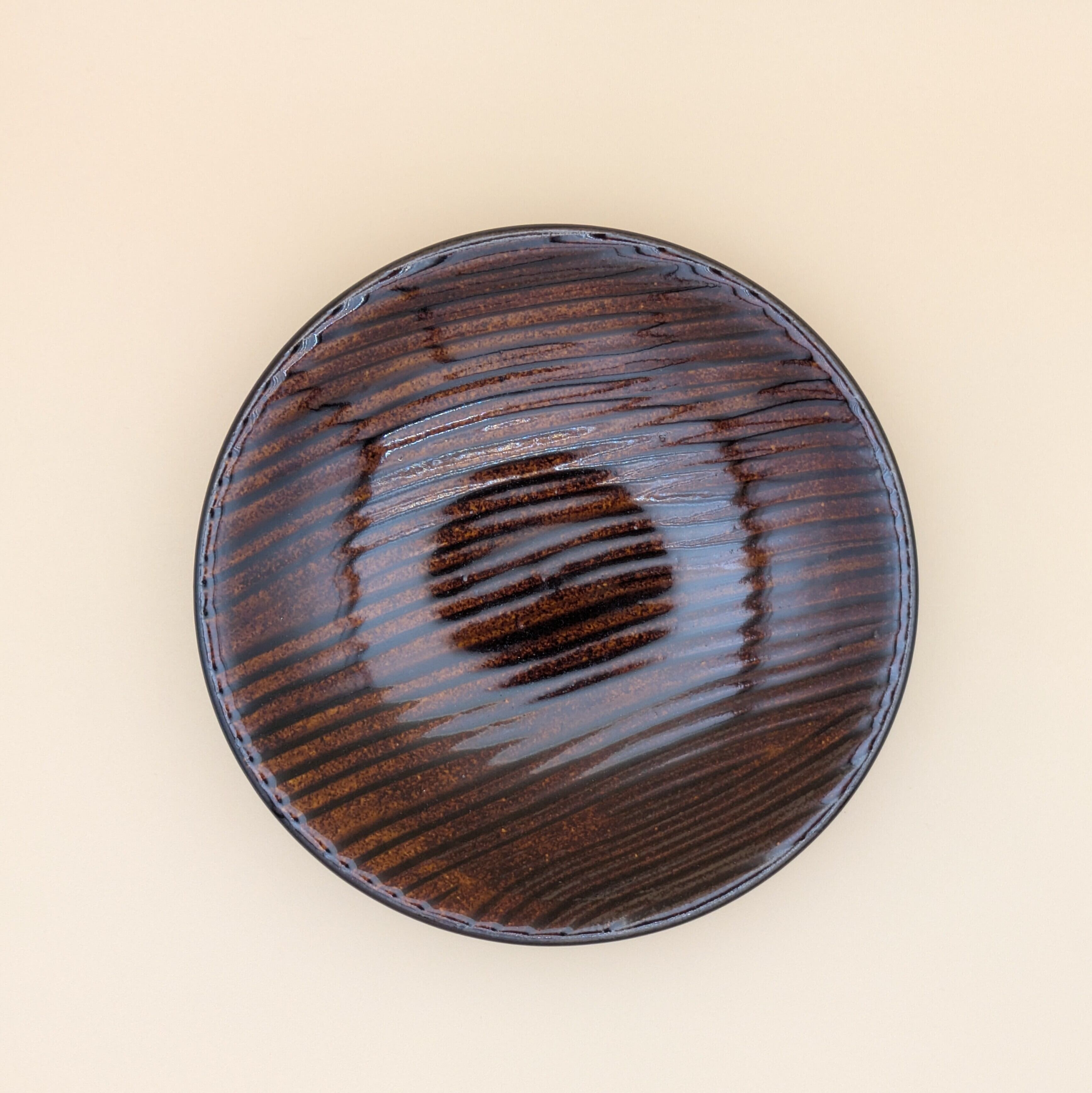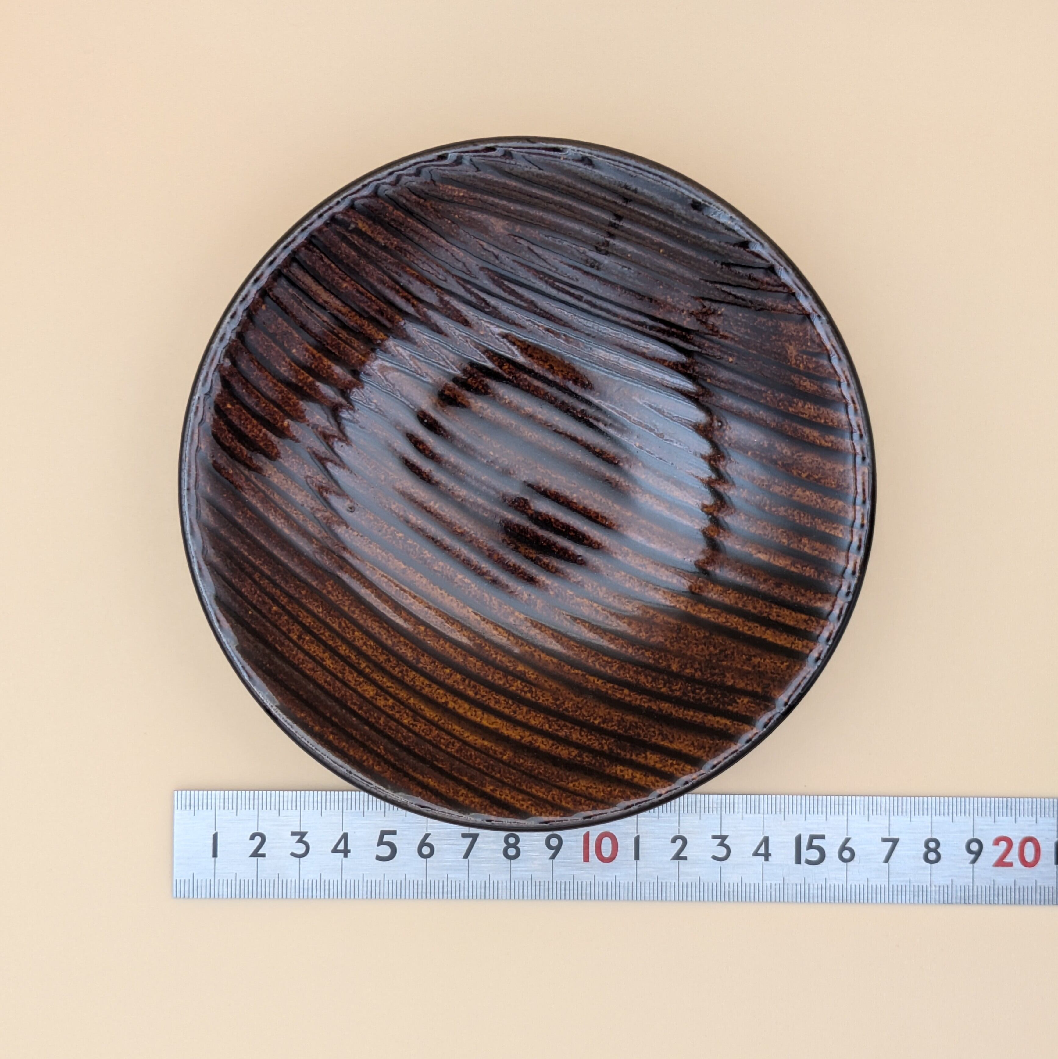 盛皿5寸 小石原焼(飴釉 縞模様01) 直径15.7cm 高さ3.5cm 重量241g
