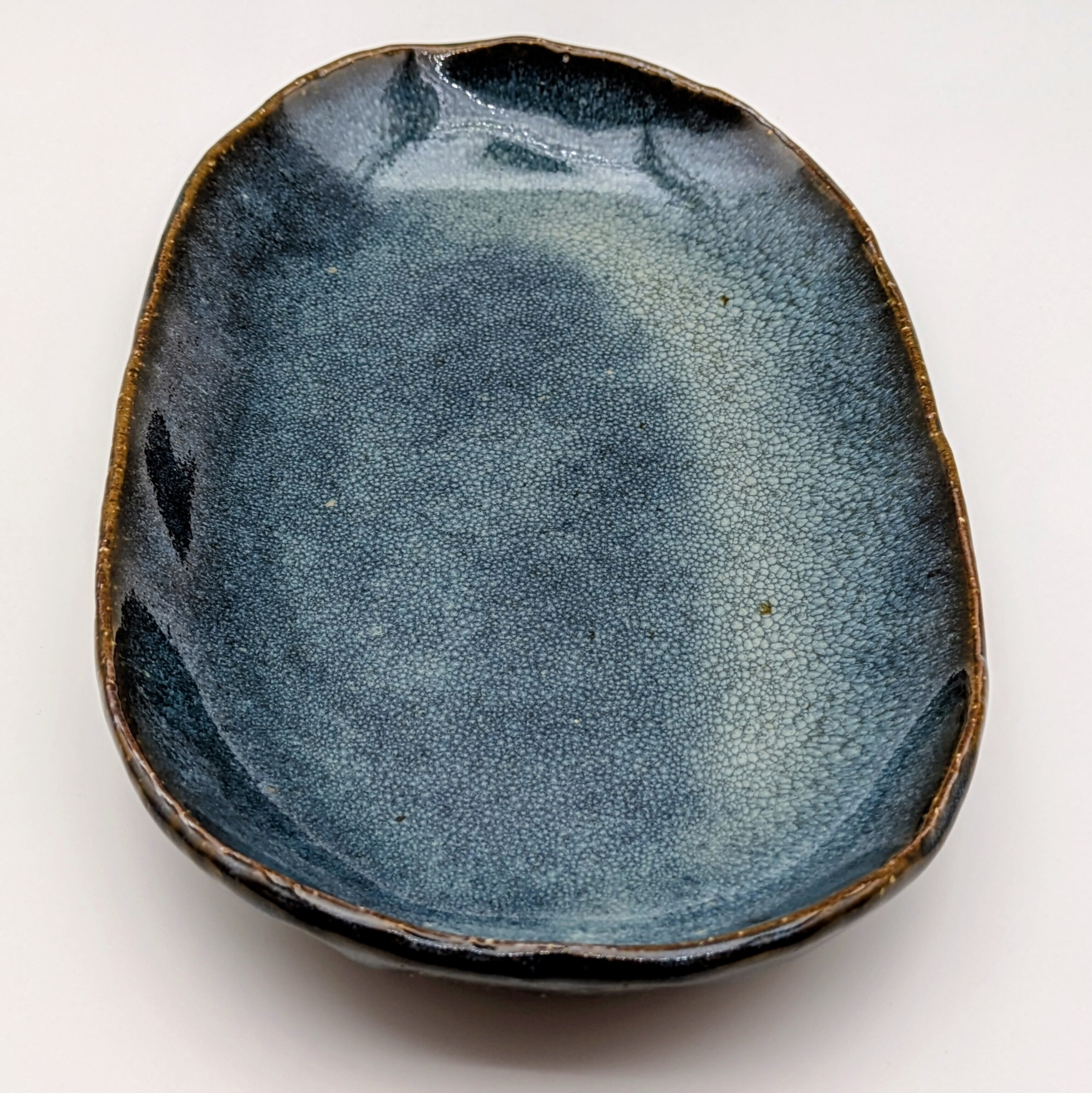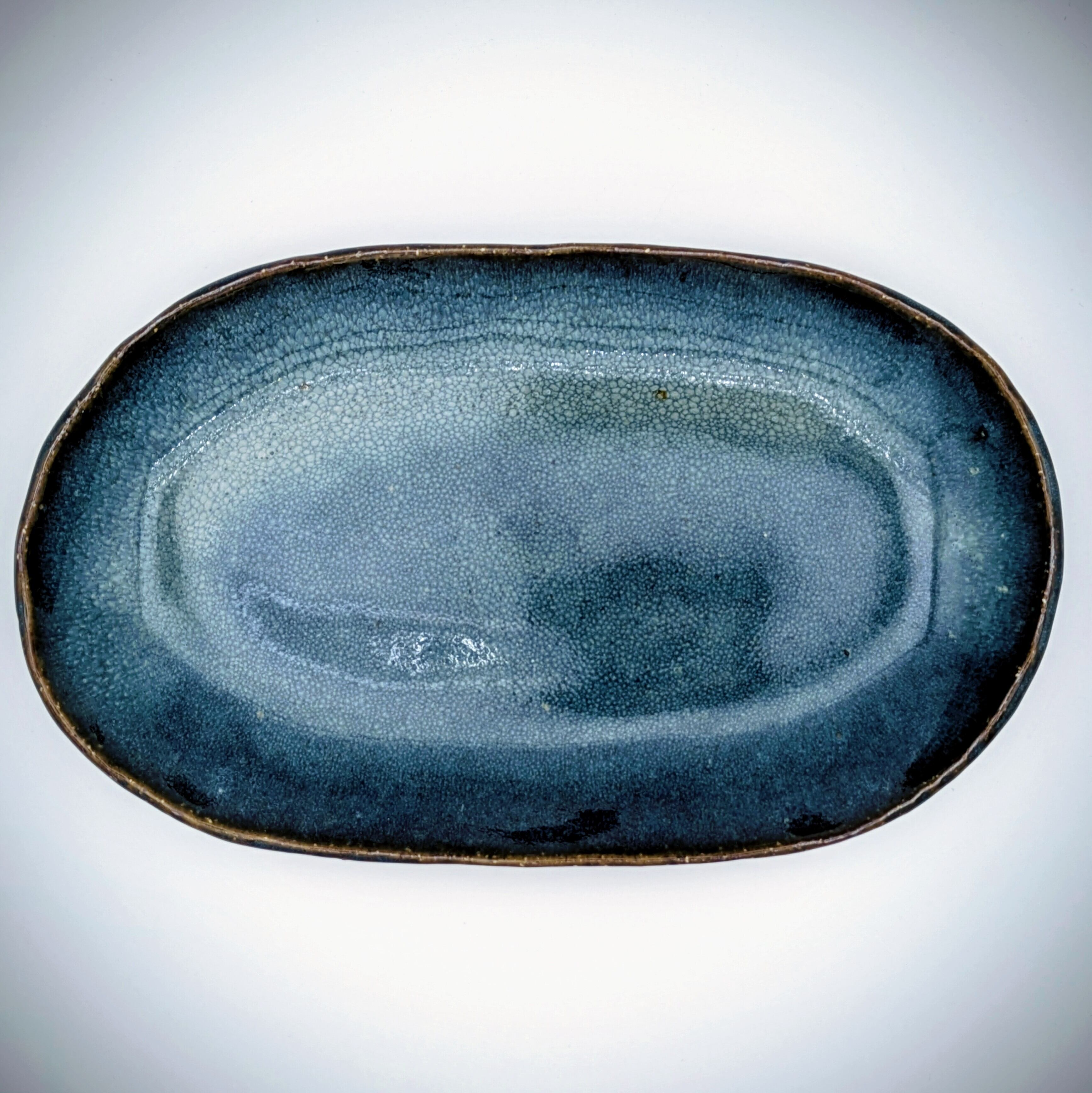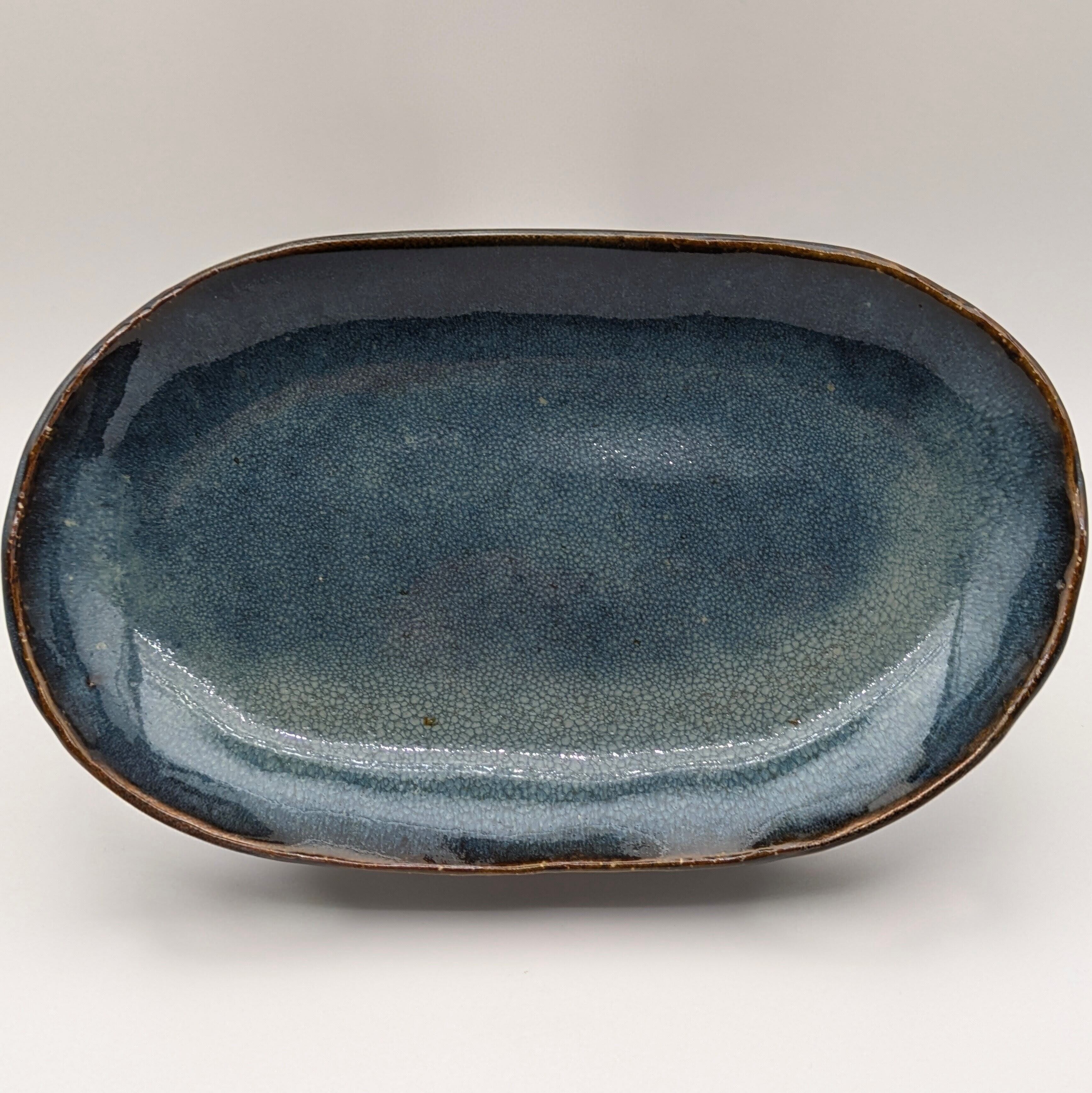 オーバル平皿8寸 萩焼(青02)縦14.5cm 横24.0cm高さ3.2cm 重量422g