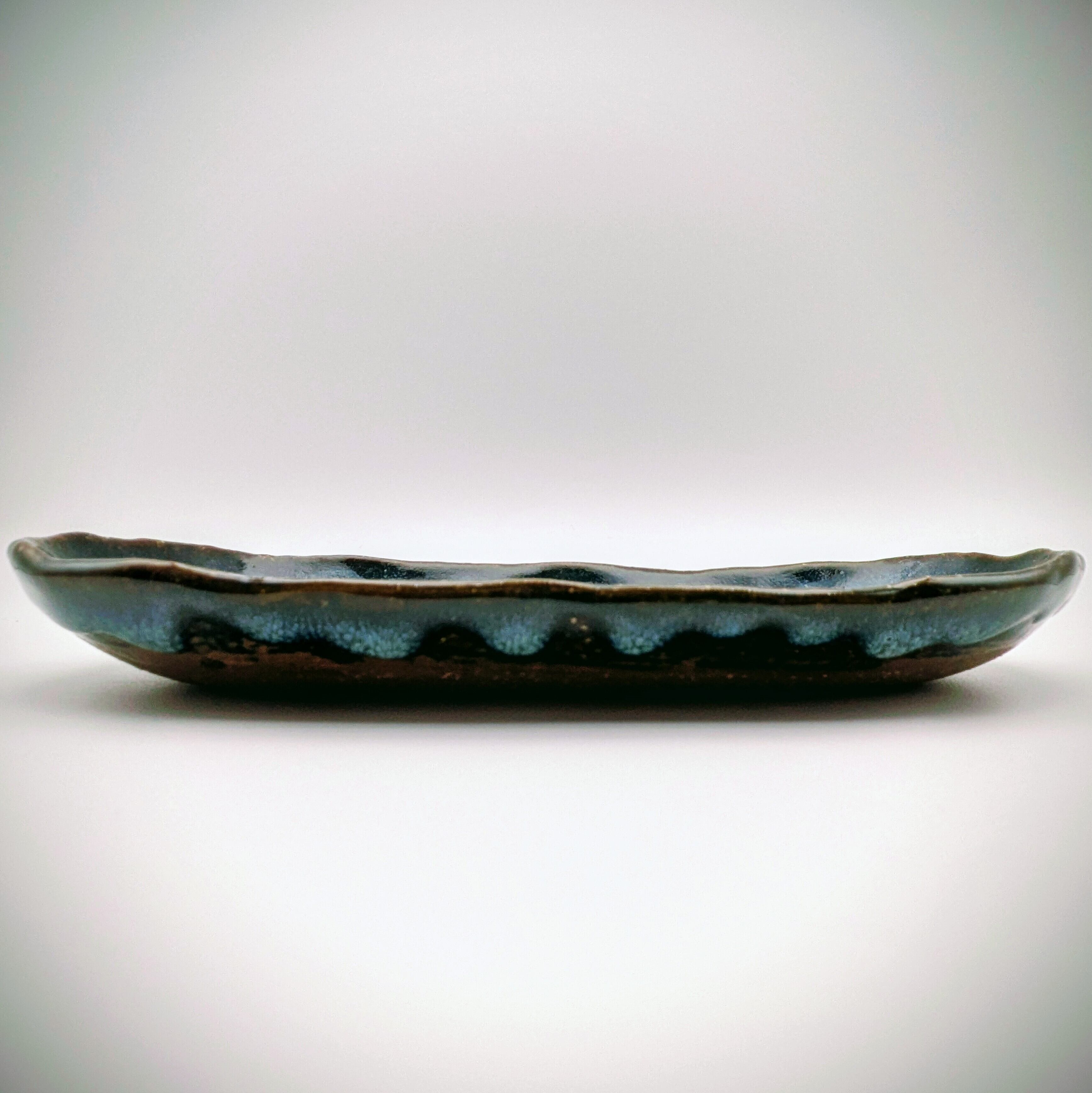 上品なデザインと職人の技が融合したオーバル平皿です。萩焼の特徴である、独特の質感と風合いが魅力です。優れた保温性と適度な重さがあり、料理の美味しさを引き立てます。青色の釉薬が鮮やかで、食卓を華やかに演出します。毎日の食卓により一層の贅沢感を与えるため、特別な日のお客様を迎える際にもお使いいただけます。