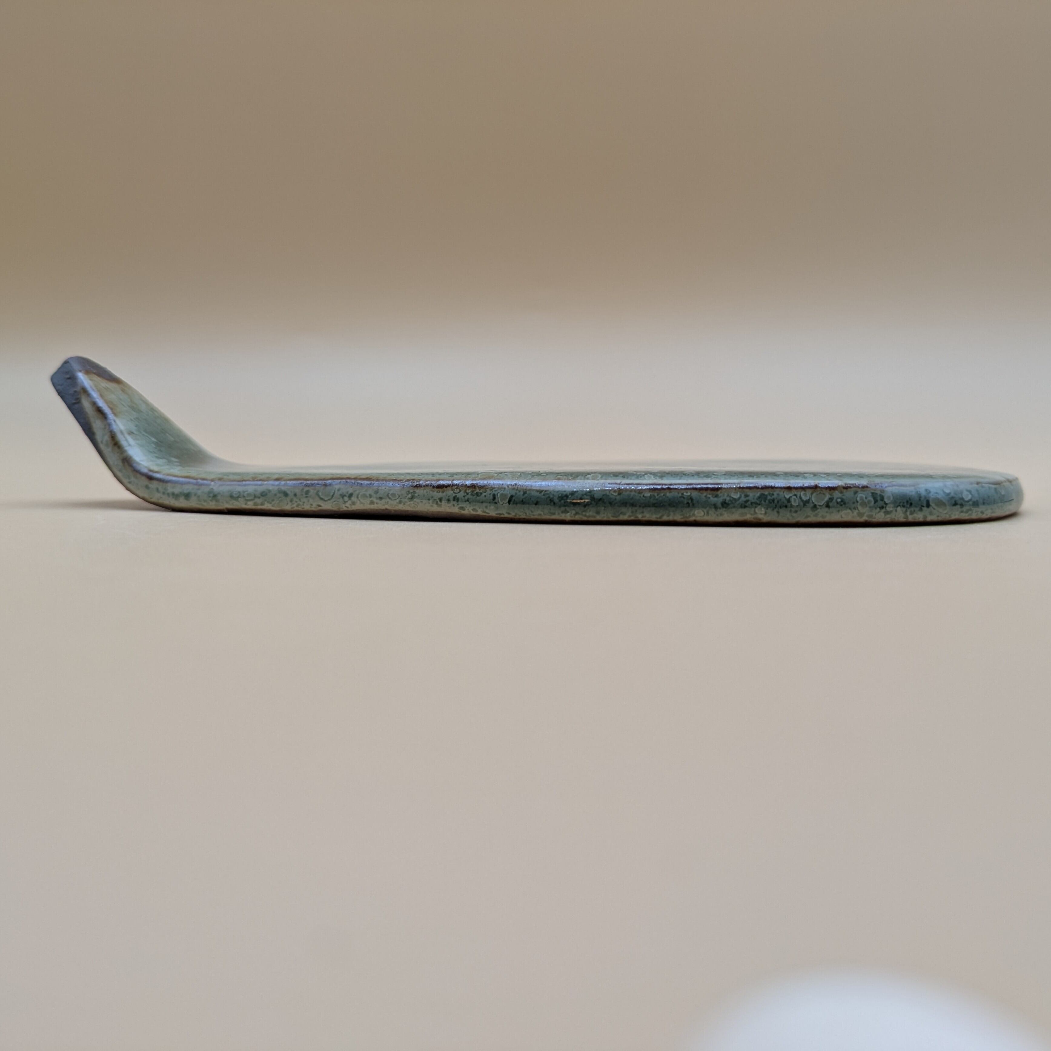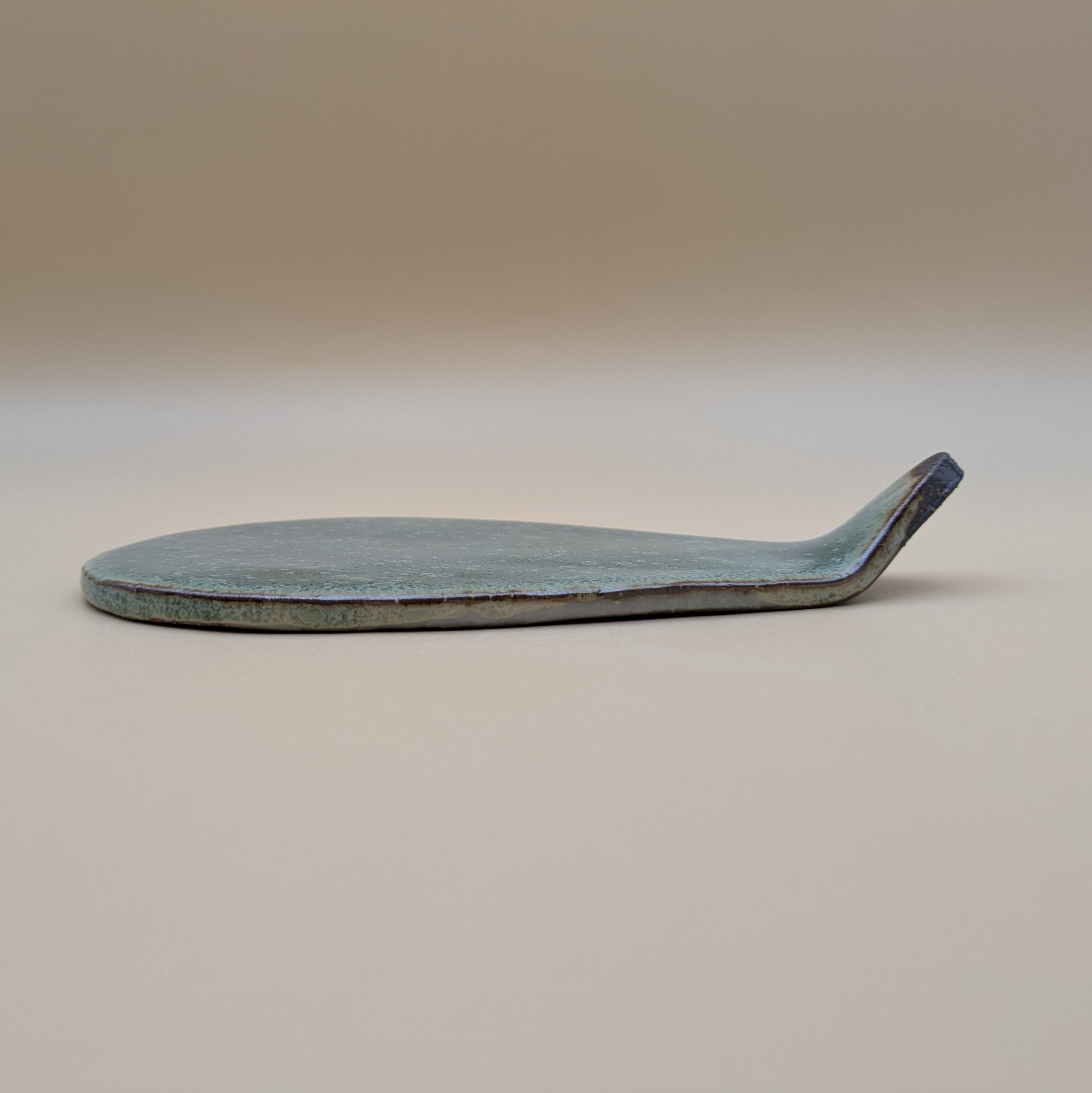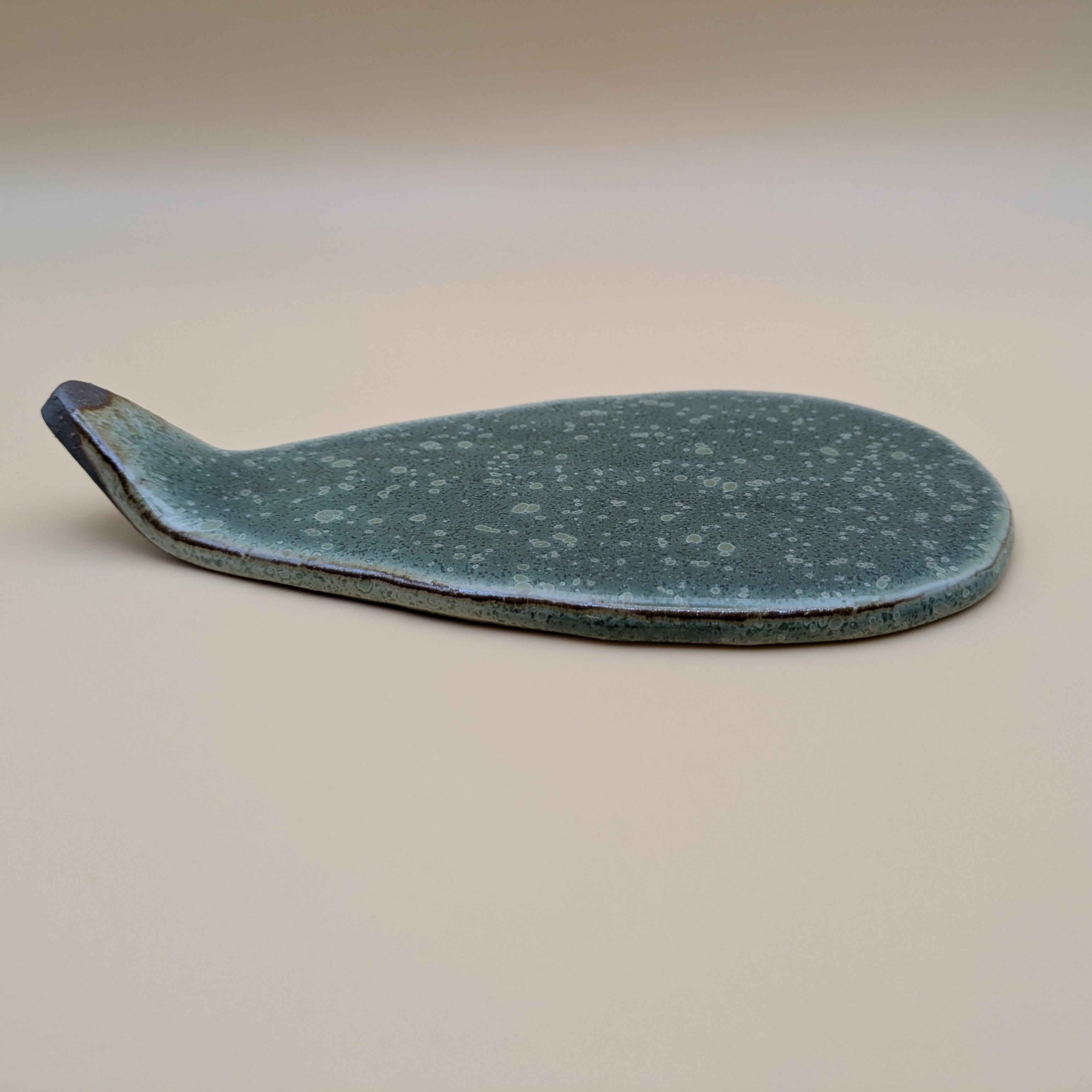 萩焼の平皿です。自然の風景を思わせる美しい緑の色合いが特徴で、なすび型のデザインがおしゃれさを引き立てます。手作りの温かみも感じられ、使うたびに心が和むこと間違いありません。
