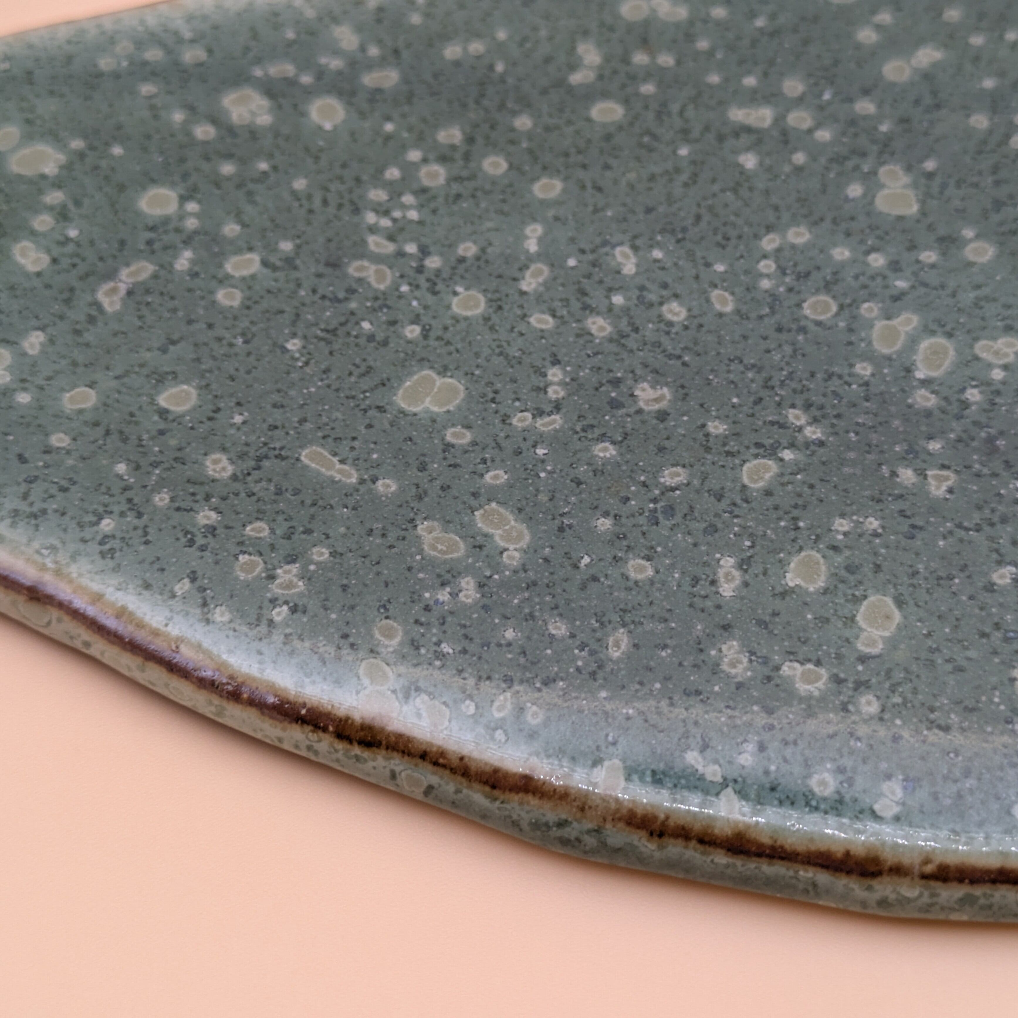 平皿6.5寸 萩焼(翡翠 なすび型01) 縦11.6cm 横20.0cm 重量282g