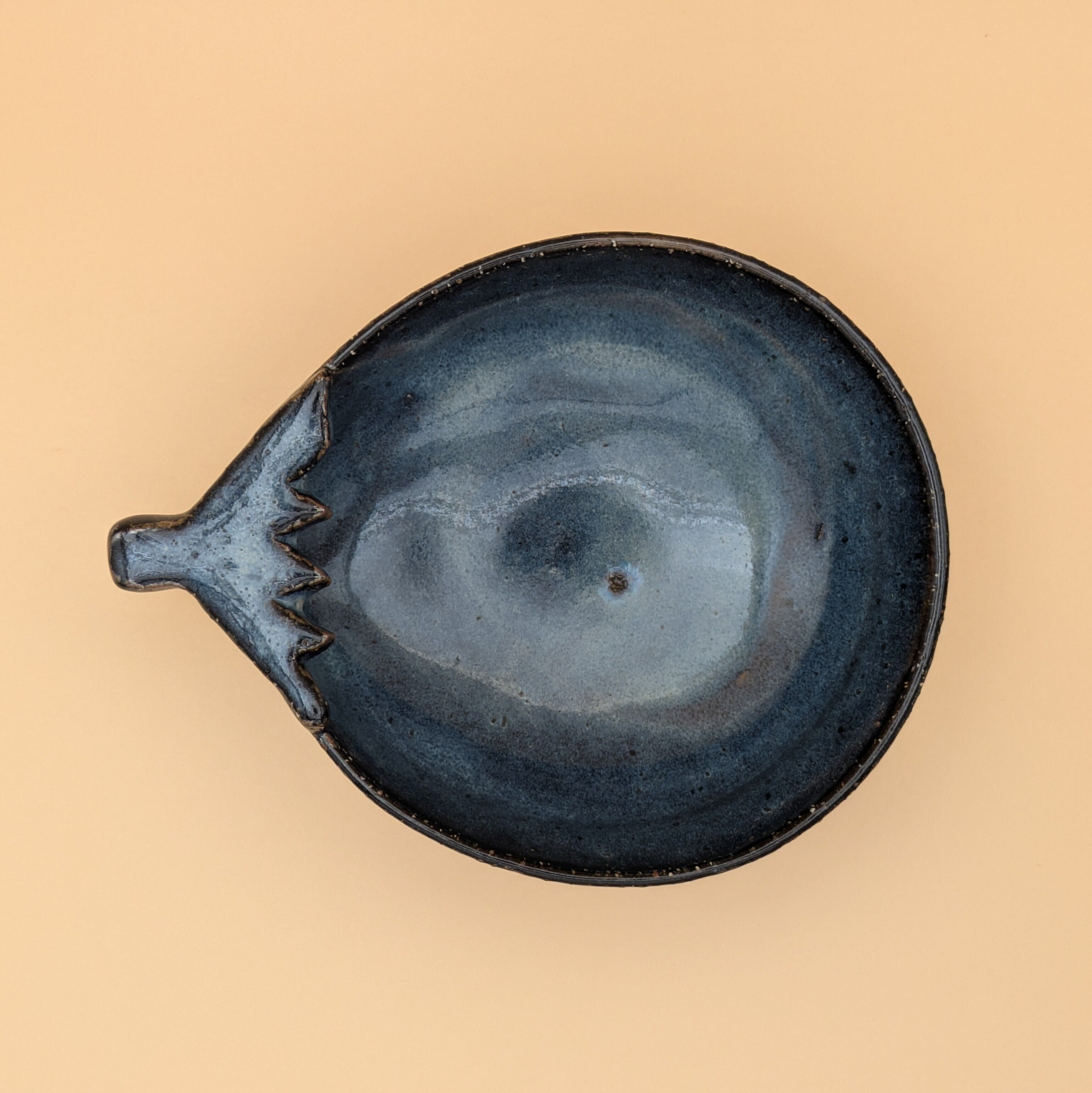 この萩焼の盛皿は、美しいなすび型の形状が特徴です。日本の伝統的な技法で作られ、青の風合いが落ち着いた和食器として、食卓を彩ります。
