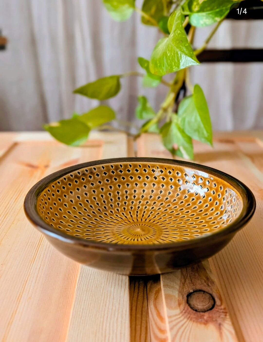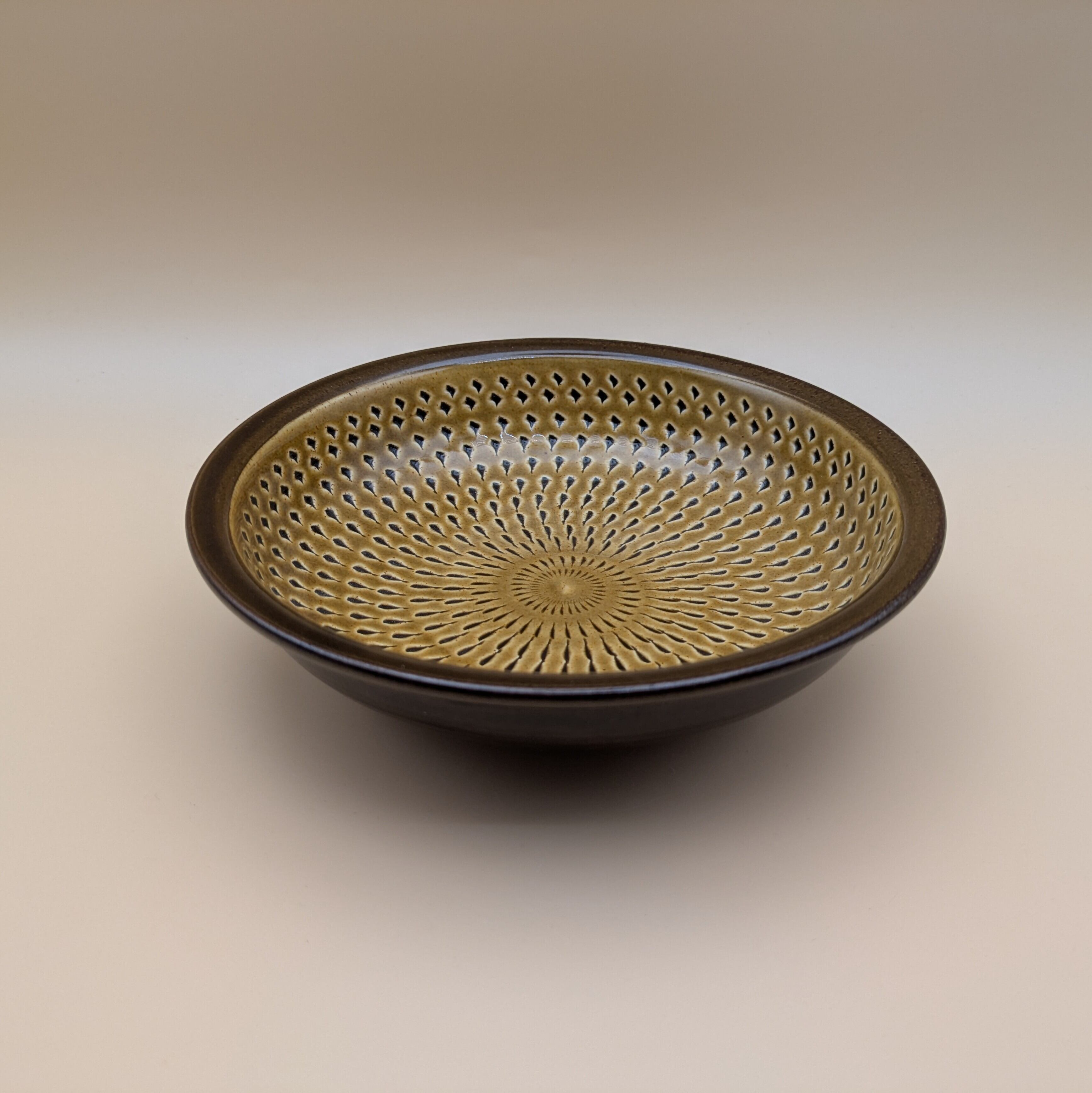 盛皿6寸 小石原焼(茶 飛び鉋) 直径18cm 高さ5cm 重量340g