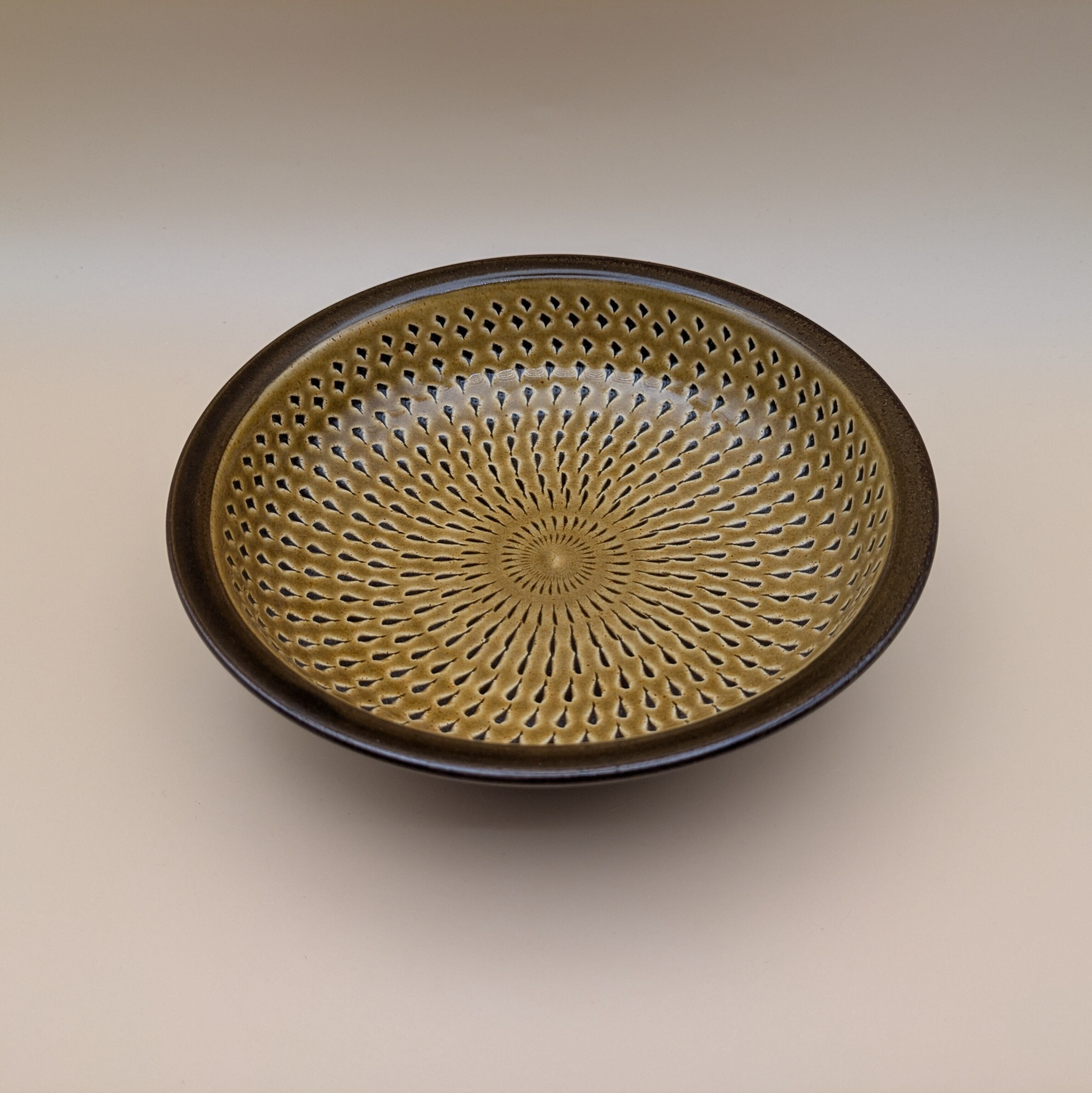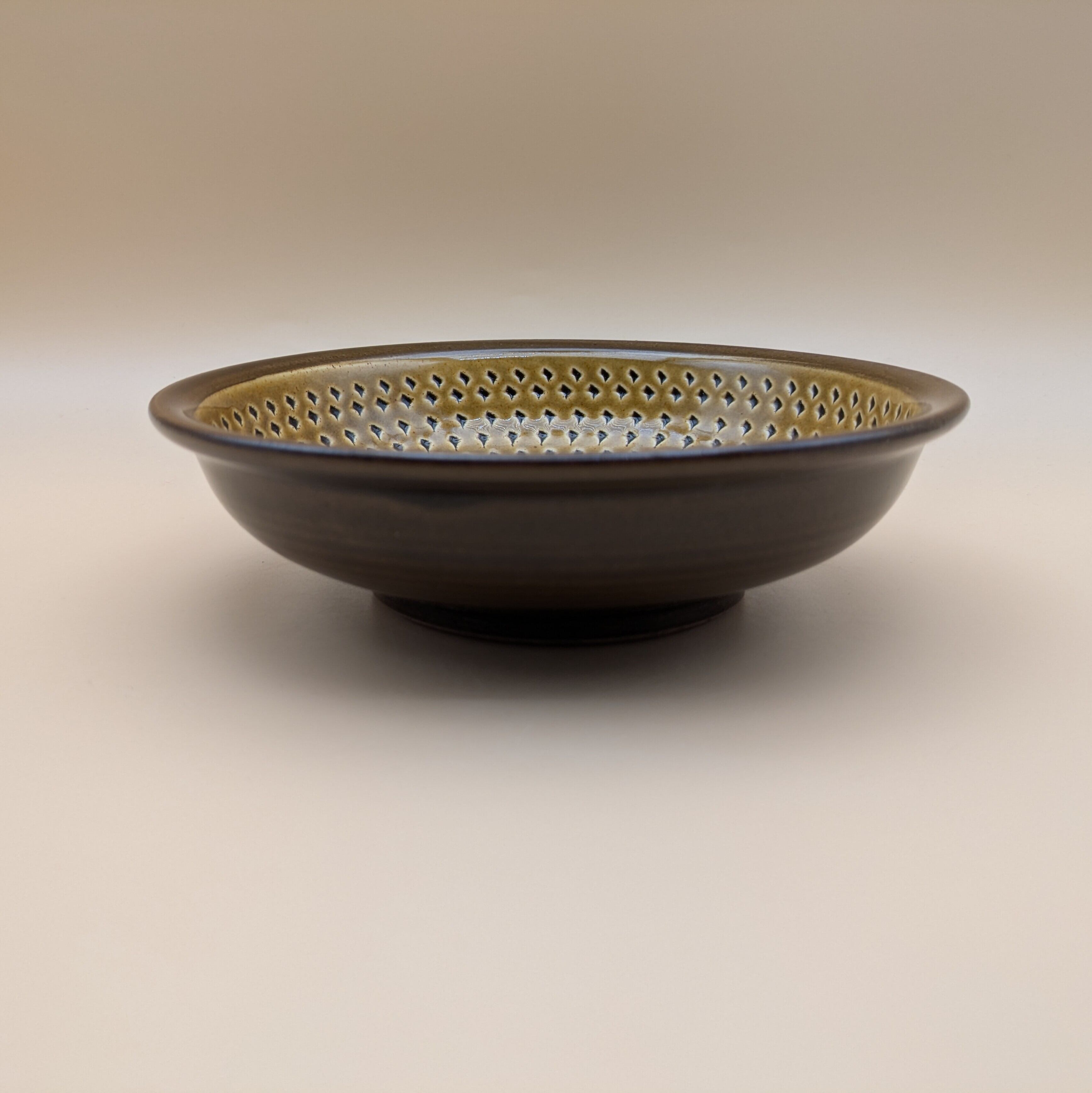 この盛皿6寸は、茶の湯や懐石料理などのお料理を盛るのに最適です。落ち着いた茶色の釉薬と一面に施された飛び鉋の模様が、料理の色合いを引き立て、より美味しそうに見せてくれます。また、深さのある形状と広い底面が、盛り付けのバリエーションを広げてくれます。