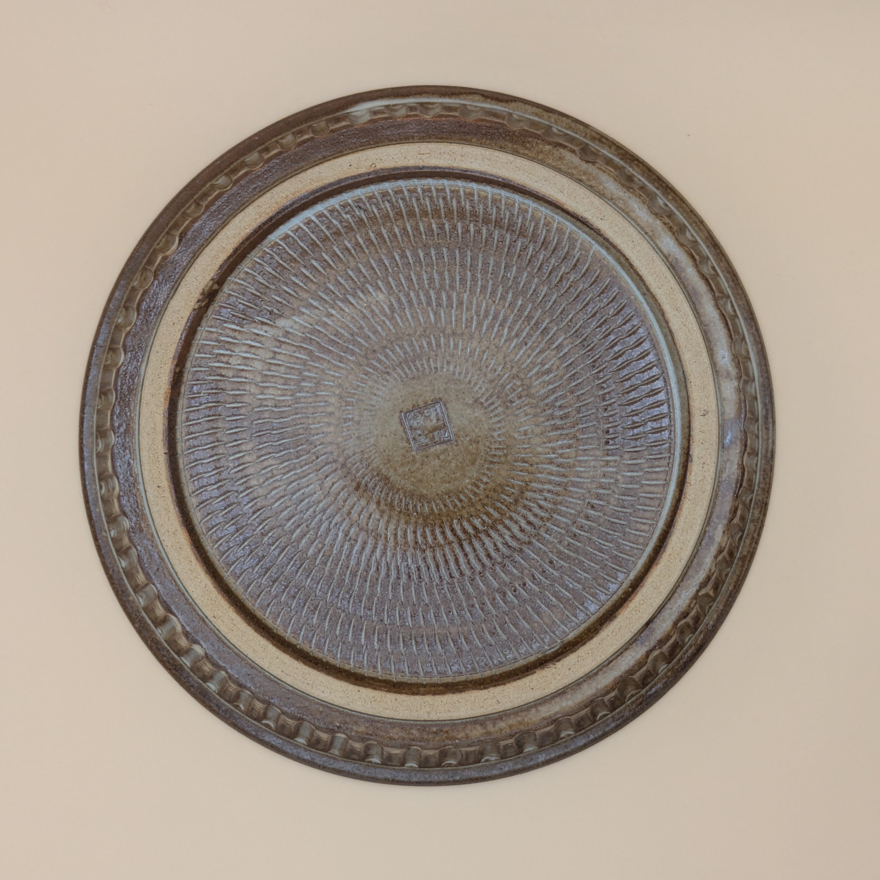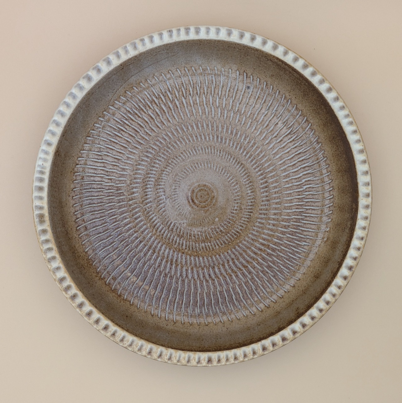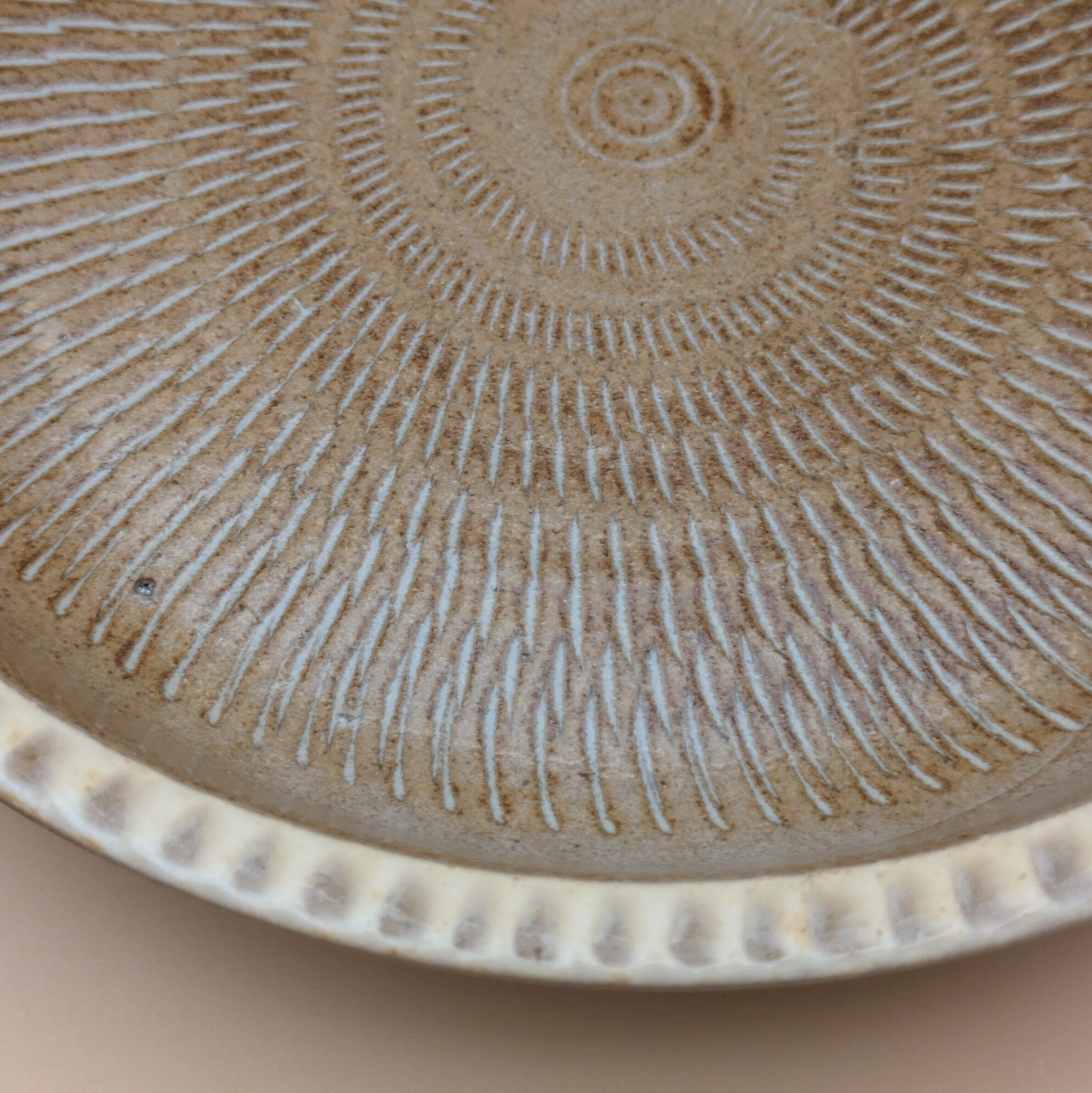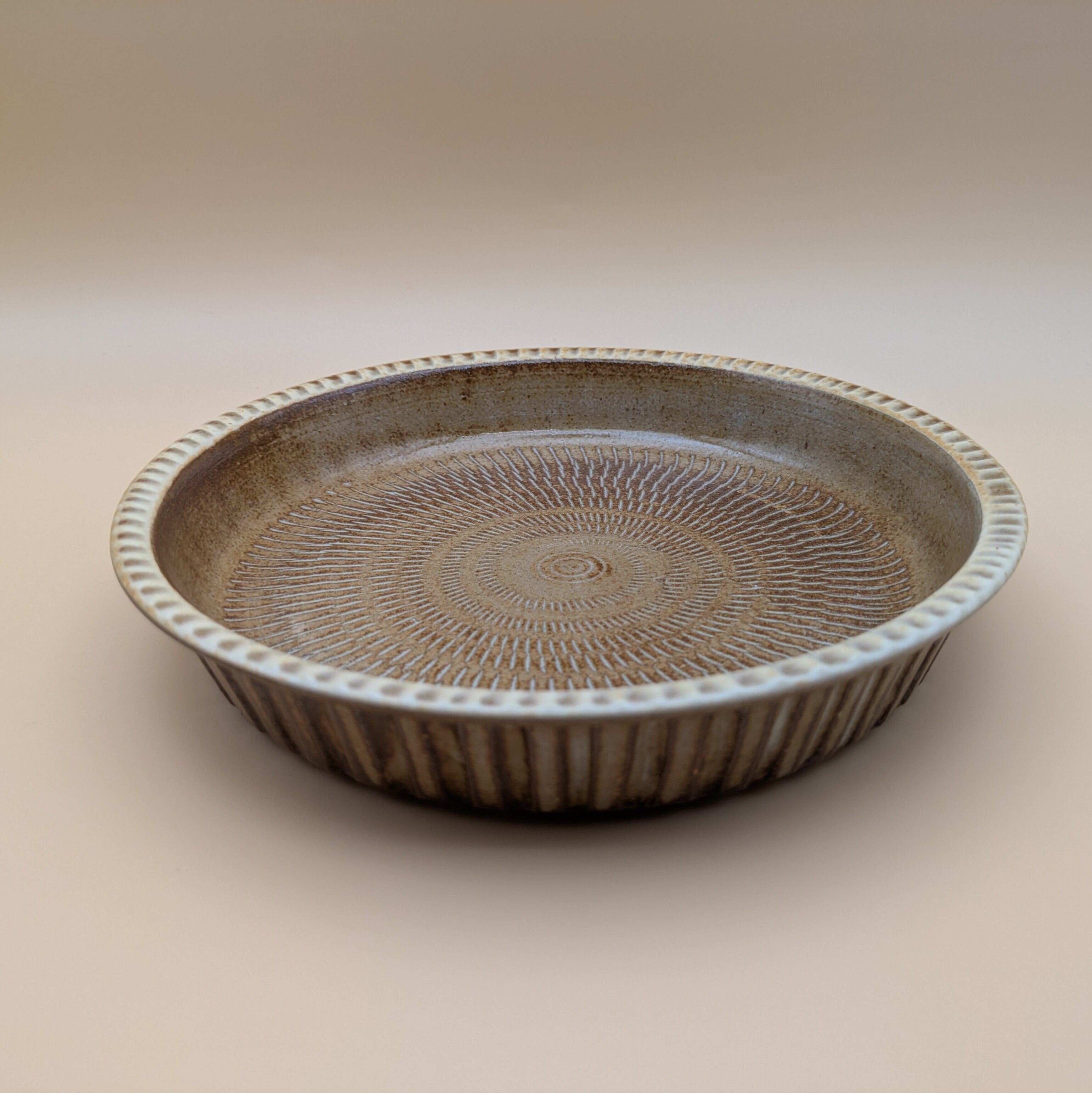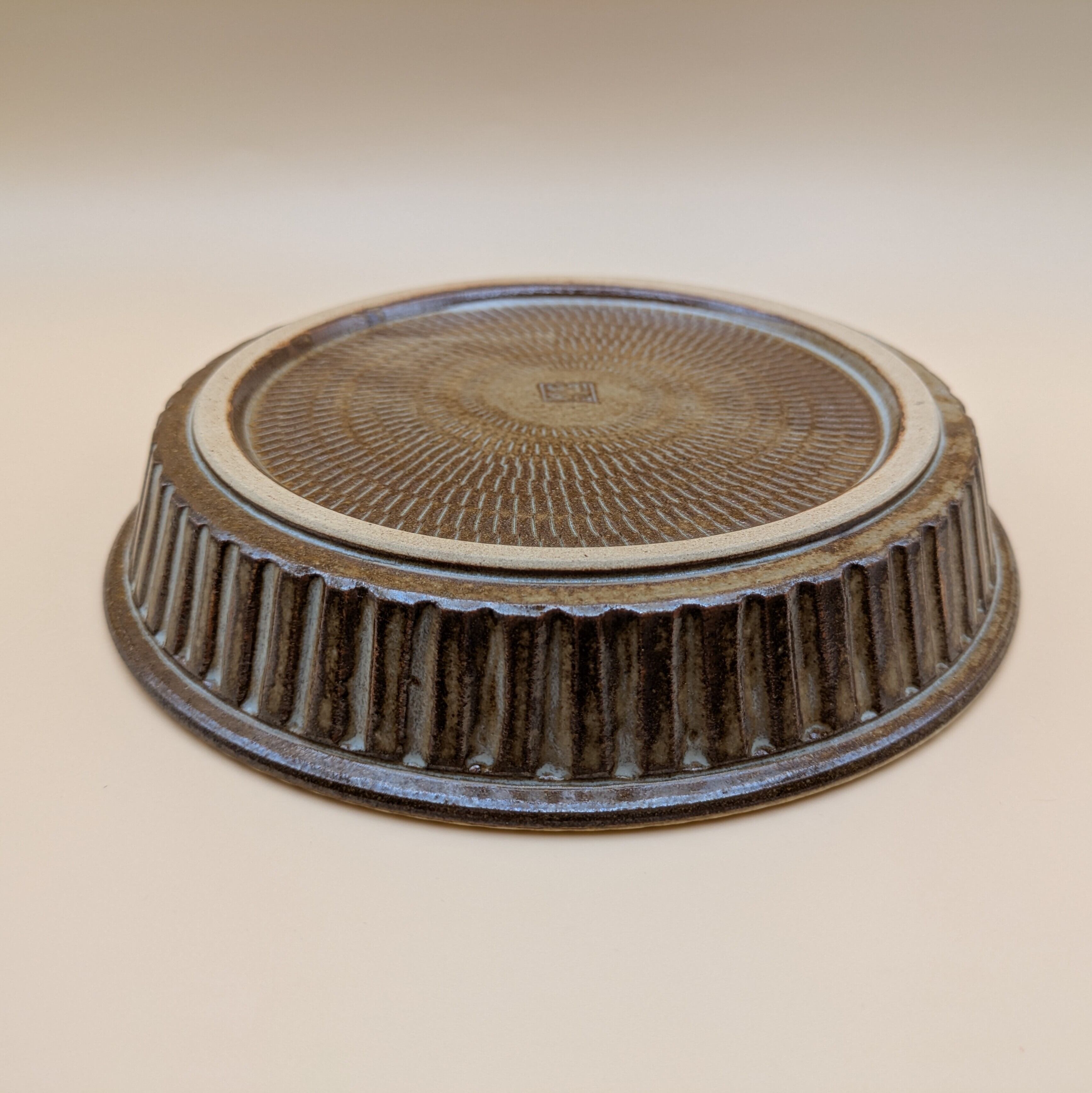 盛皿6.5寸 小石原焼(リム縁 茶飛び鉋) 直径20cm 高さ3.5cm 重量384g