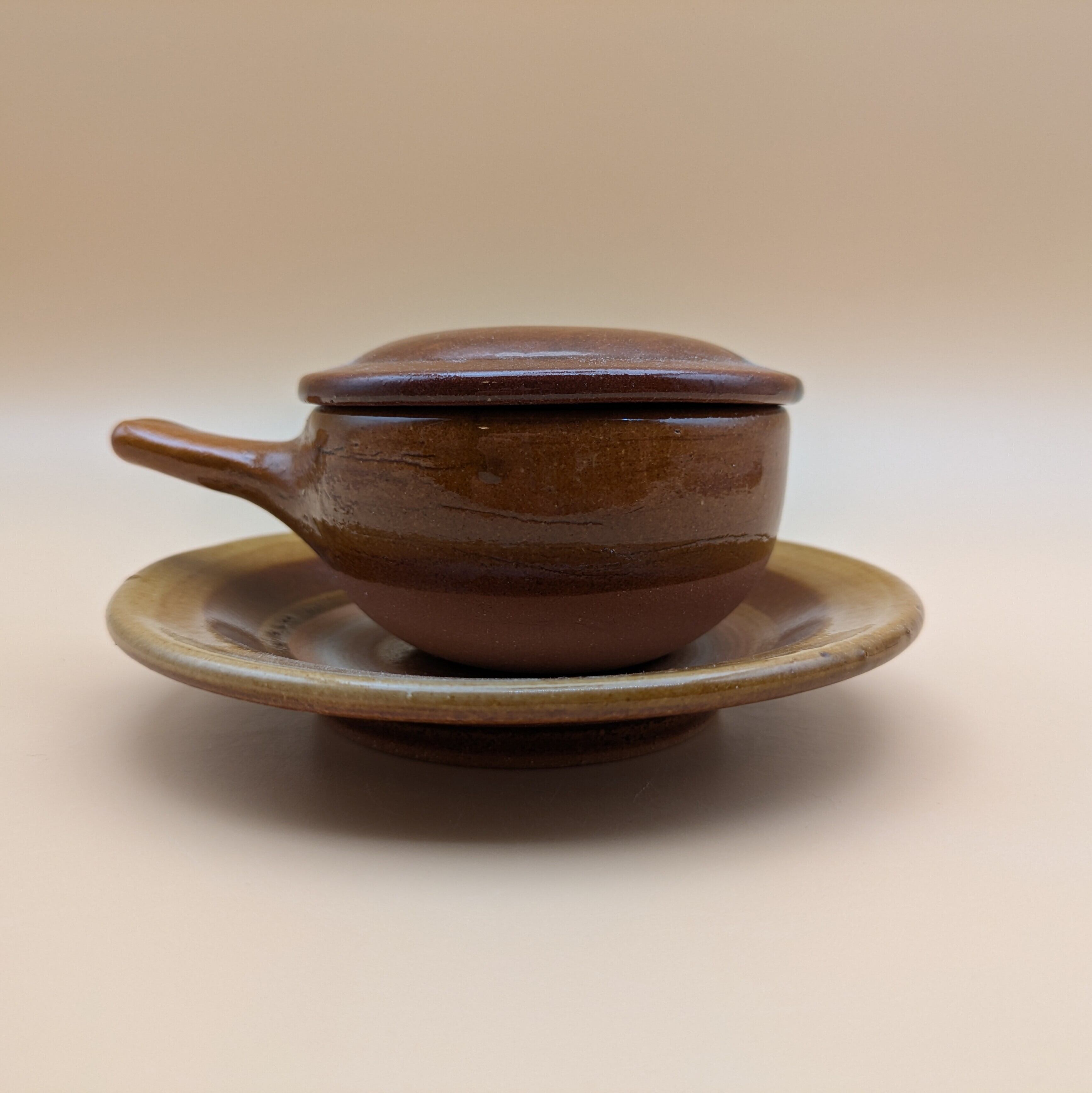 このエッグべーカーは、職人の手によって丹精込めて作られた逸品です。茶色の本体に黒ぶちがアクセントとなり、和食器としても美しいデザインです。