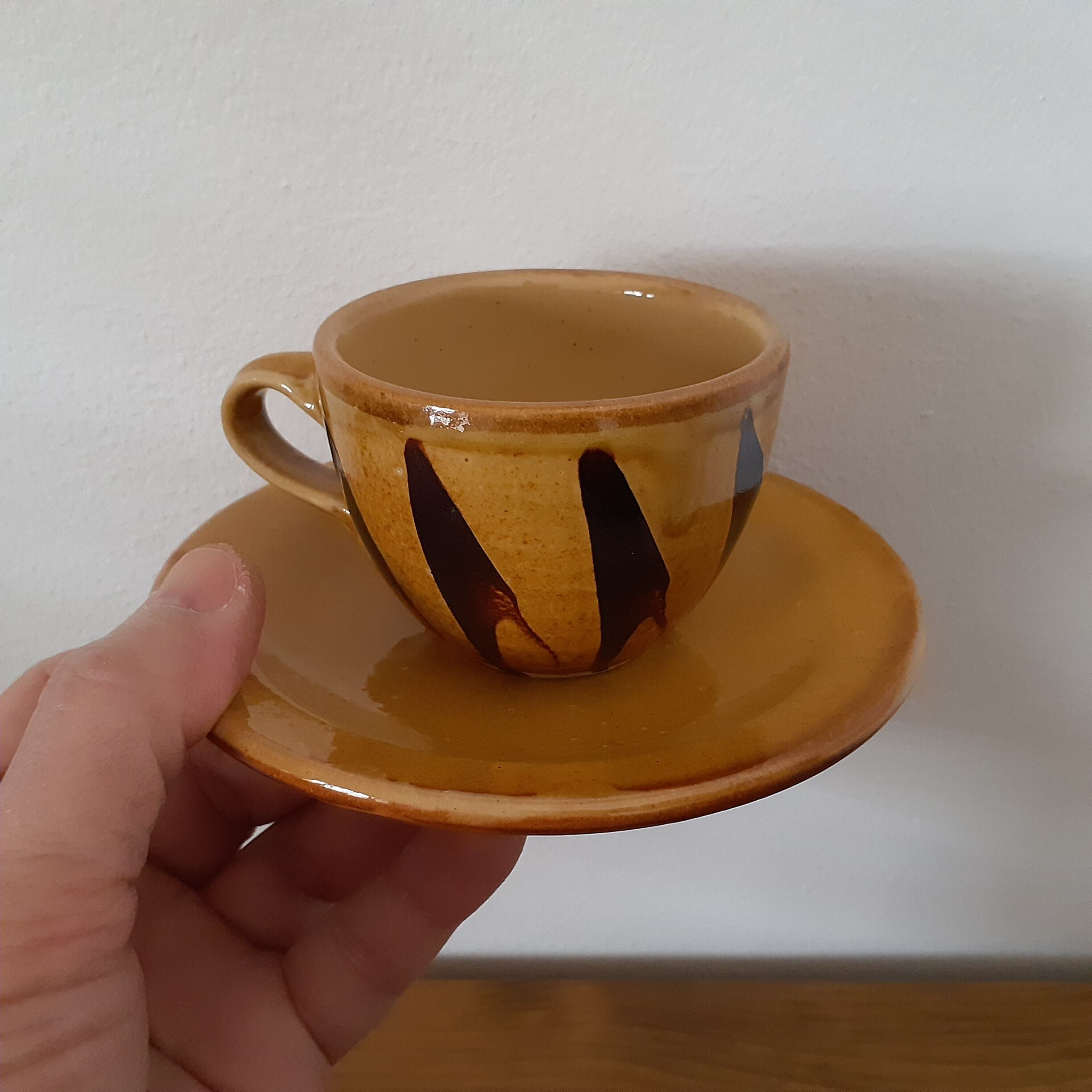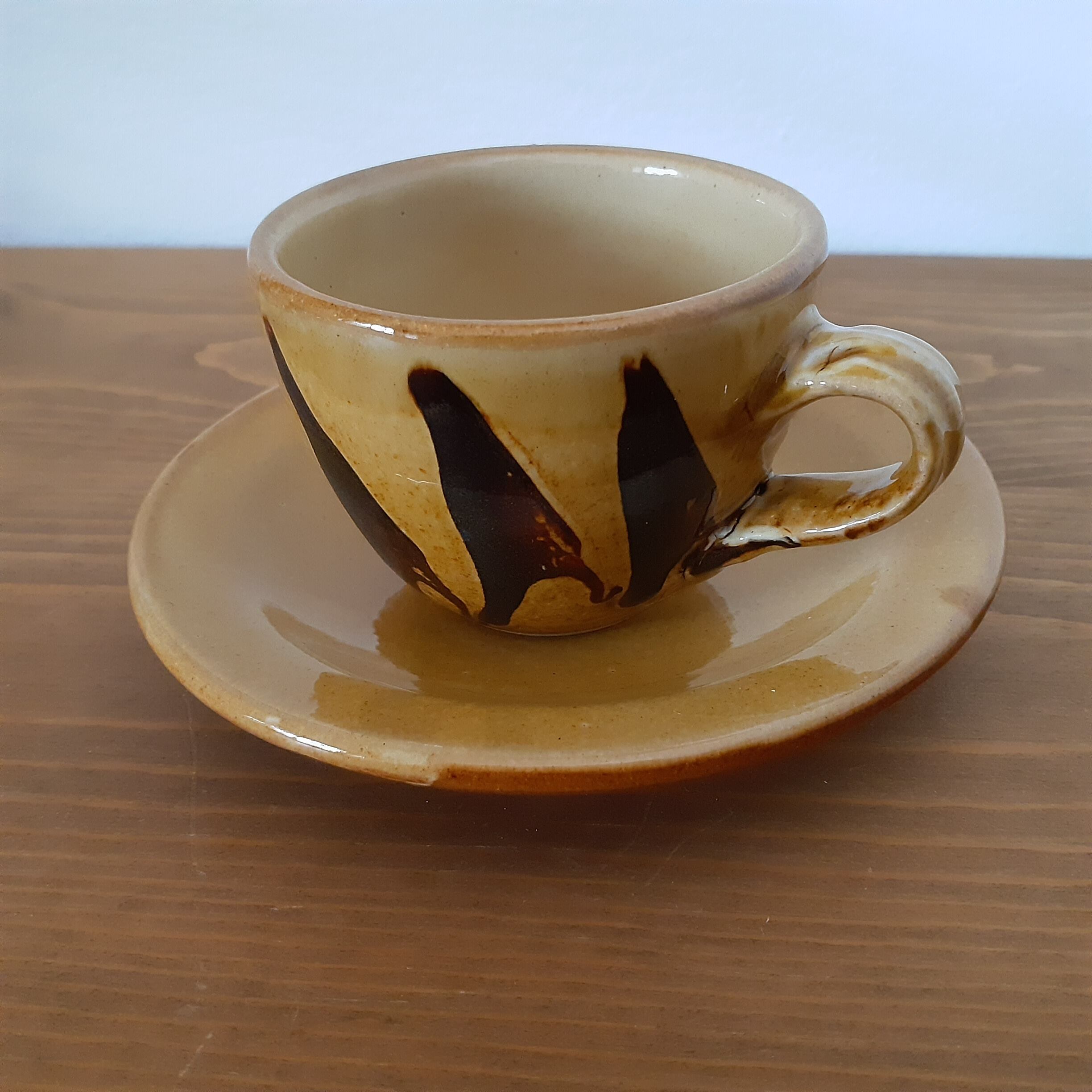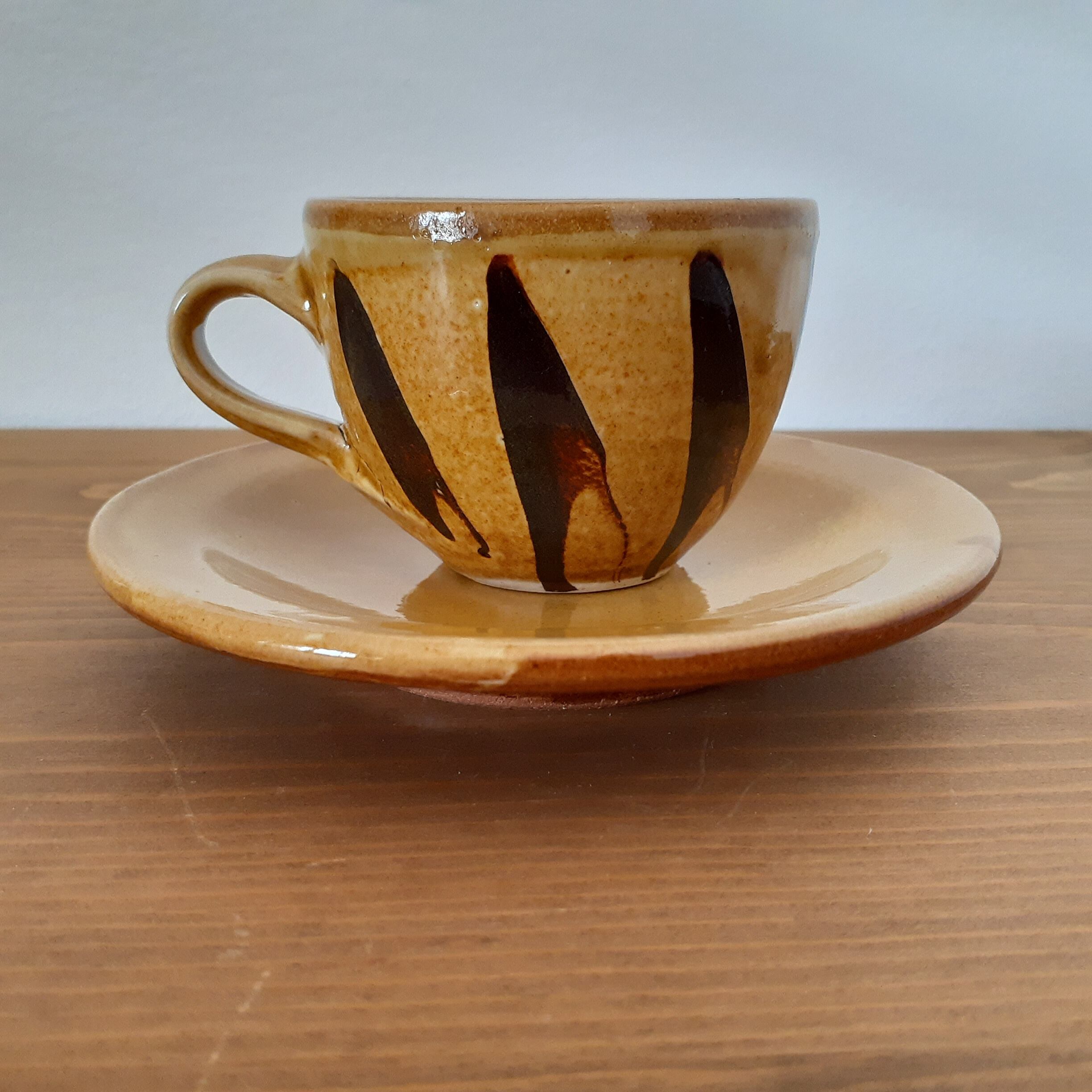 コーヒーカップ&ソーサー 湯町窯(黄 縦スリップウエア)03