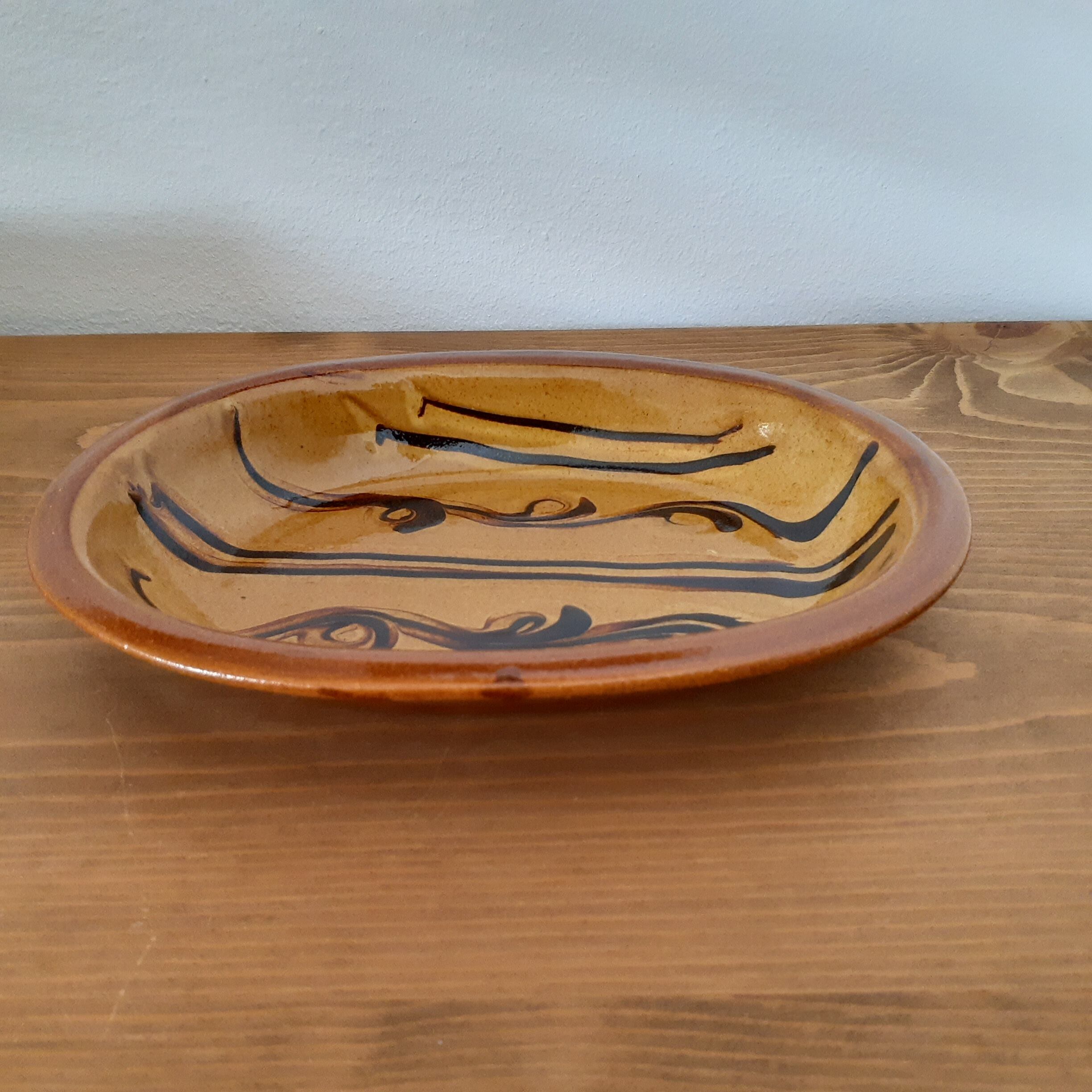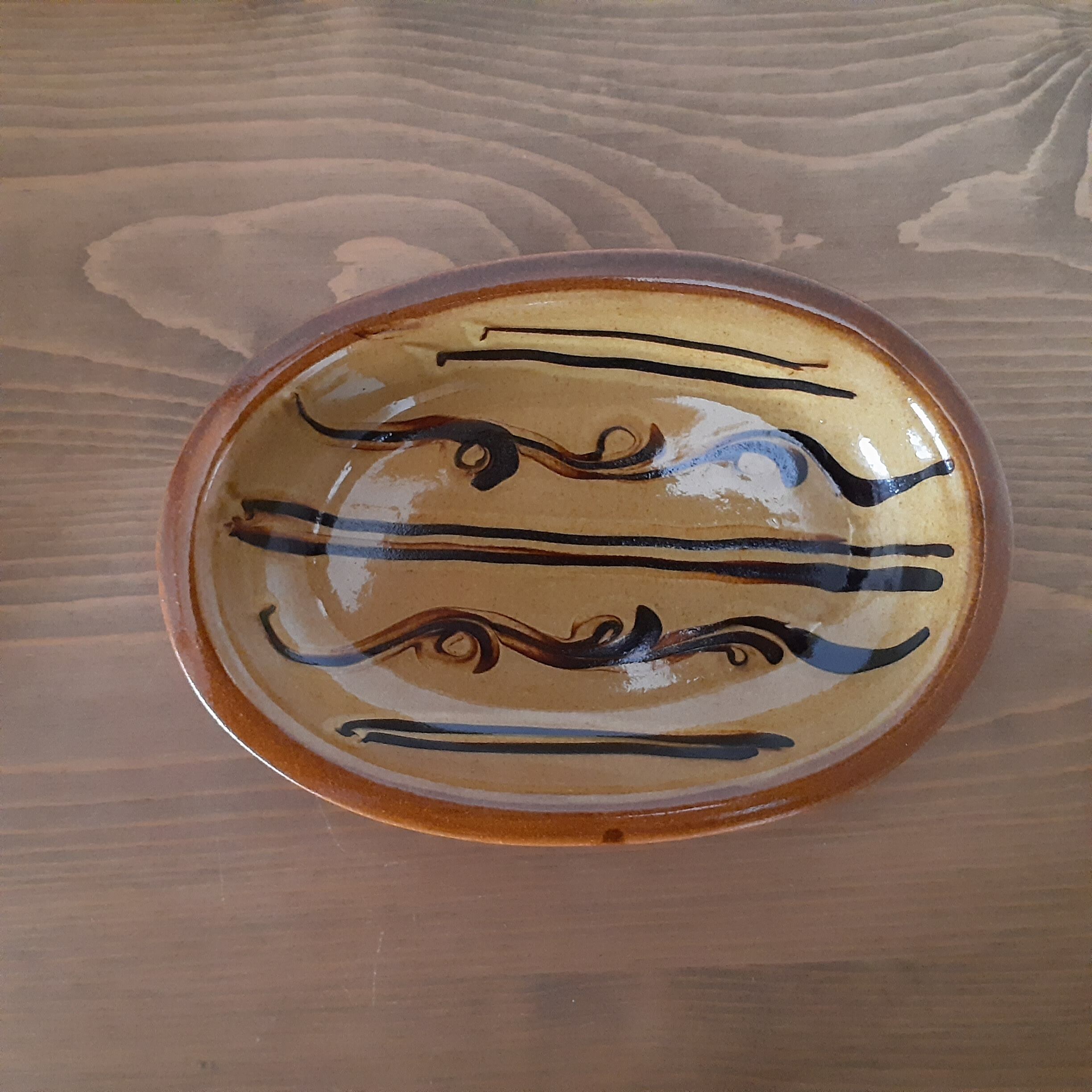盛皿7寸(オーバル) 湯町窯(黄+スリップウエア)03