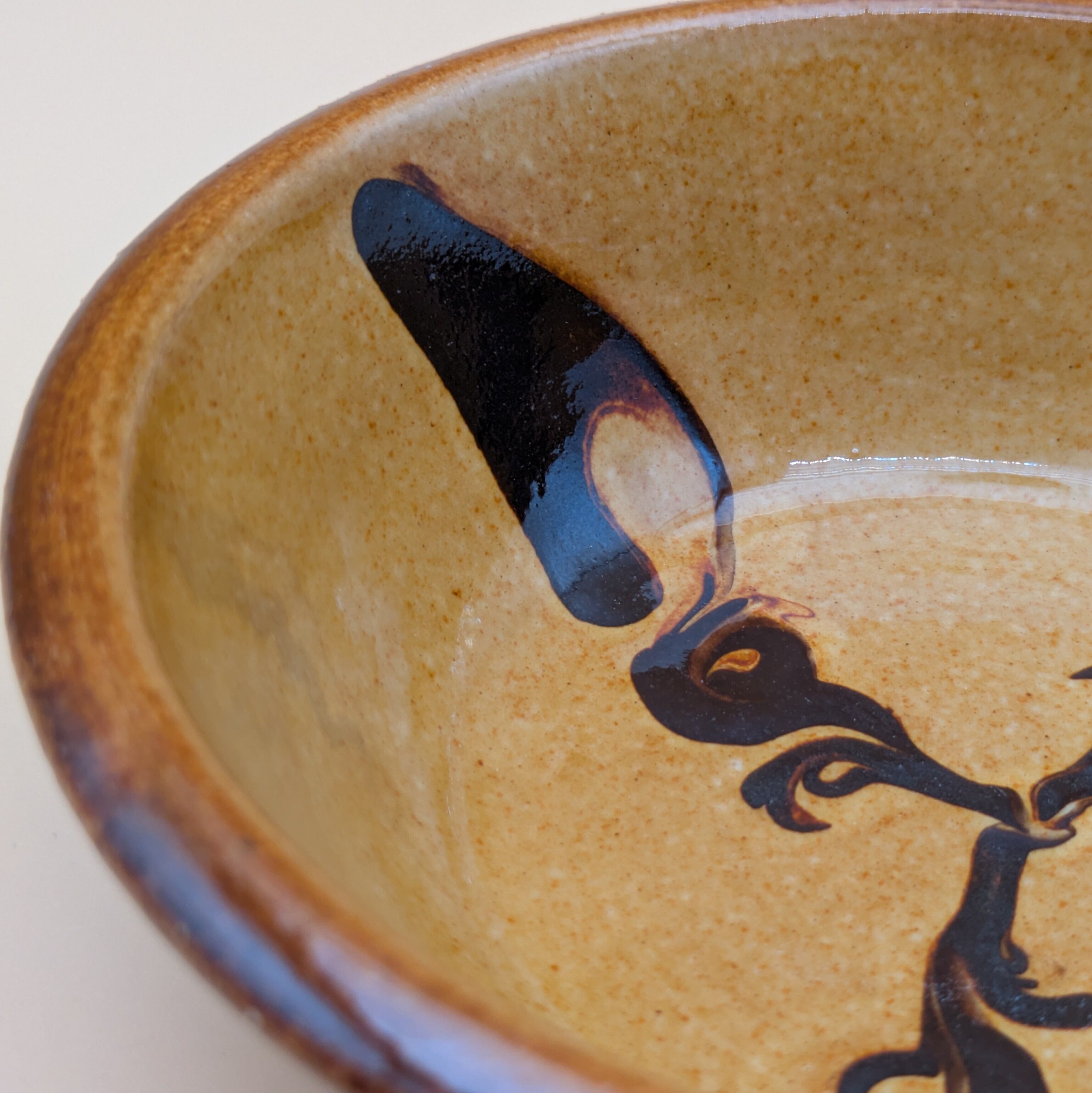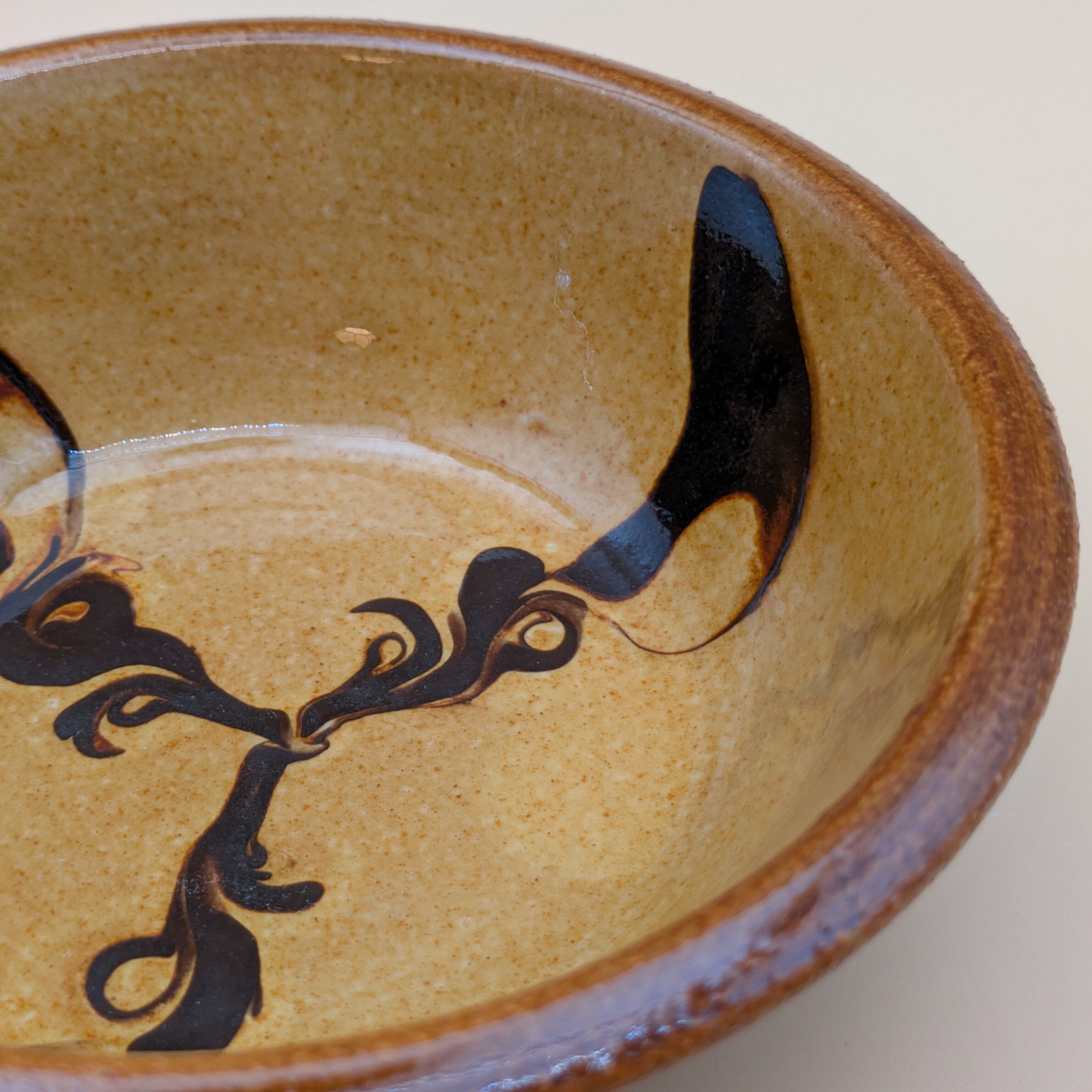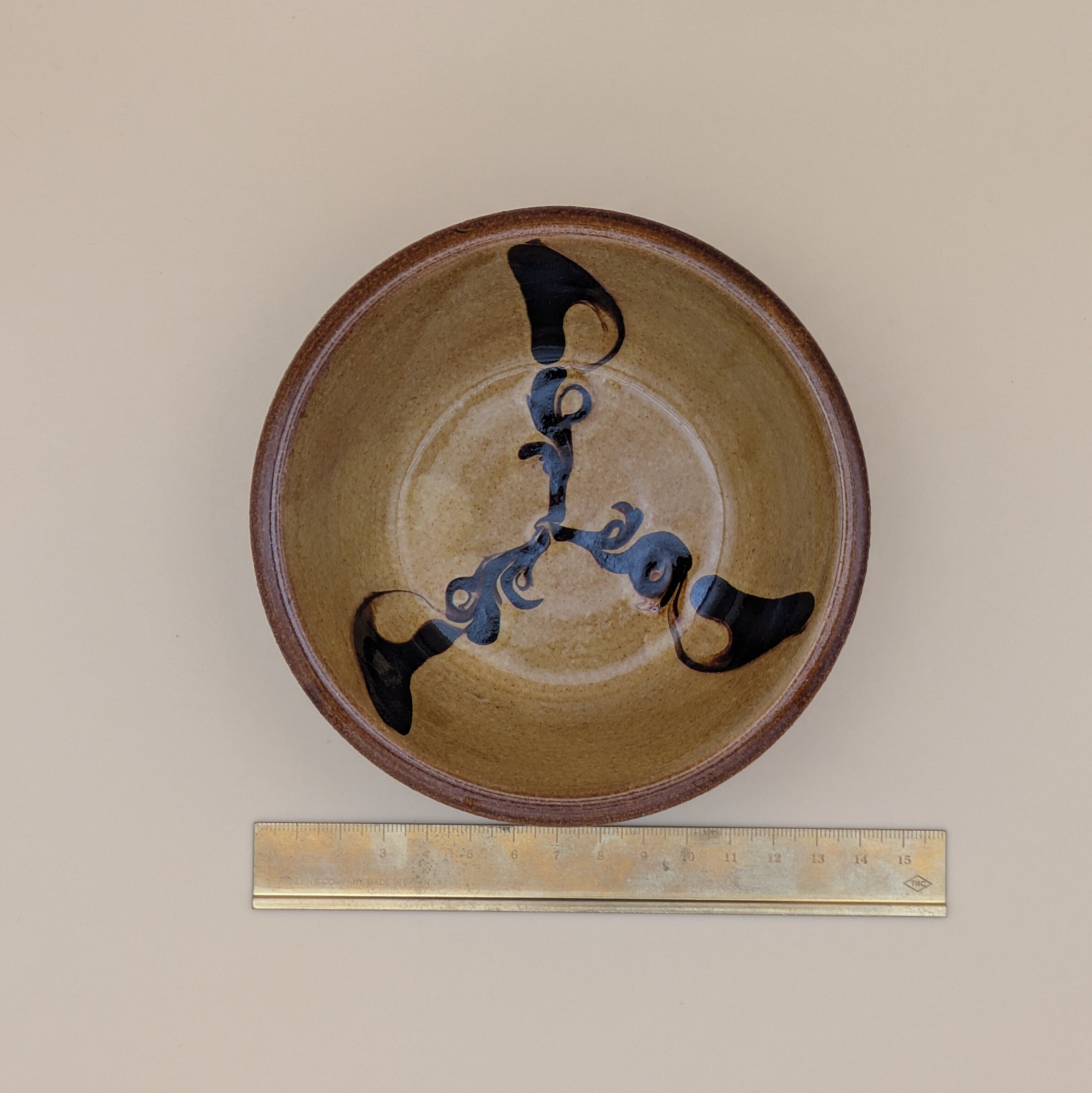 盛皿4.5寸 湯町窯(黄 黒スリップウエア)01 直径13.5cm 高さ4.2cm 重量210g