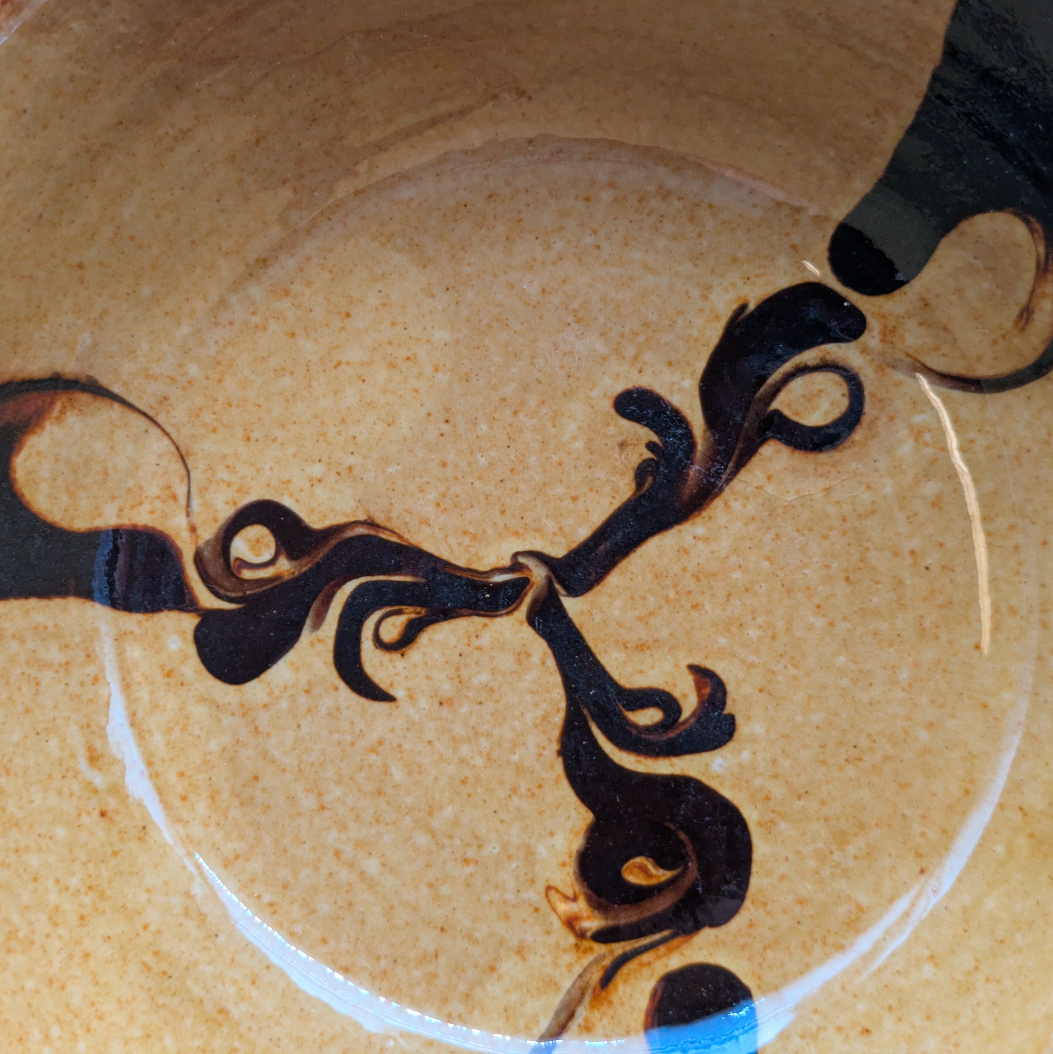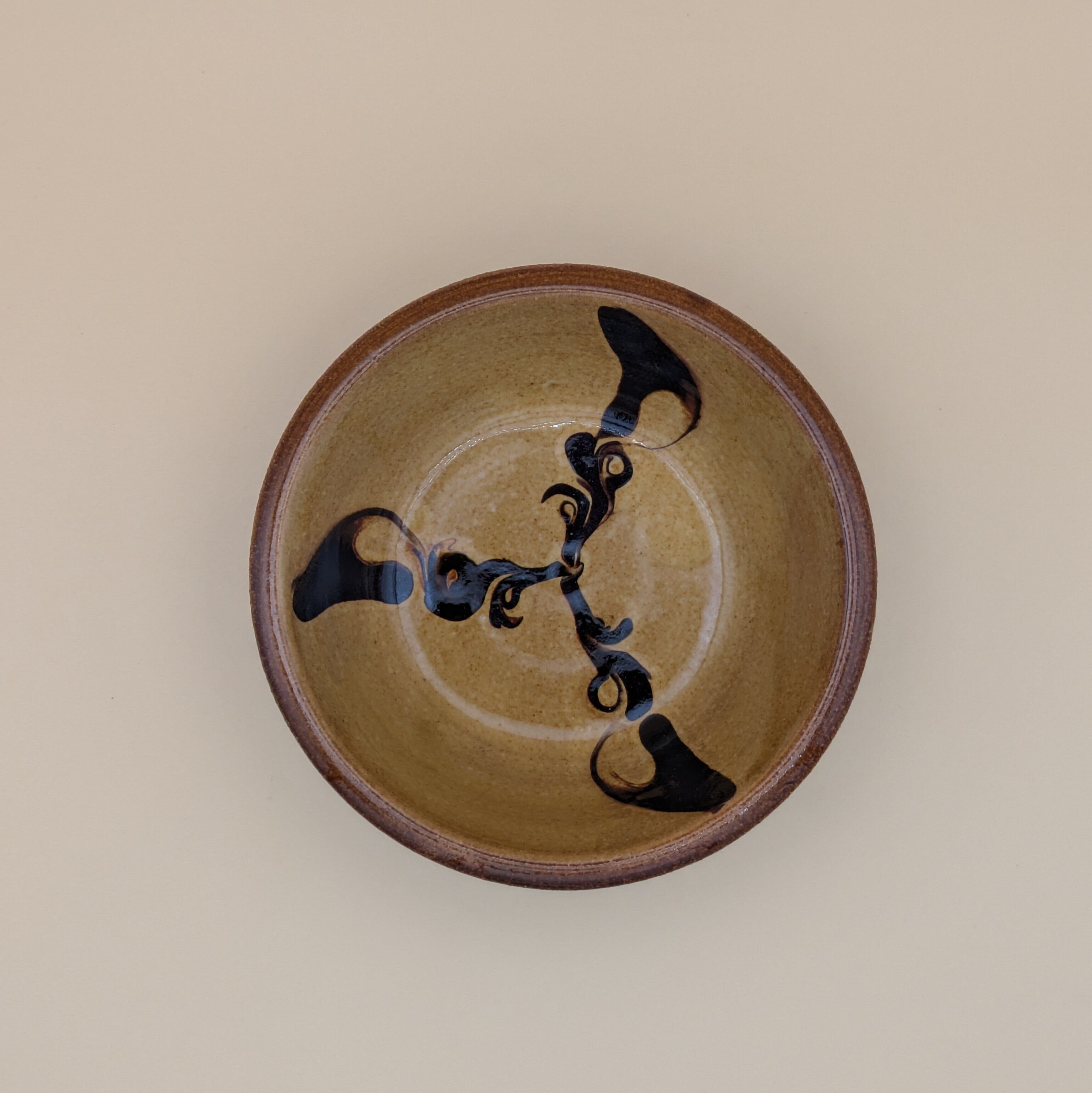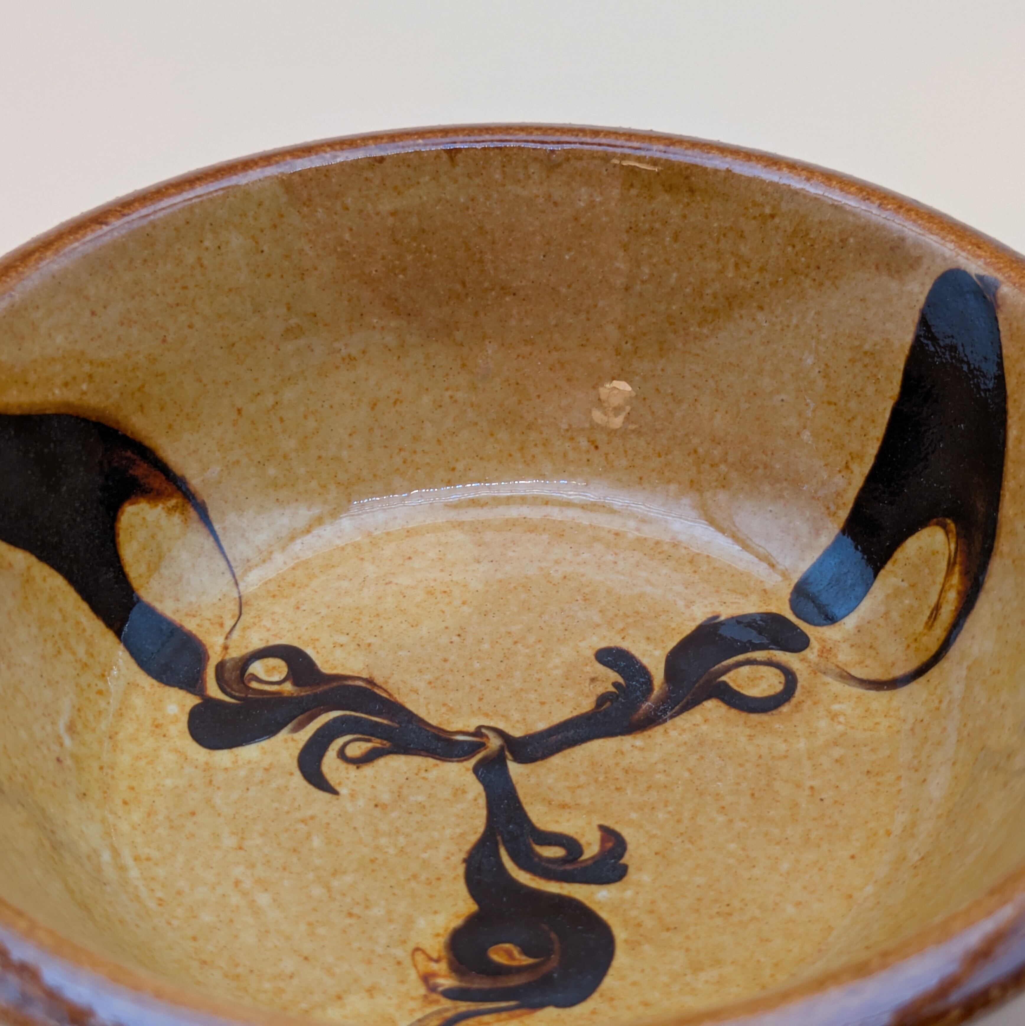 盛皿4.5寸 湯町窯(黄 黒スリップウエア)01 直径13.5cm 高さ4.2cm 重量210g