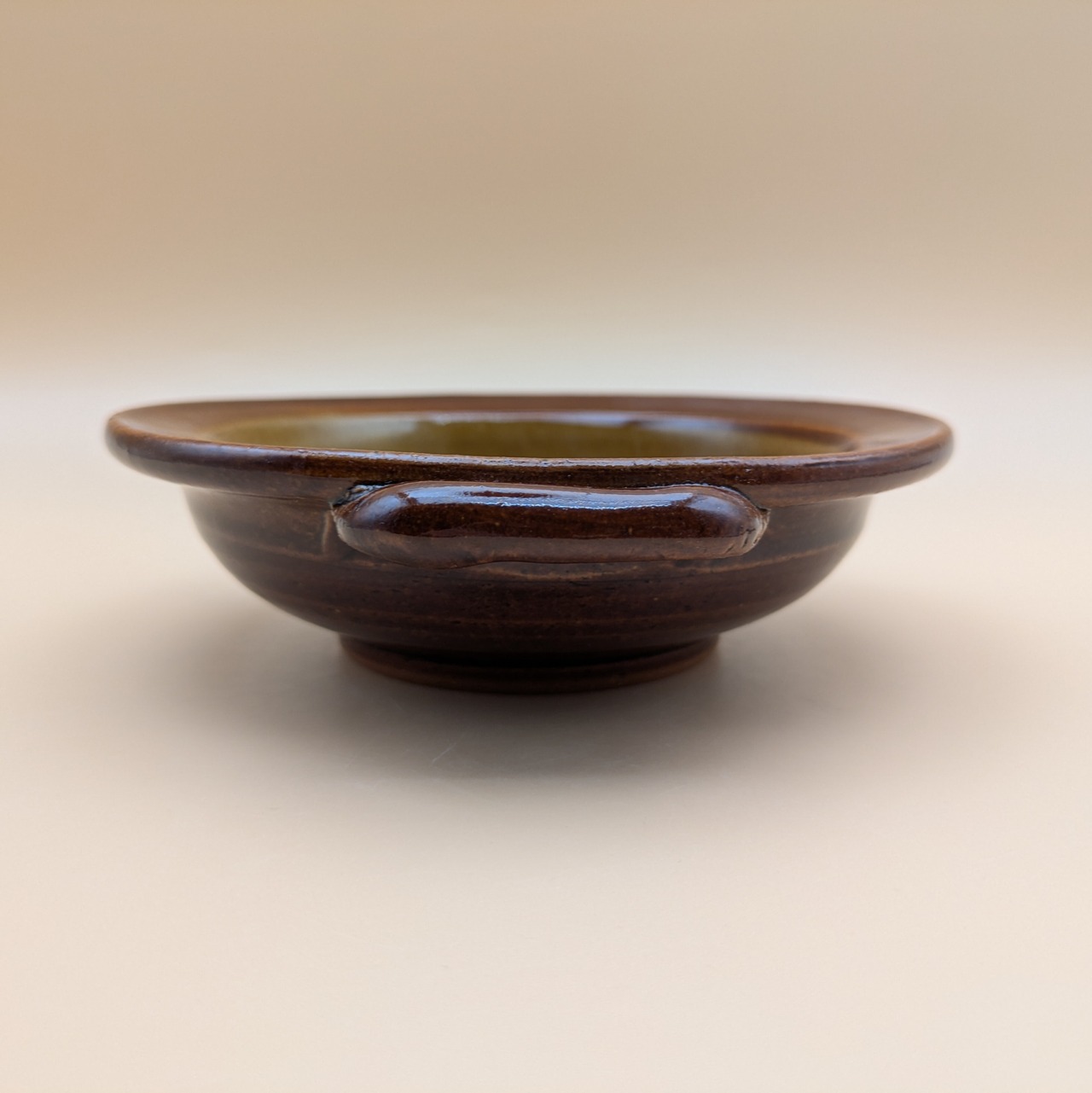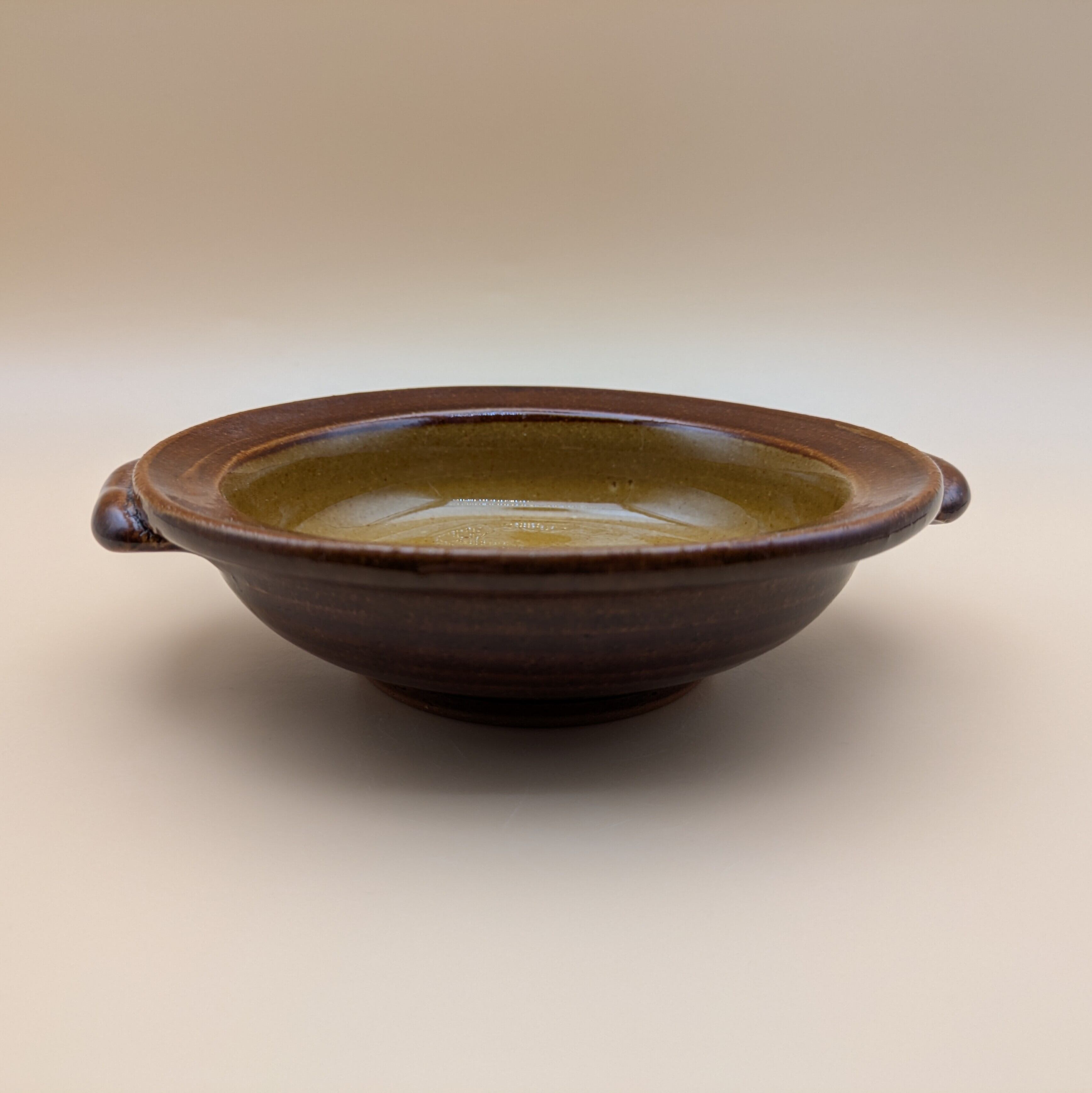 手作りの湯町窯で焼かれた、黄色の無地のグラタン皿。5寸と手ごろなサイズです。