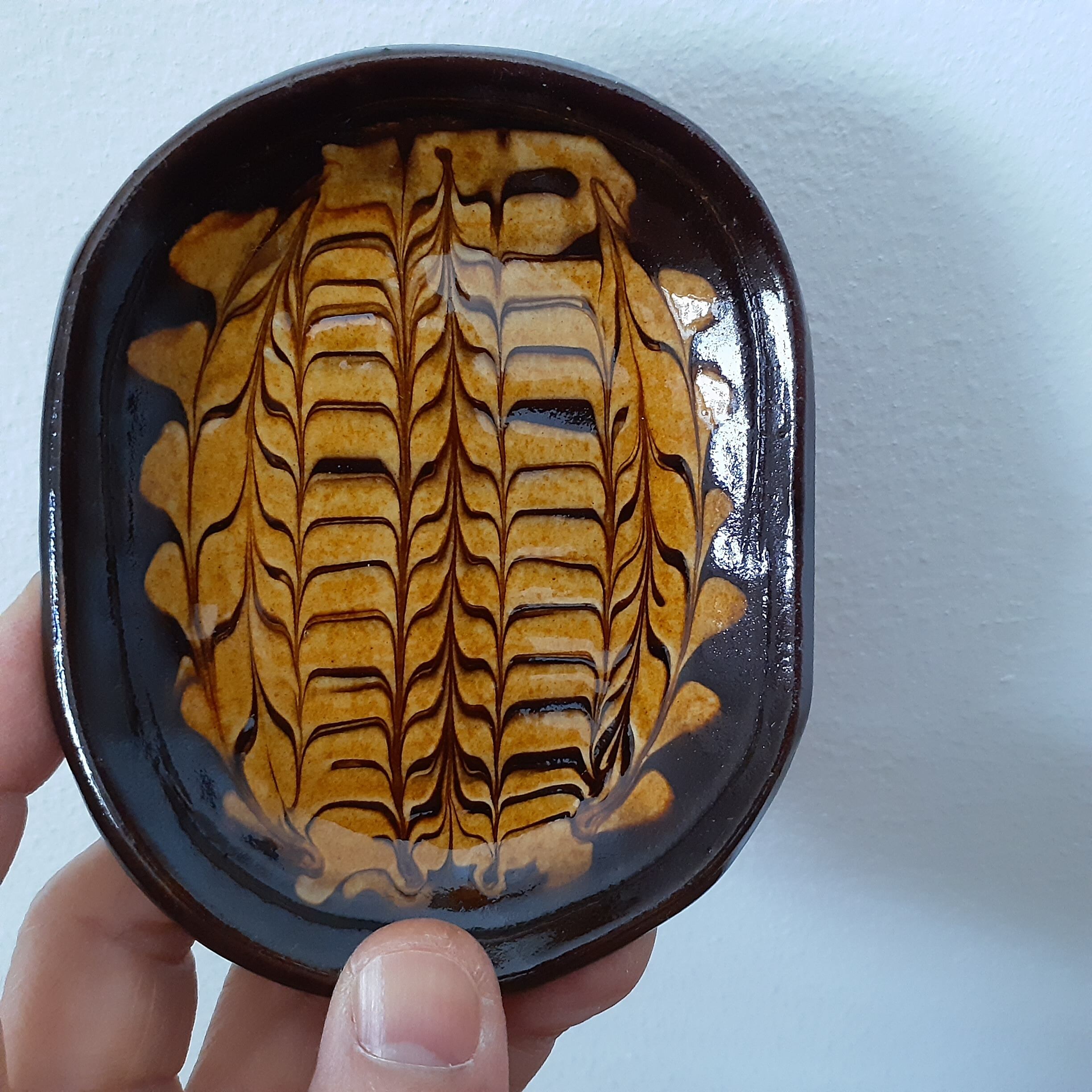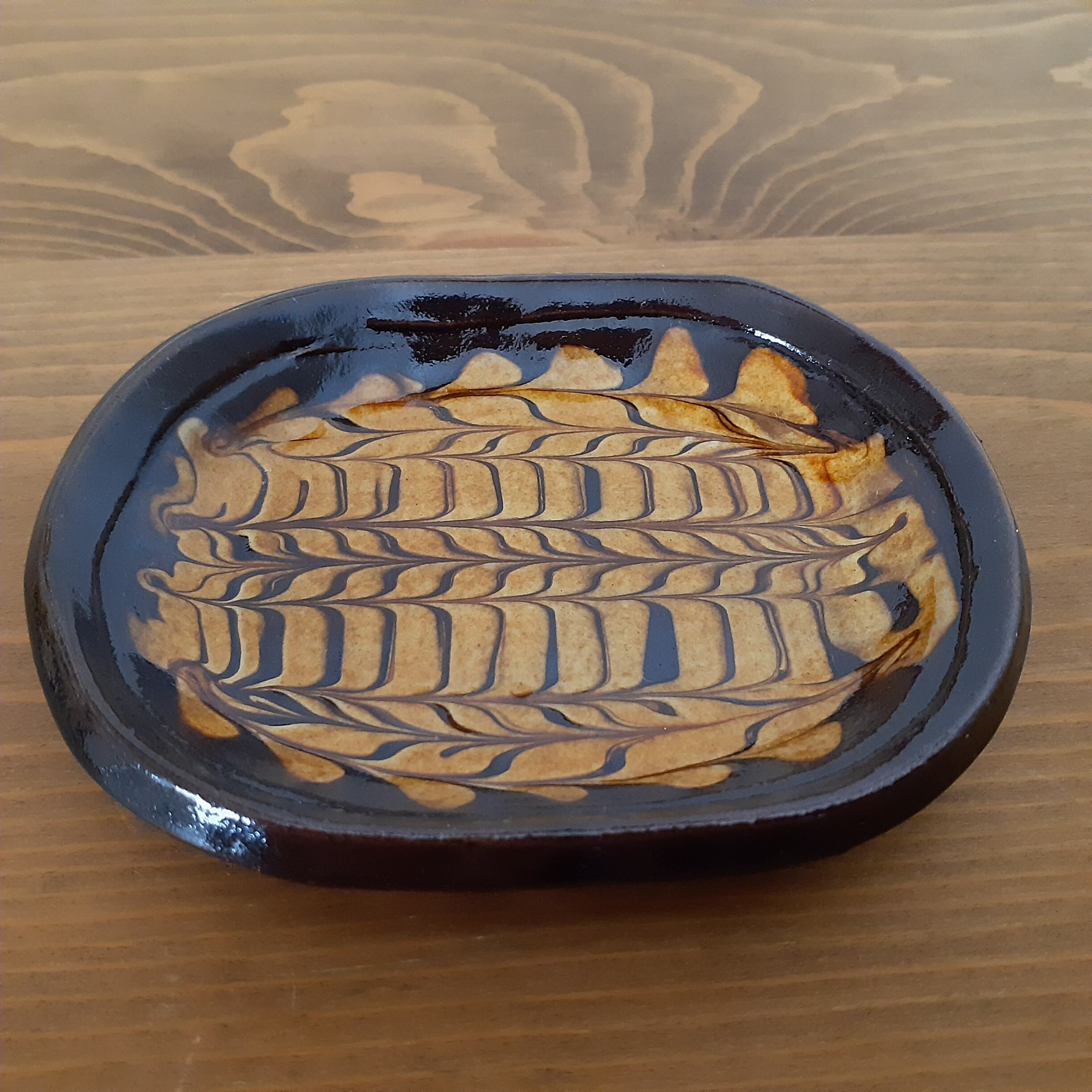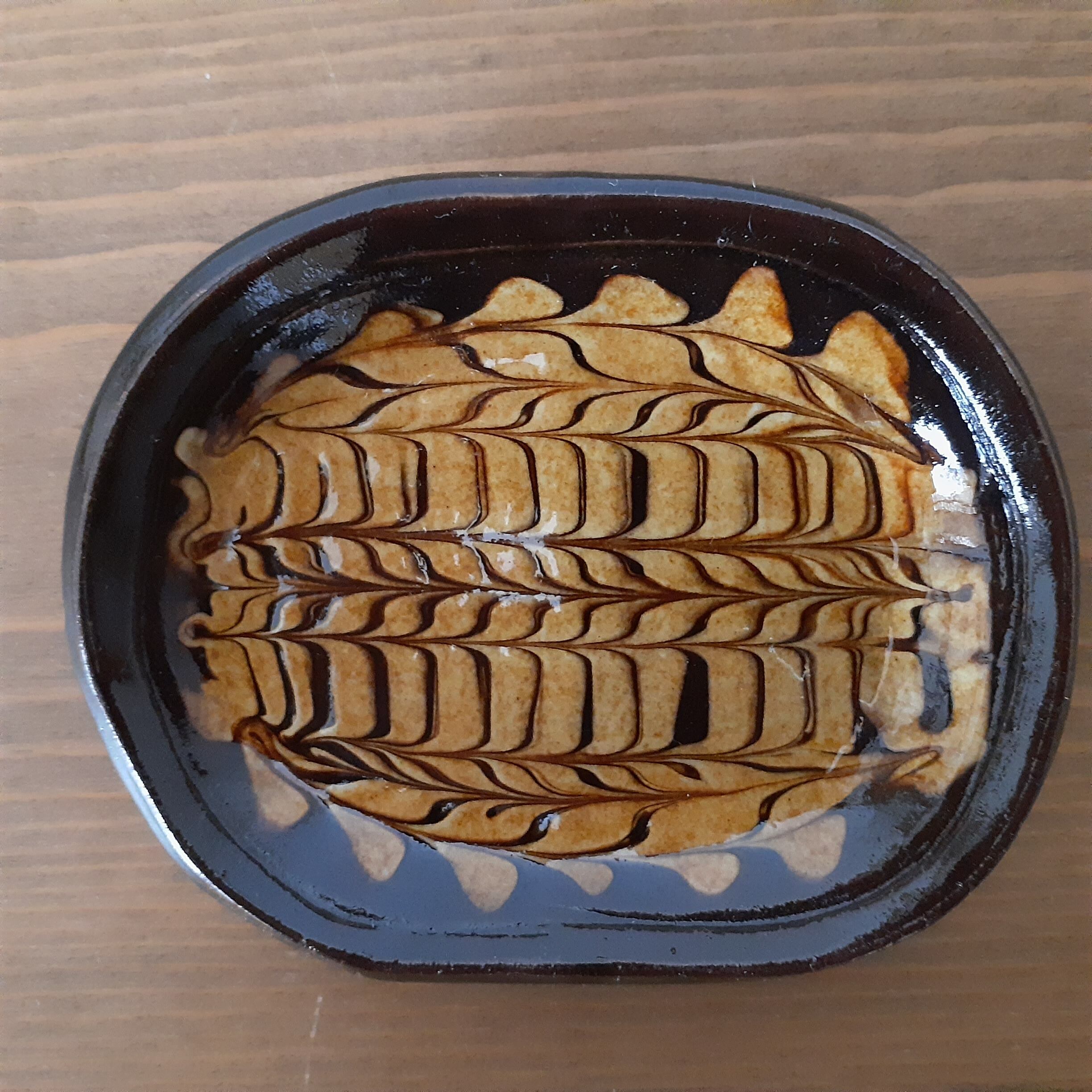 豆皿(オーバル) 湯町窯(黒+黄スリップウエア)01
