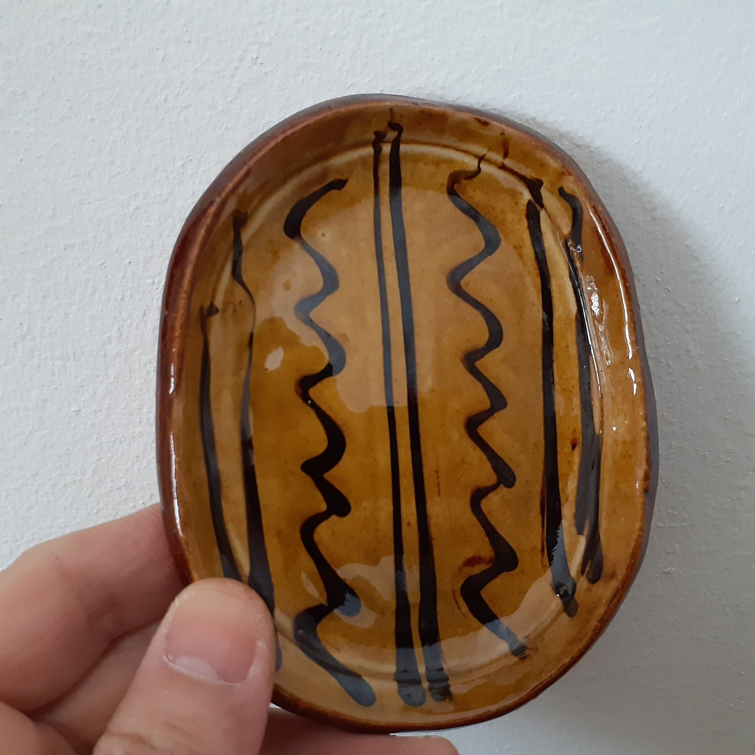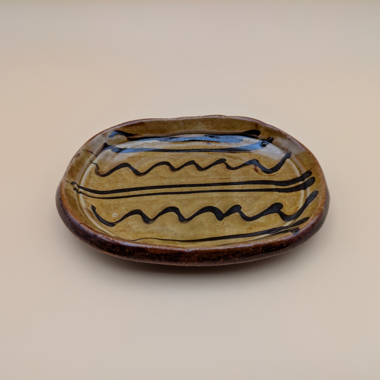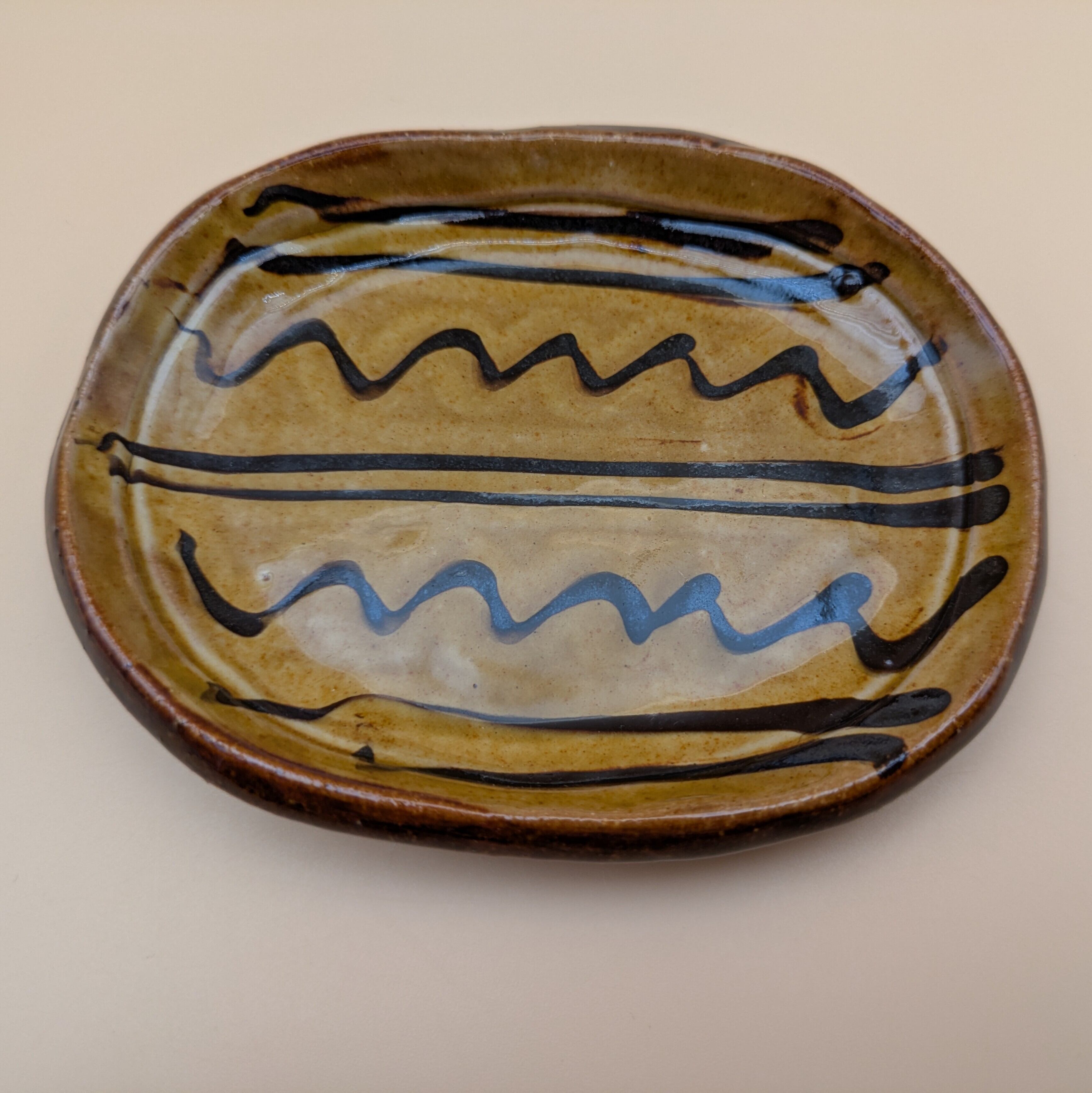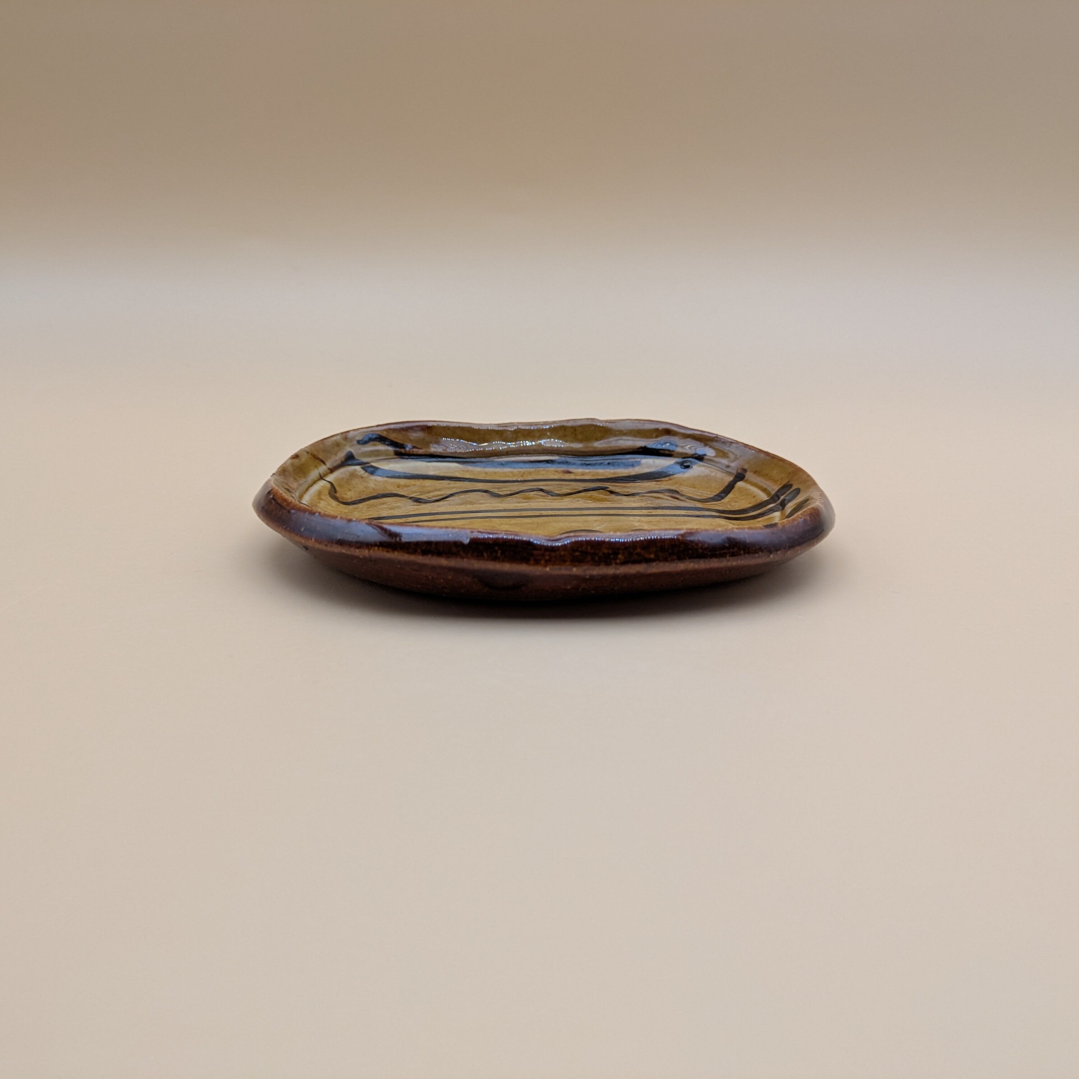 豆皿(オーバル) 湯町窯(黄+黒スリップウエア)02