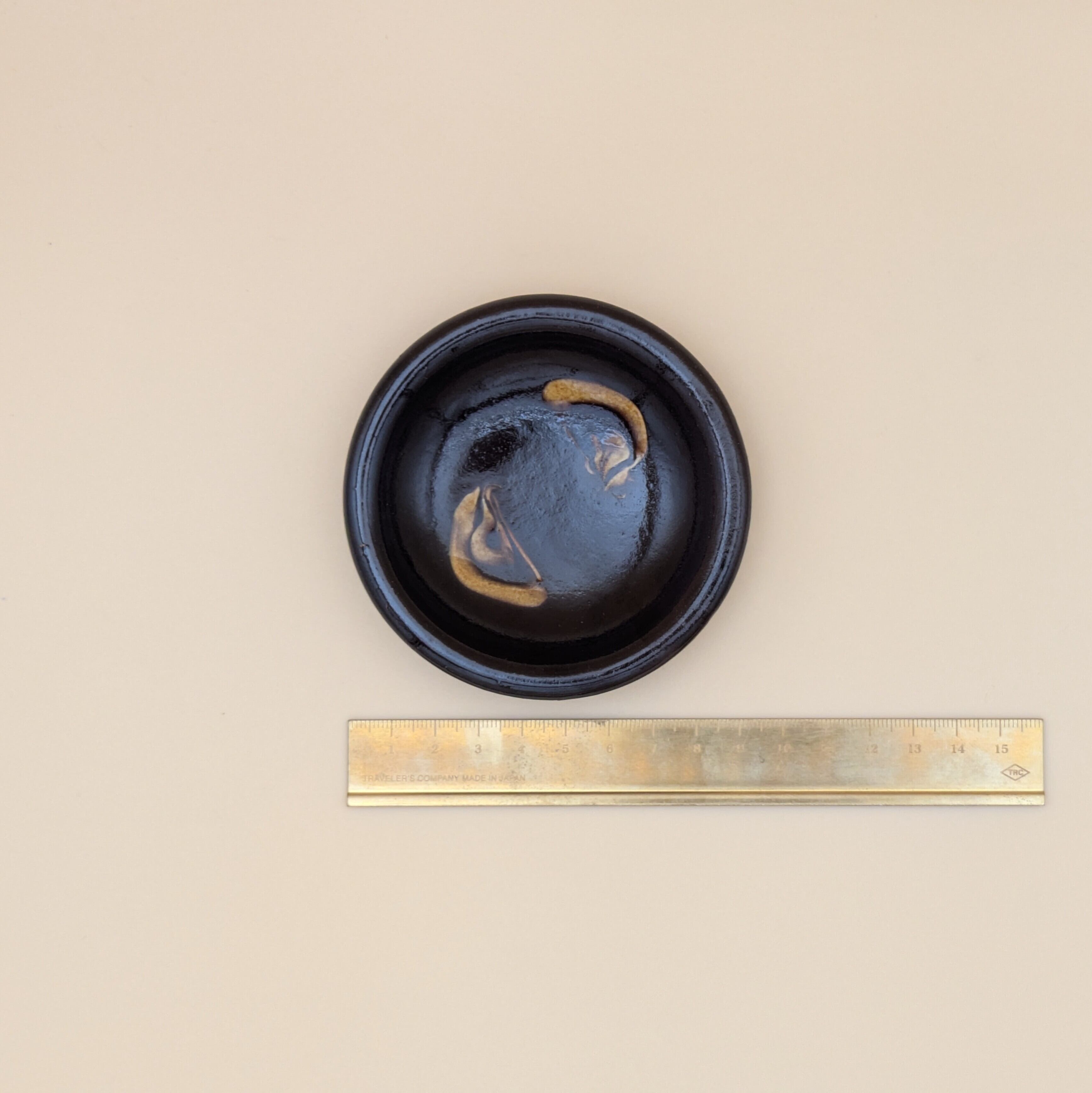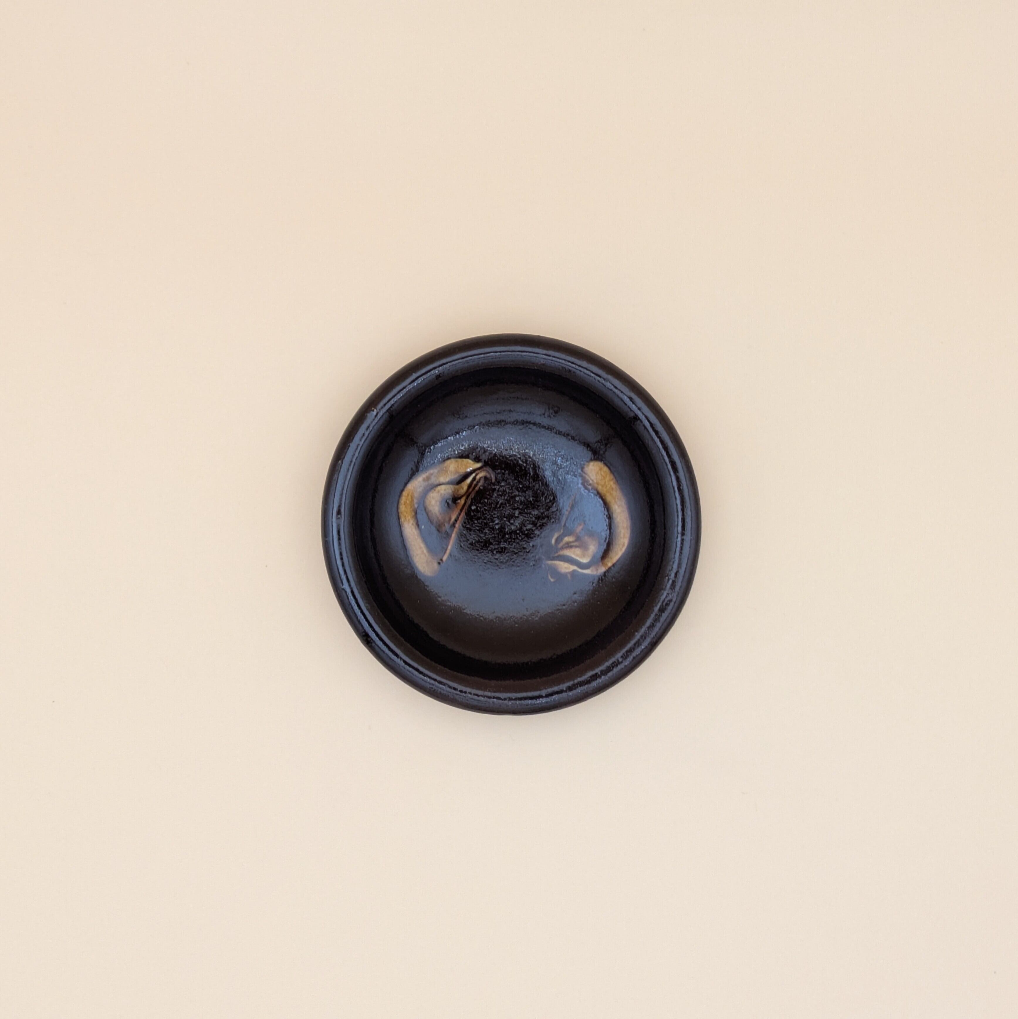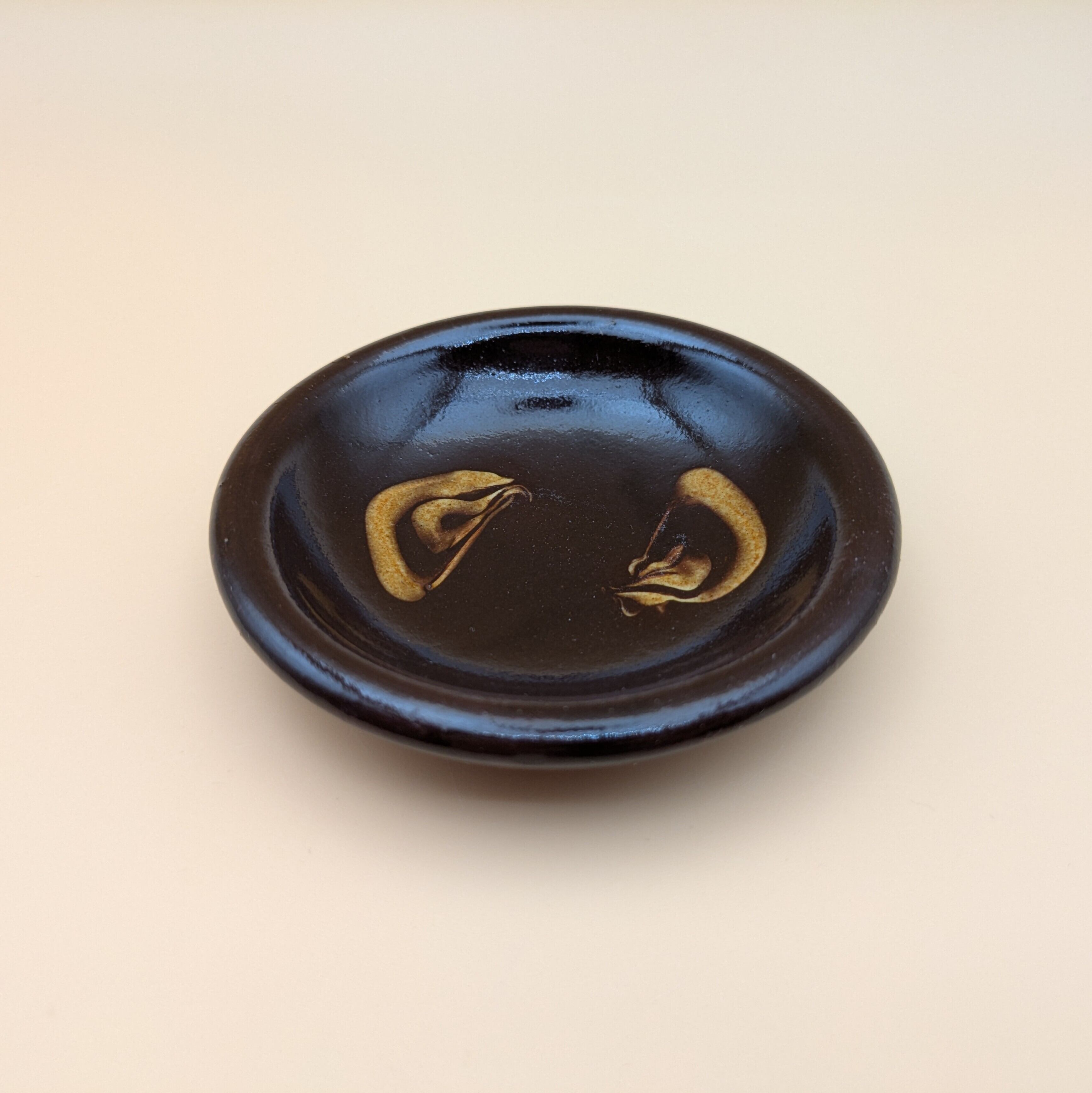 豆皿 湯町窯(黒+黄スリップウエア)01 直径9.0cm 高さ2.0cm 重量104g