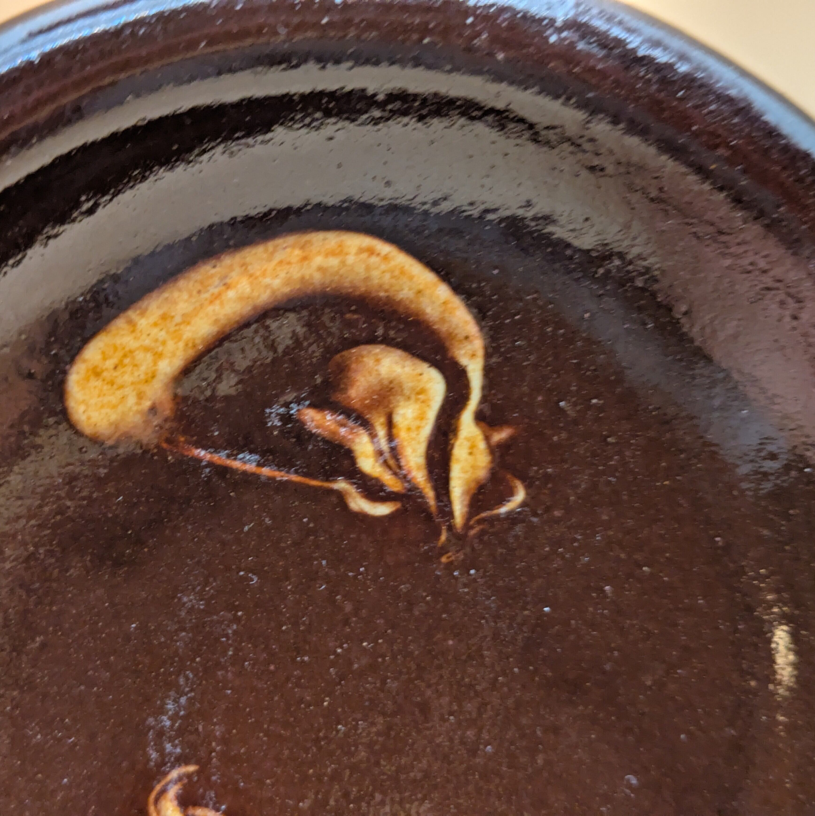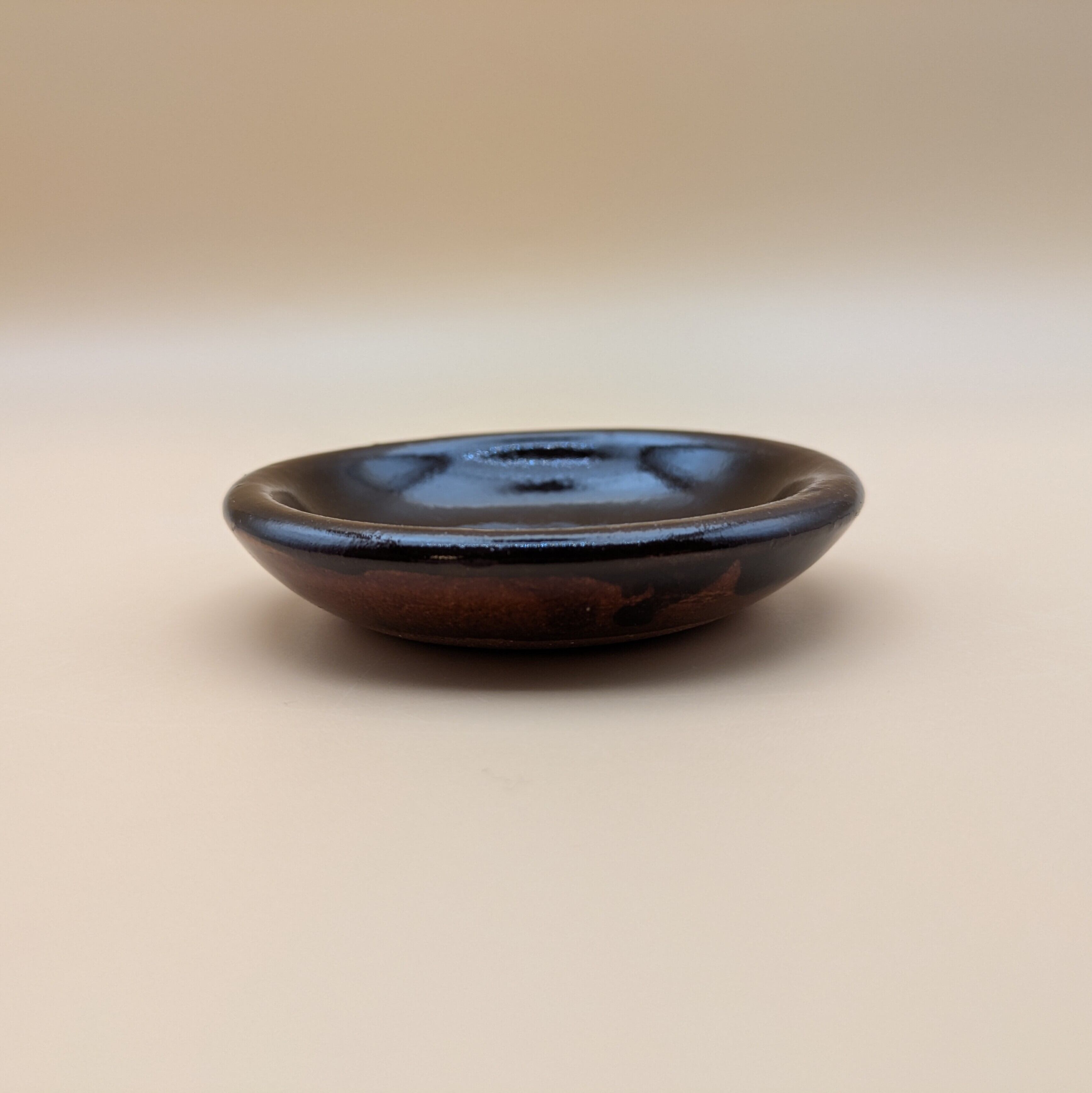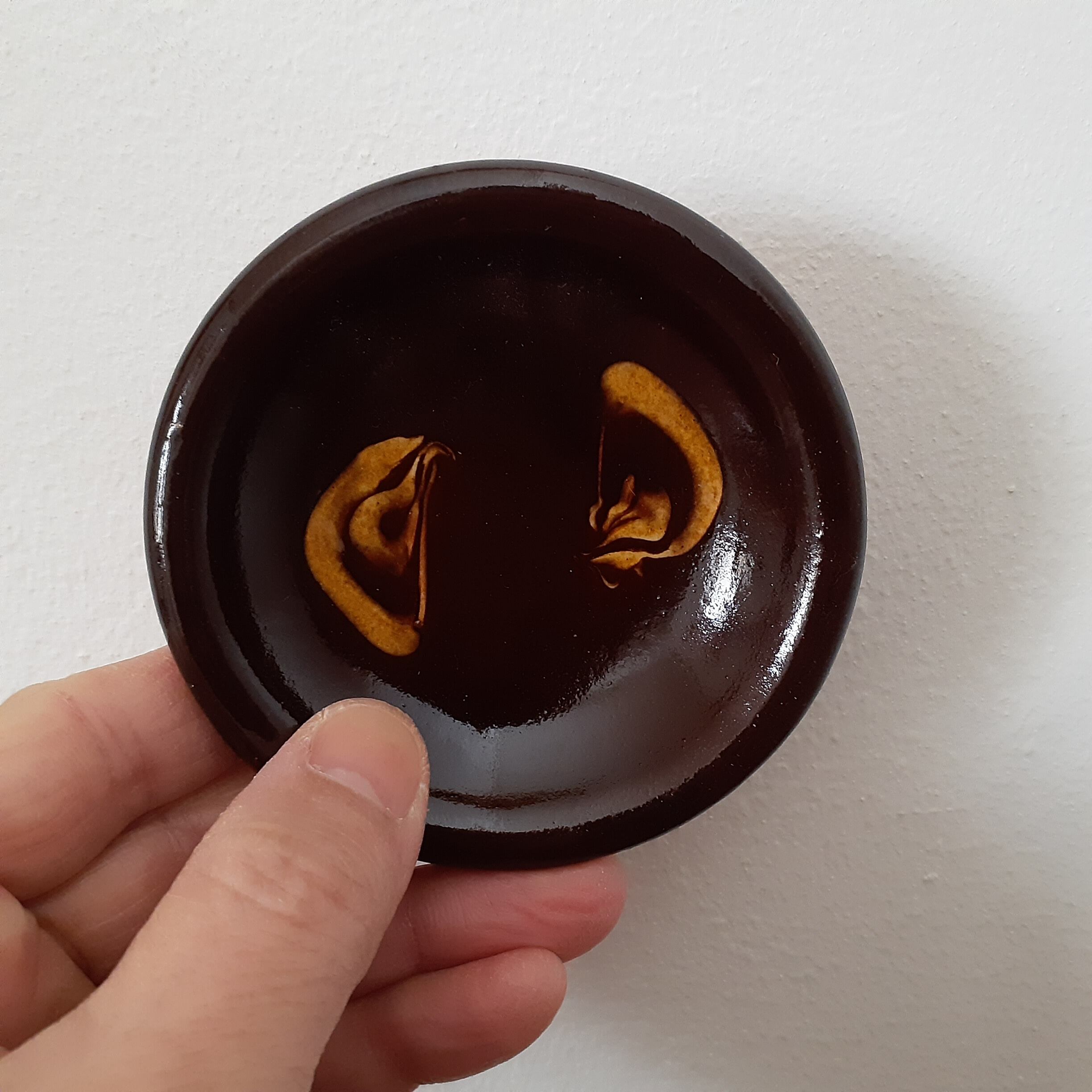 豆皿 湯町窯(黒+黄スリップウエア)01 直径9.0cm 高さ2.0cm 重量104g