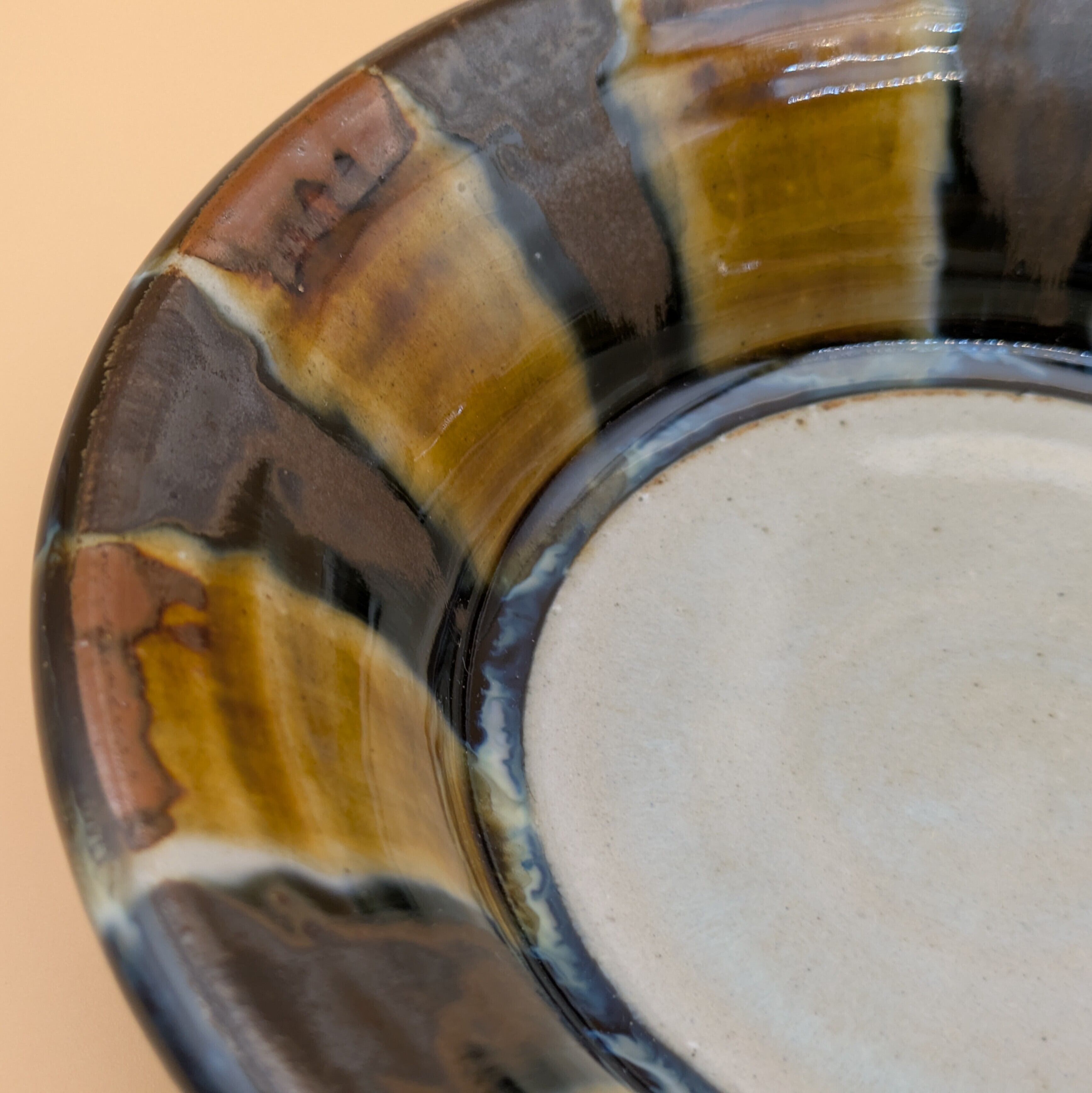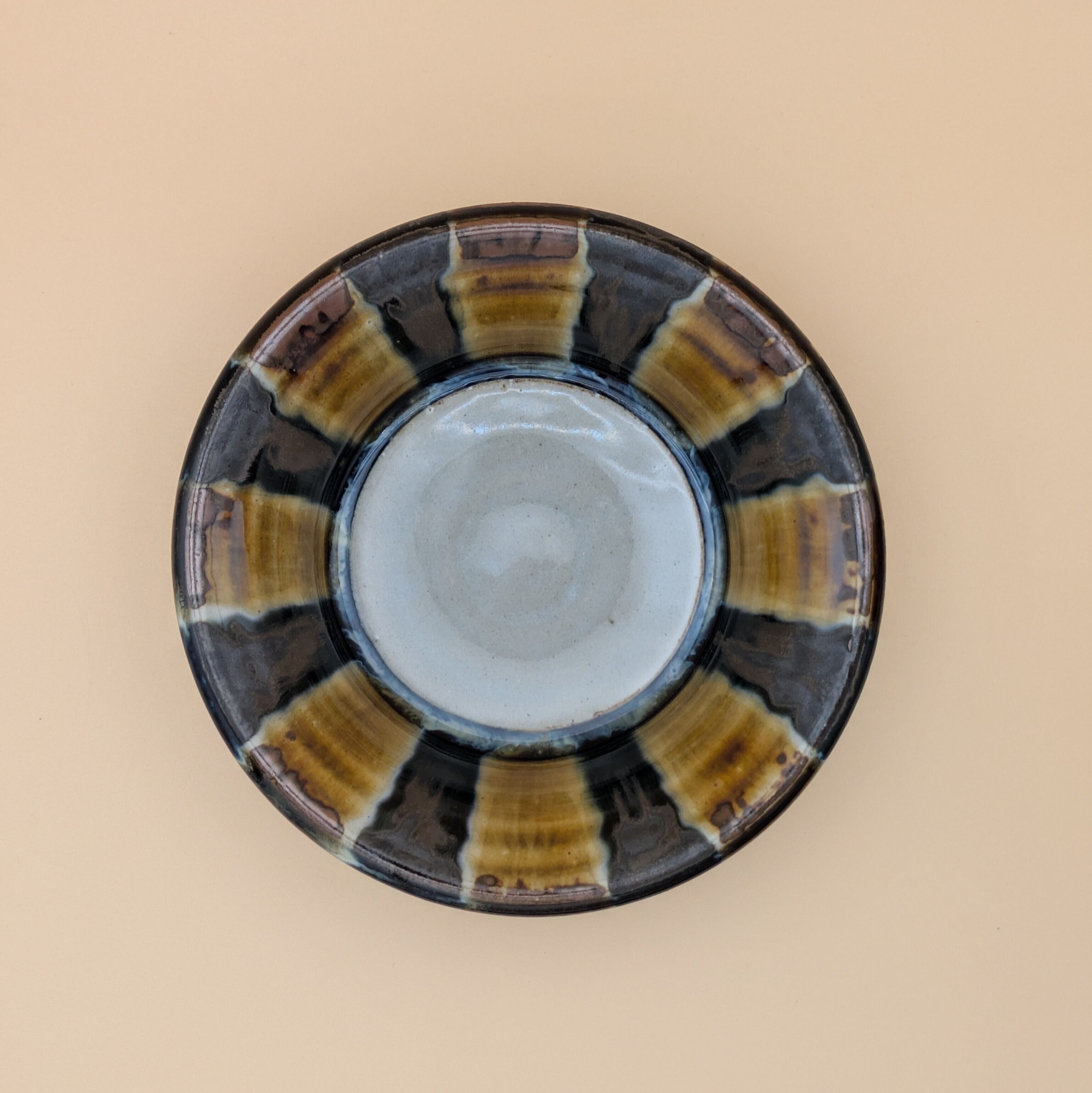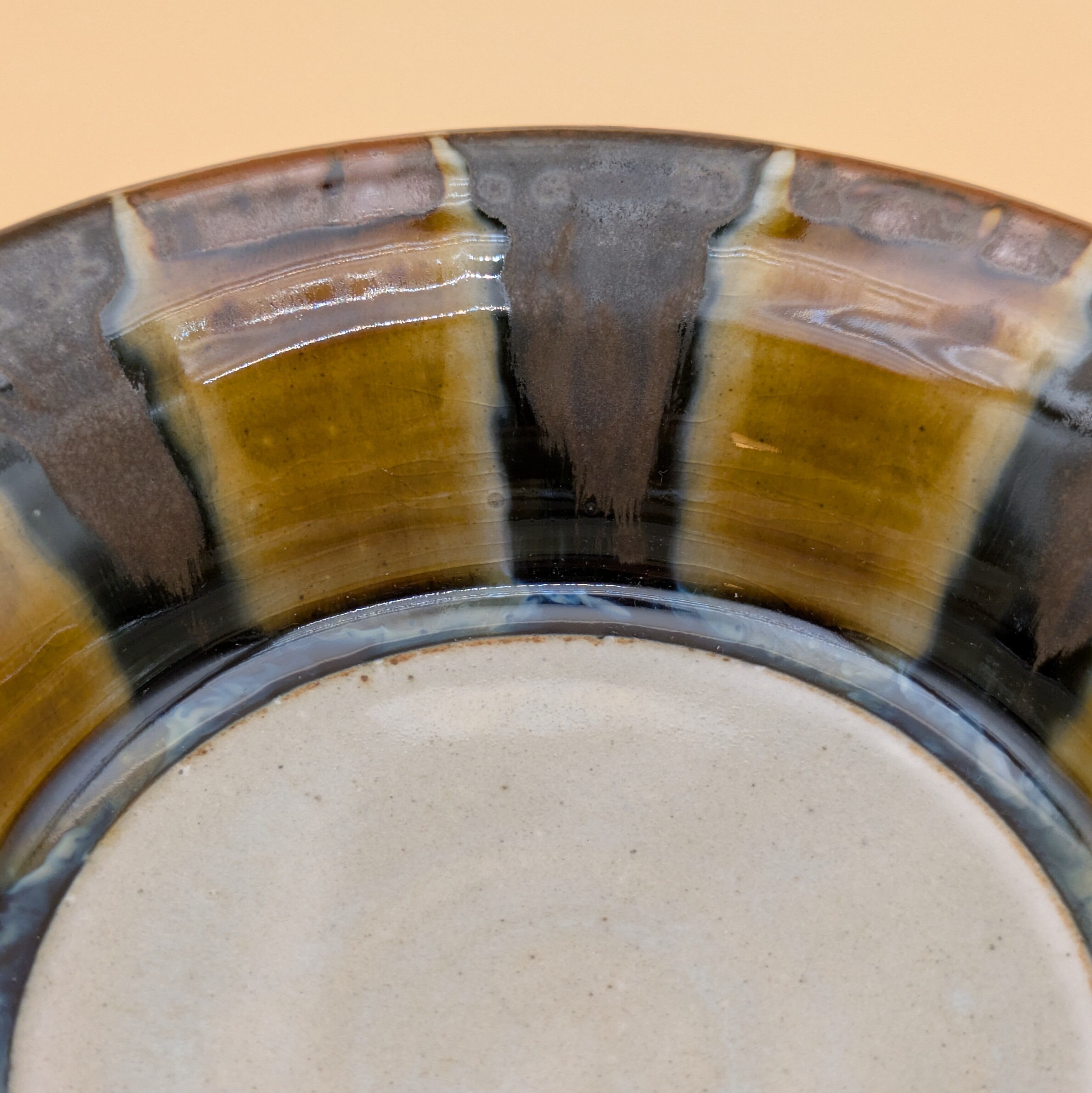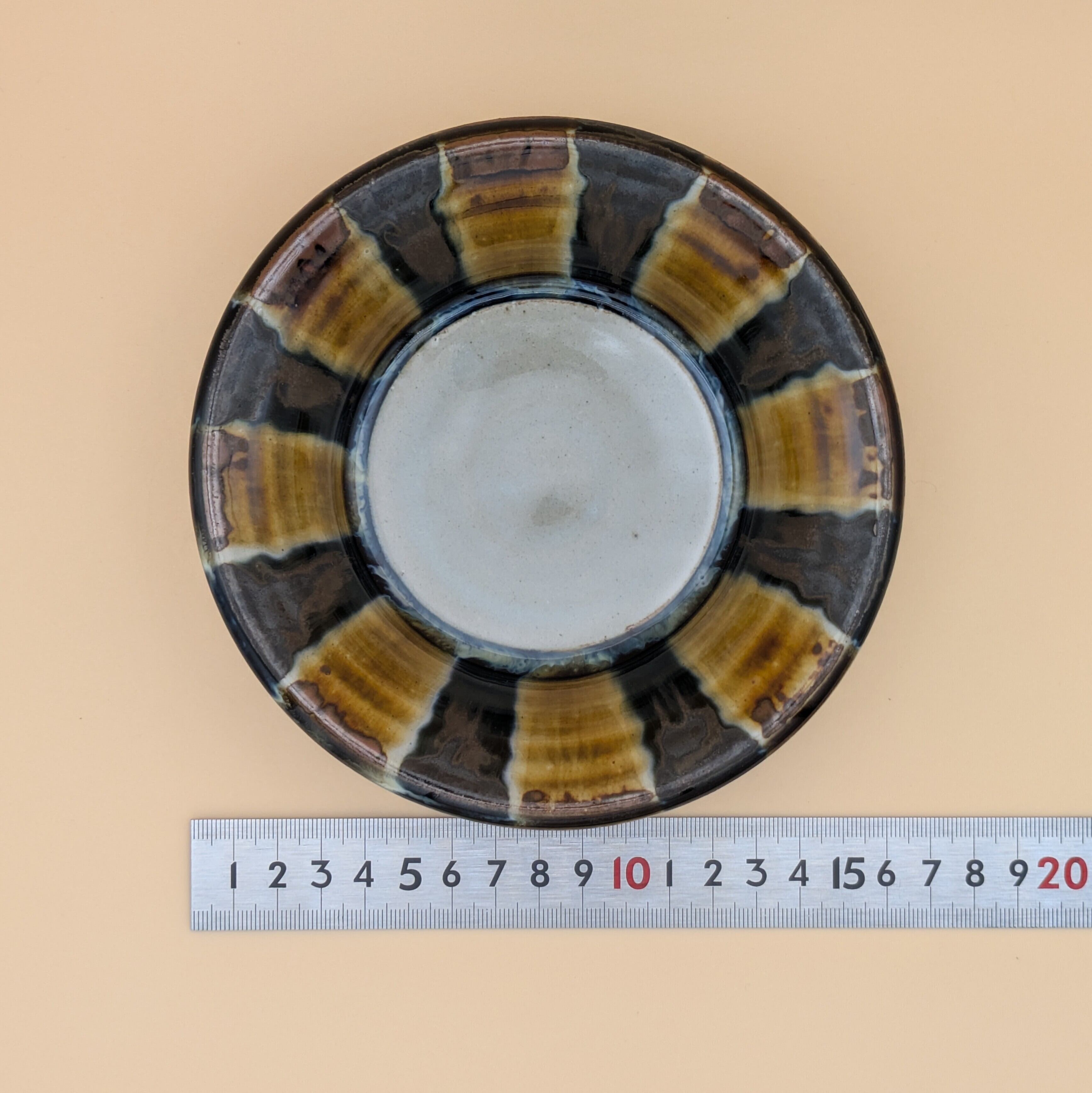 盛皿5寸 袖師窯(紺・黄釉) 直径15.2cm 高さ4.0cm 重量241g
