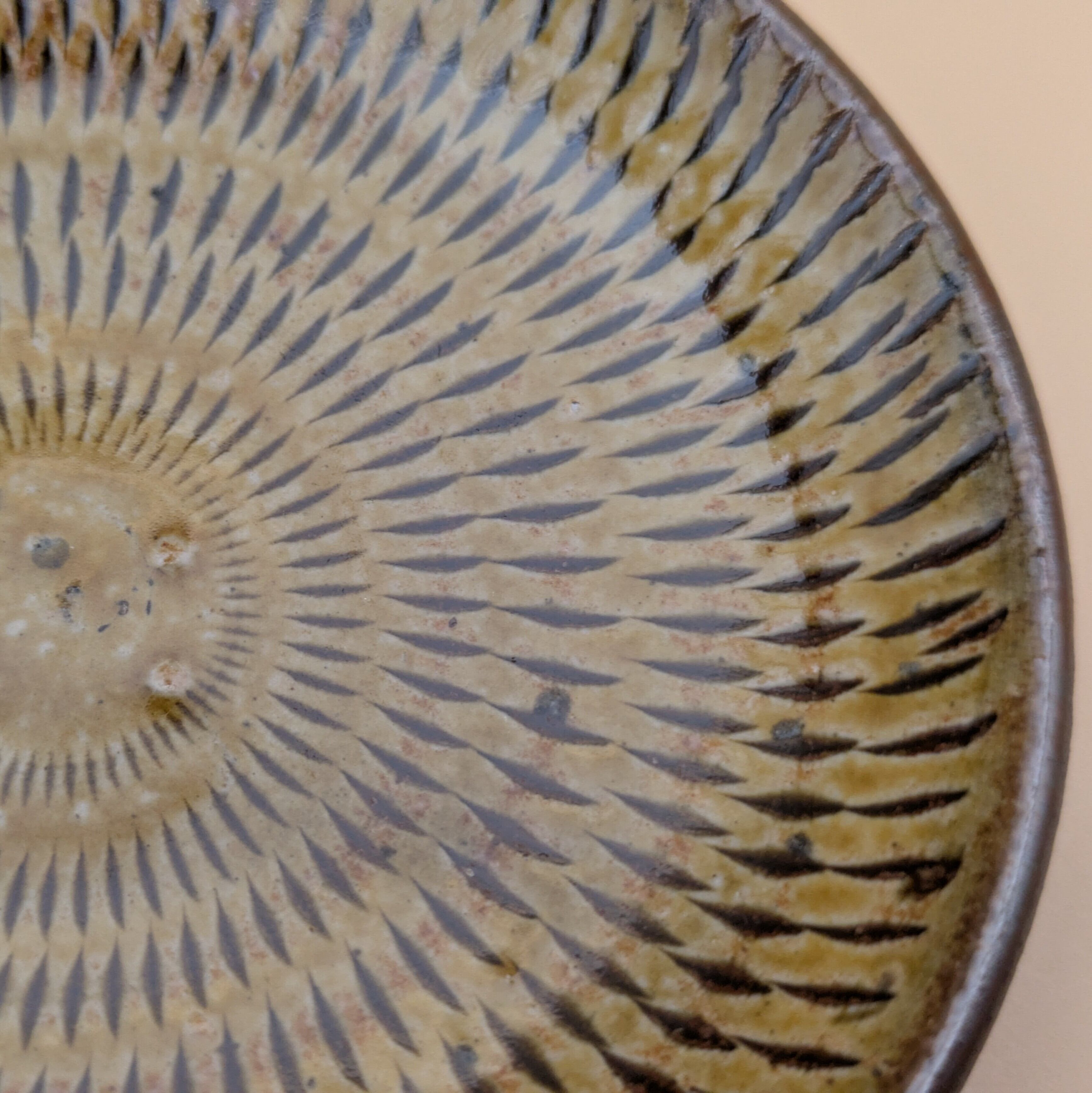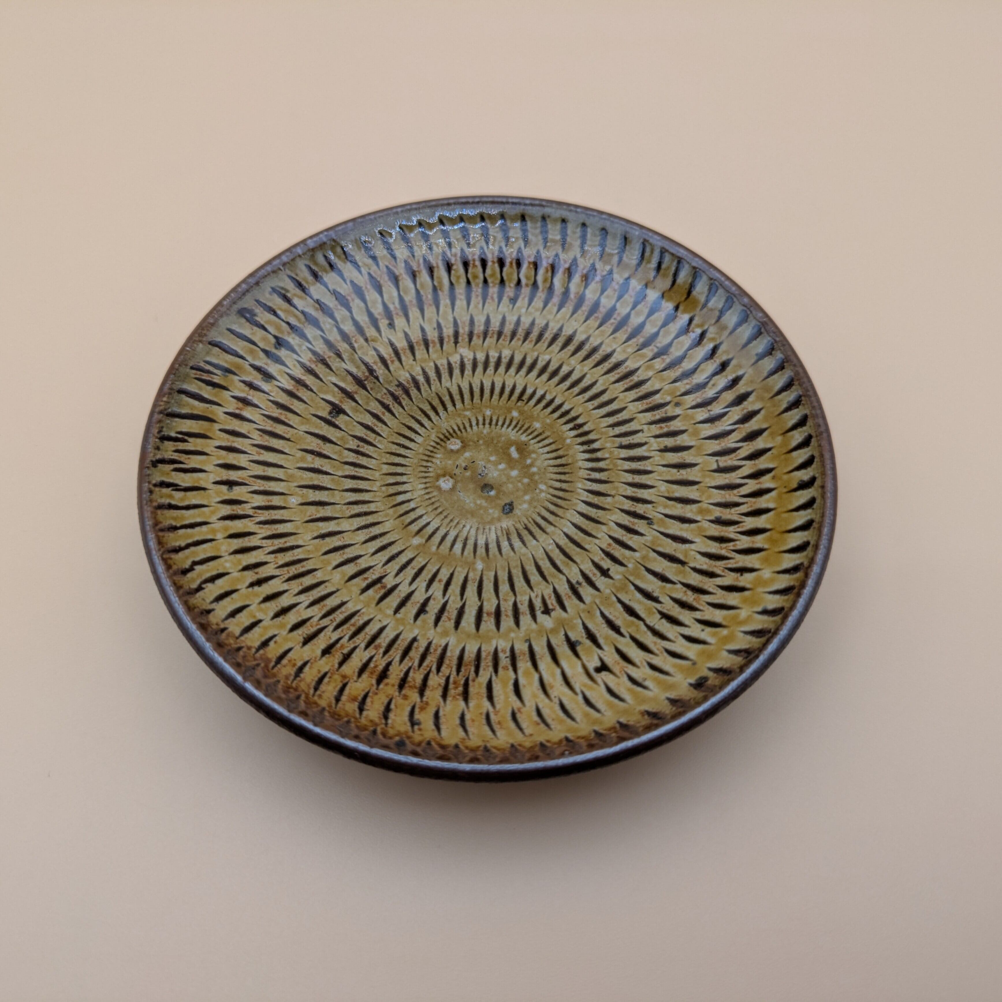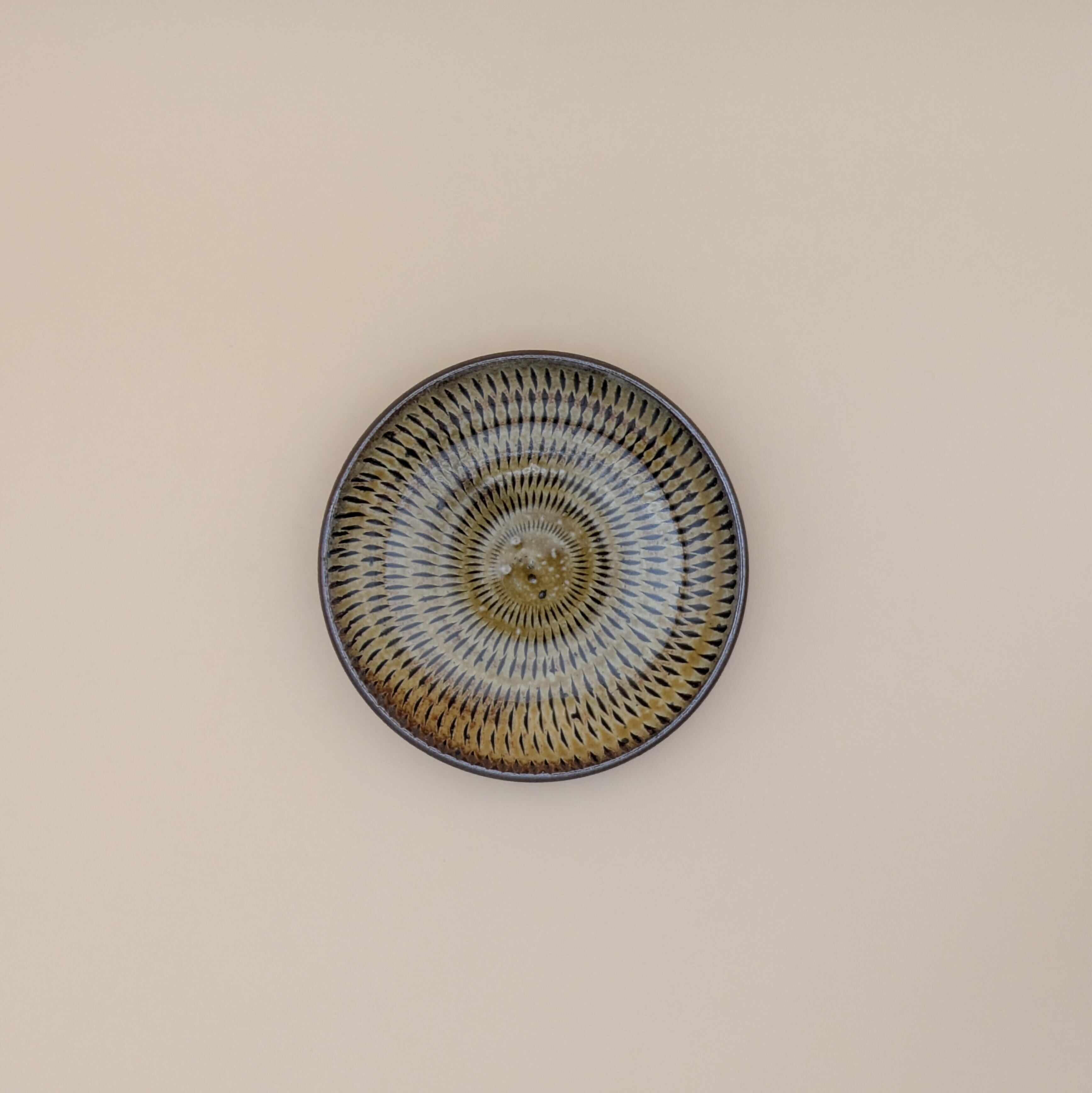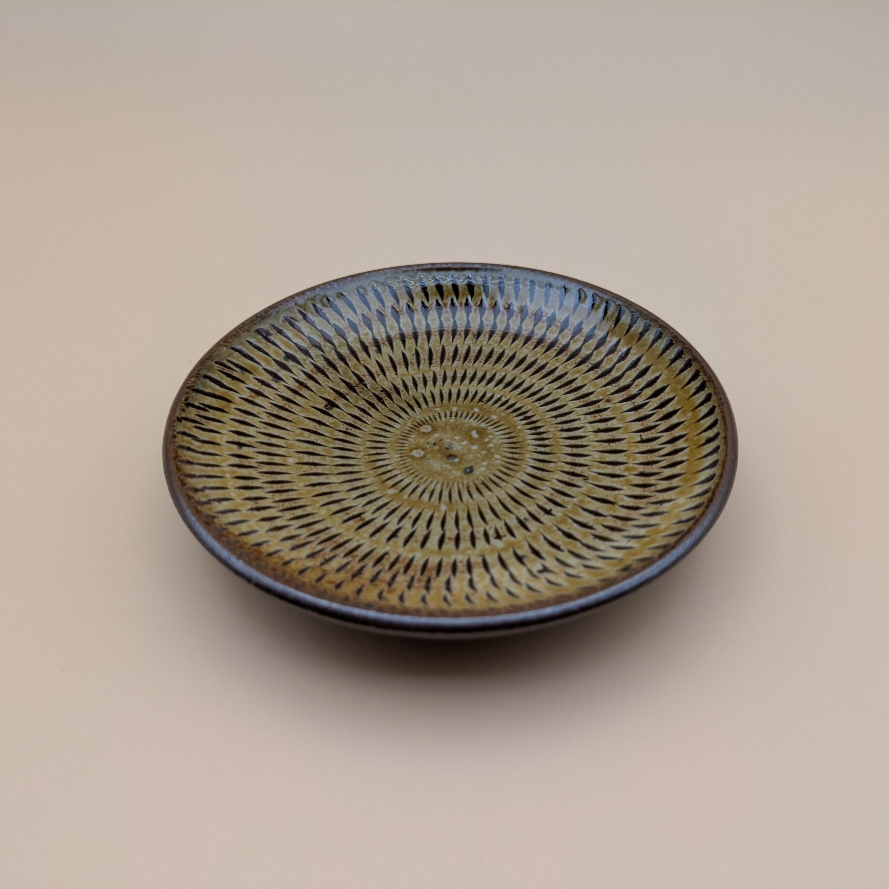 豆皿 小石原焼(黄+飛び鉋) 直径9.6cm 高さ1.9cm 重量78g