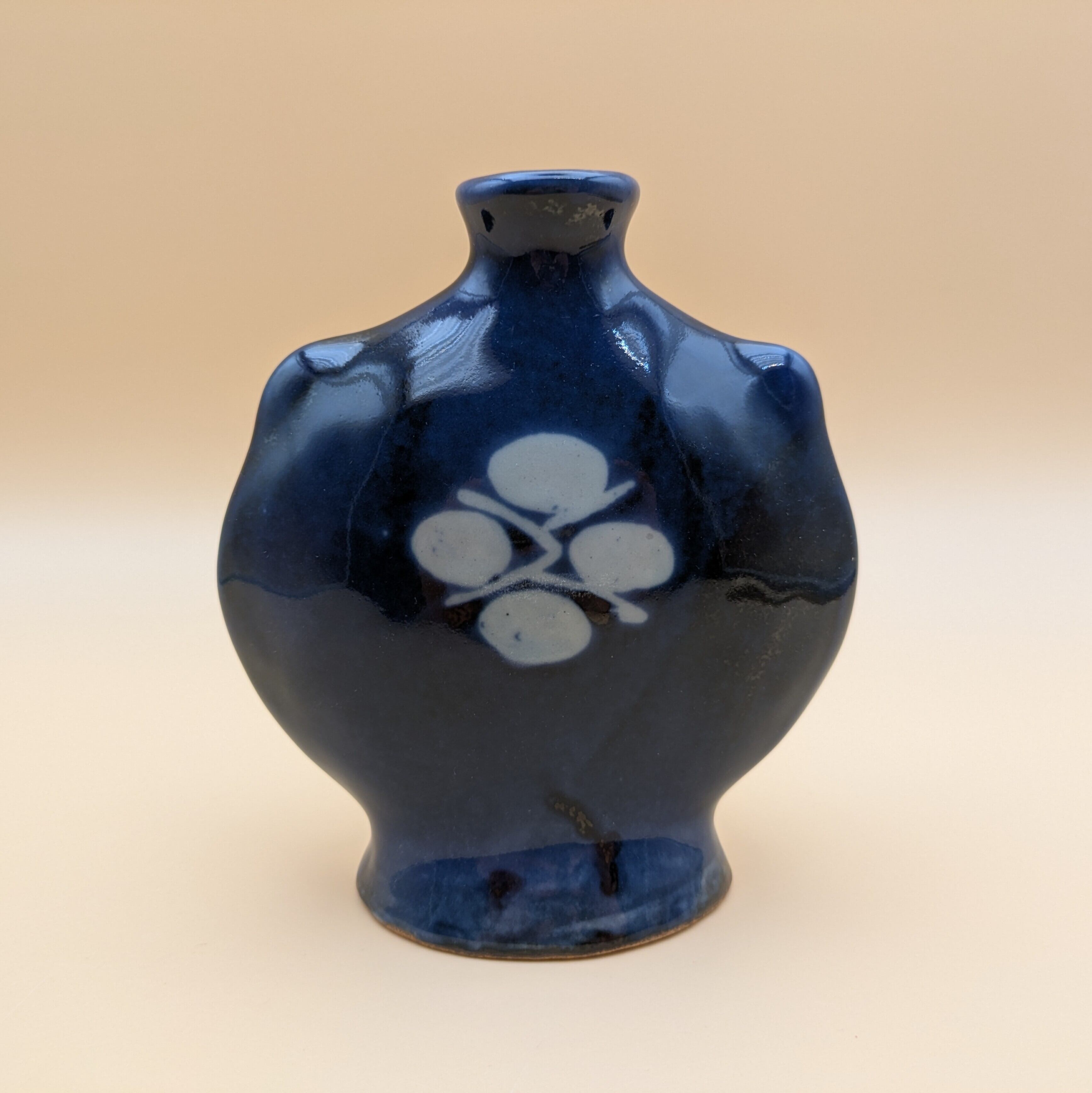 一輪挿し 袖師窯(青) 幅13cm 高さ14cm 重量350g