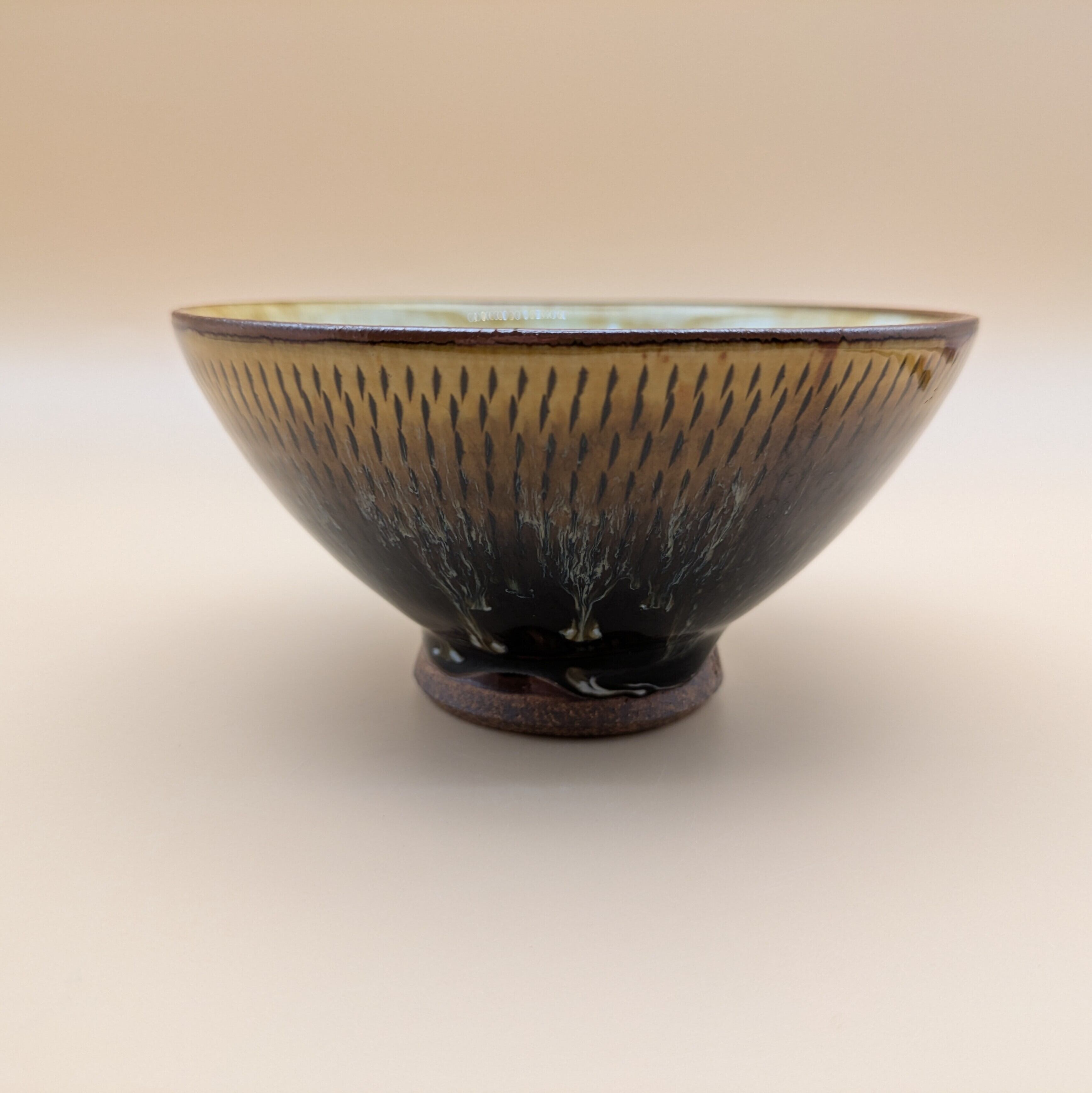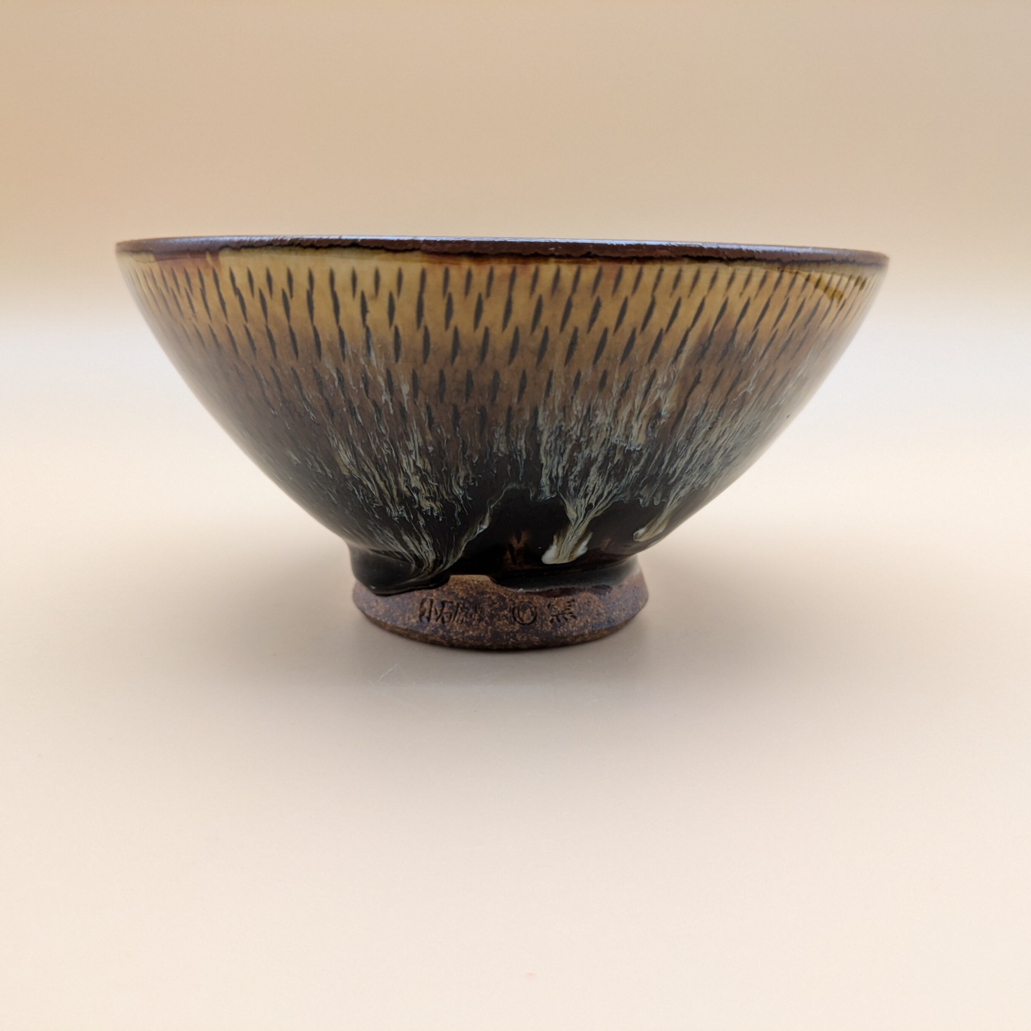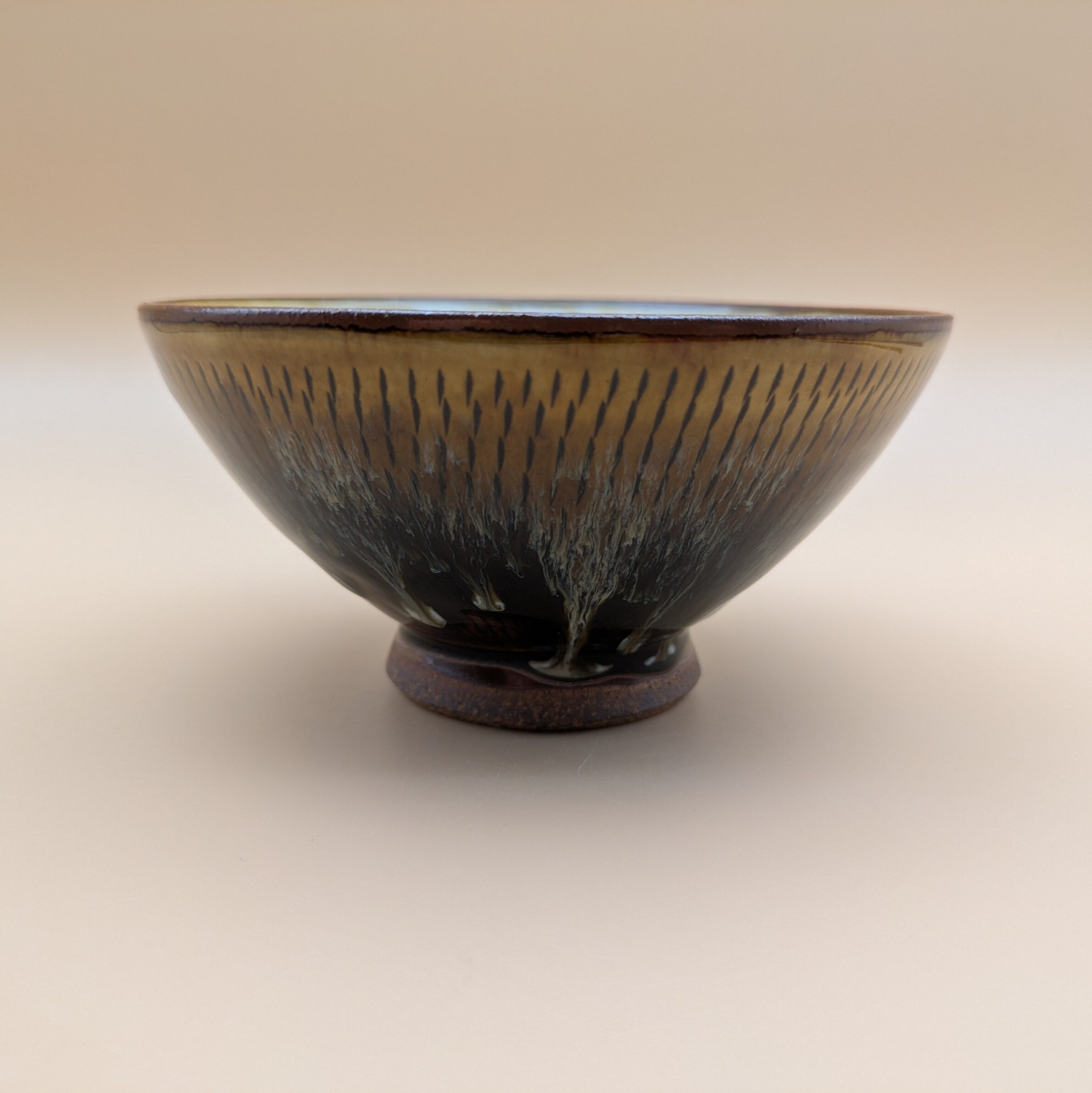 茶碗 小石原焼(飴釉 流し釉 飛び鉋01) 直径12.8cm 高さ6.5cm 重量214g