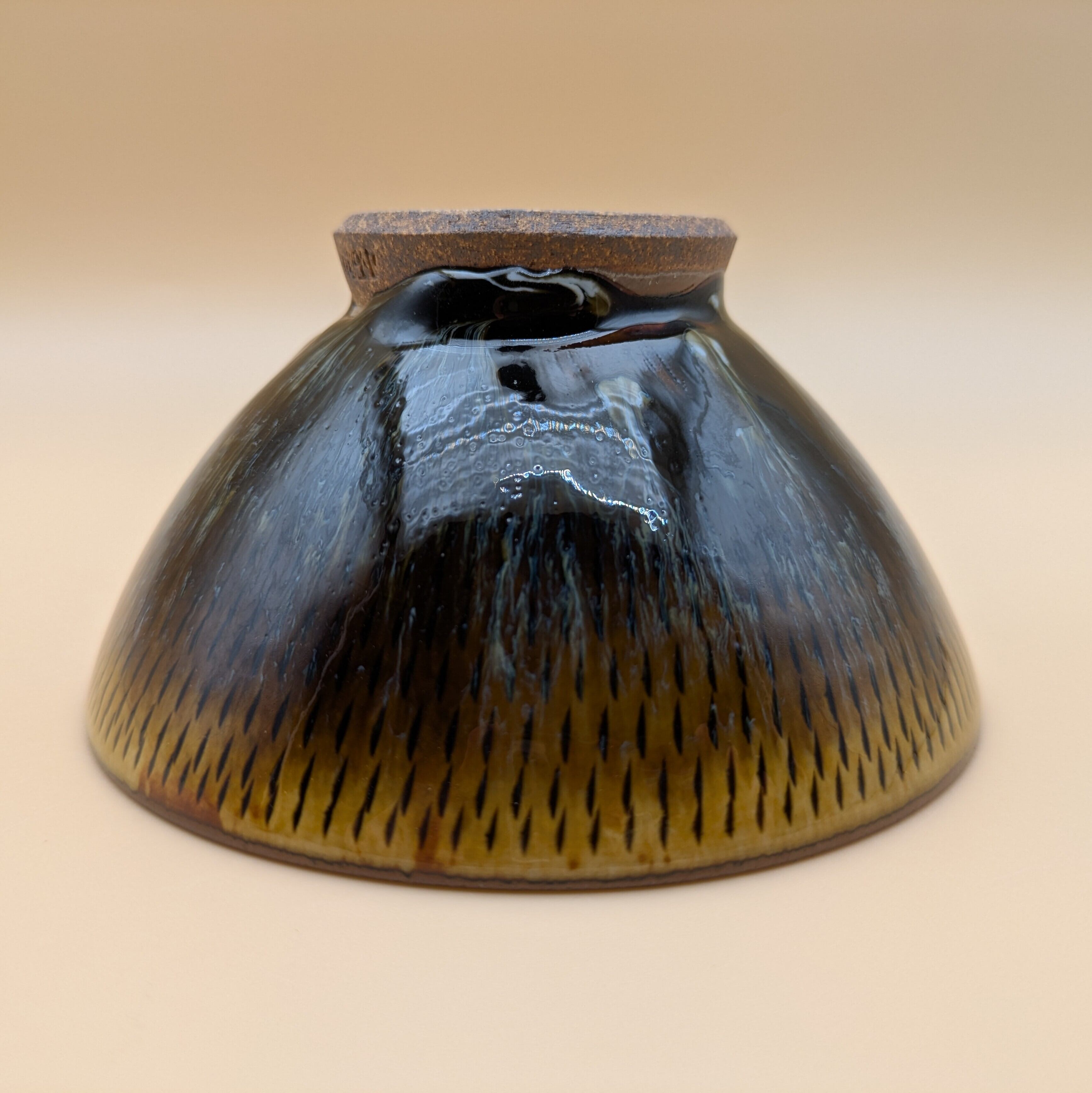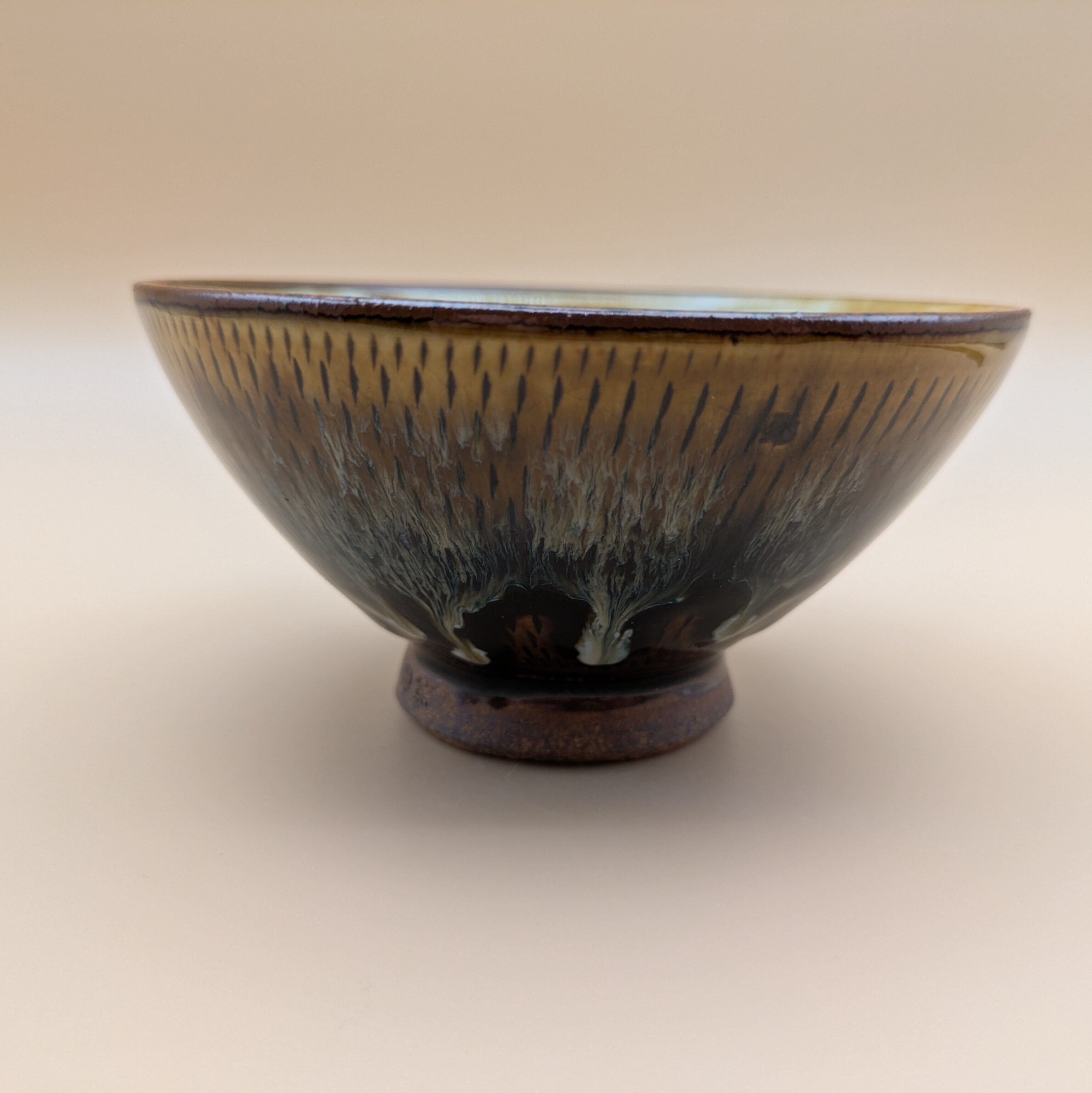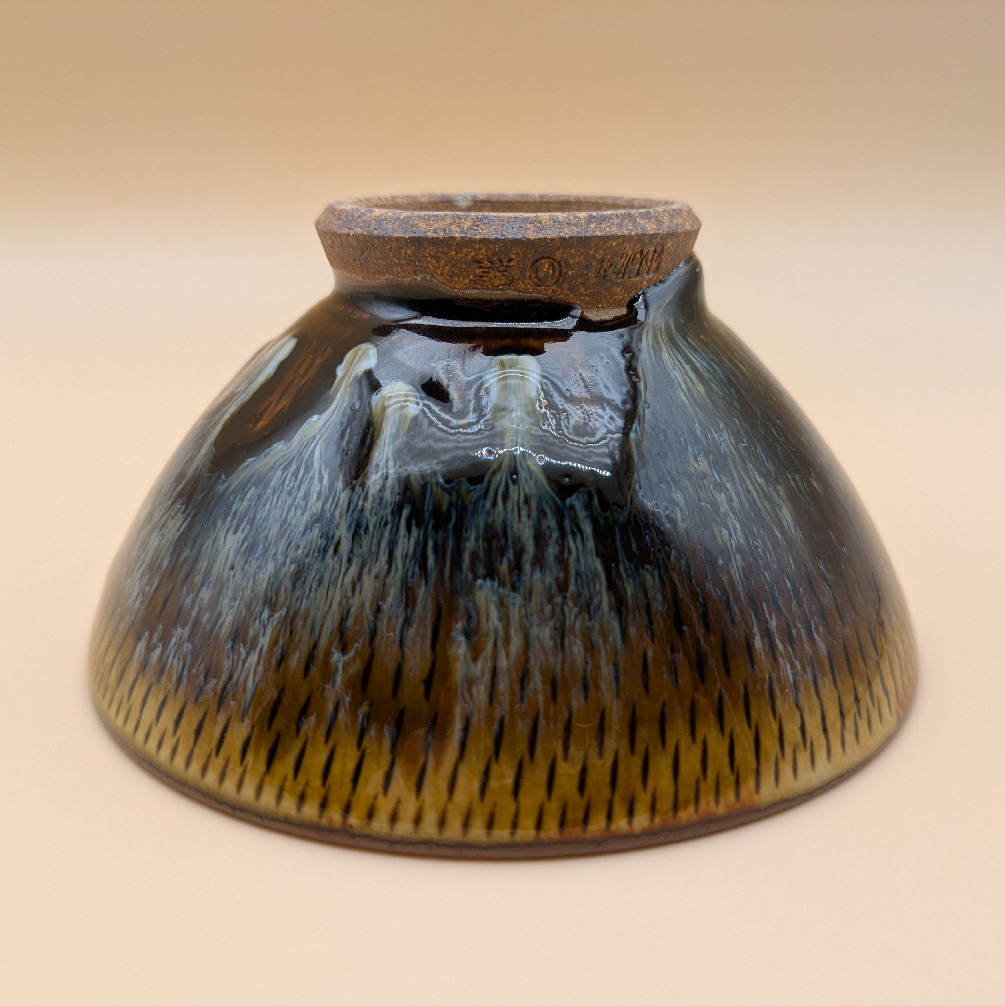 茶碗 小石原焼(飴釉 流し釉 飛び鉋01) 直径12.8cm 高さ6.5cm 重量214g