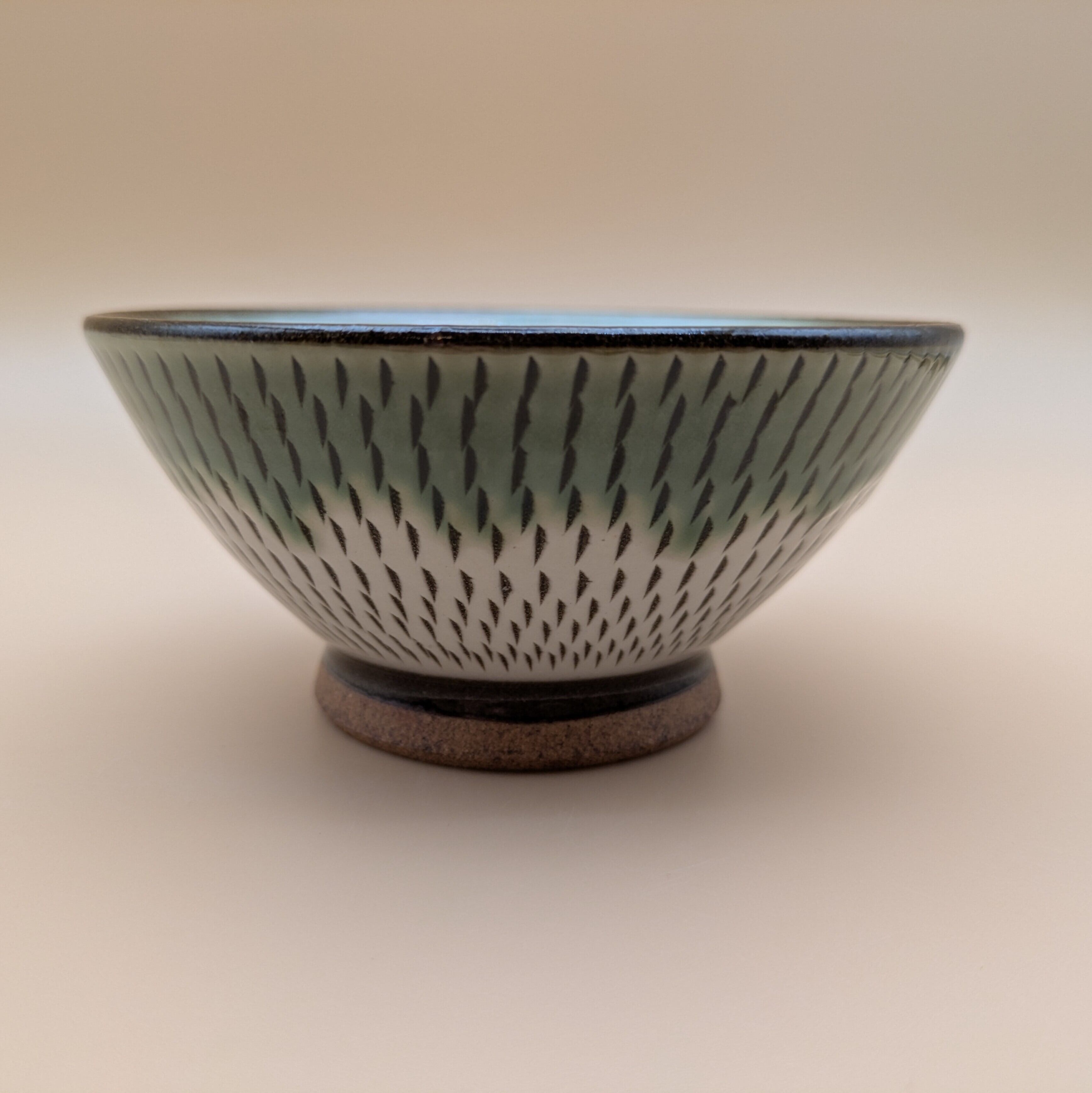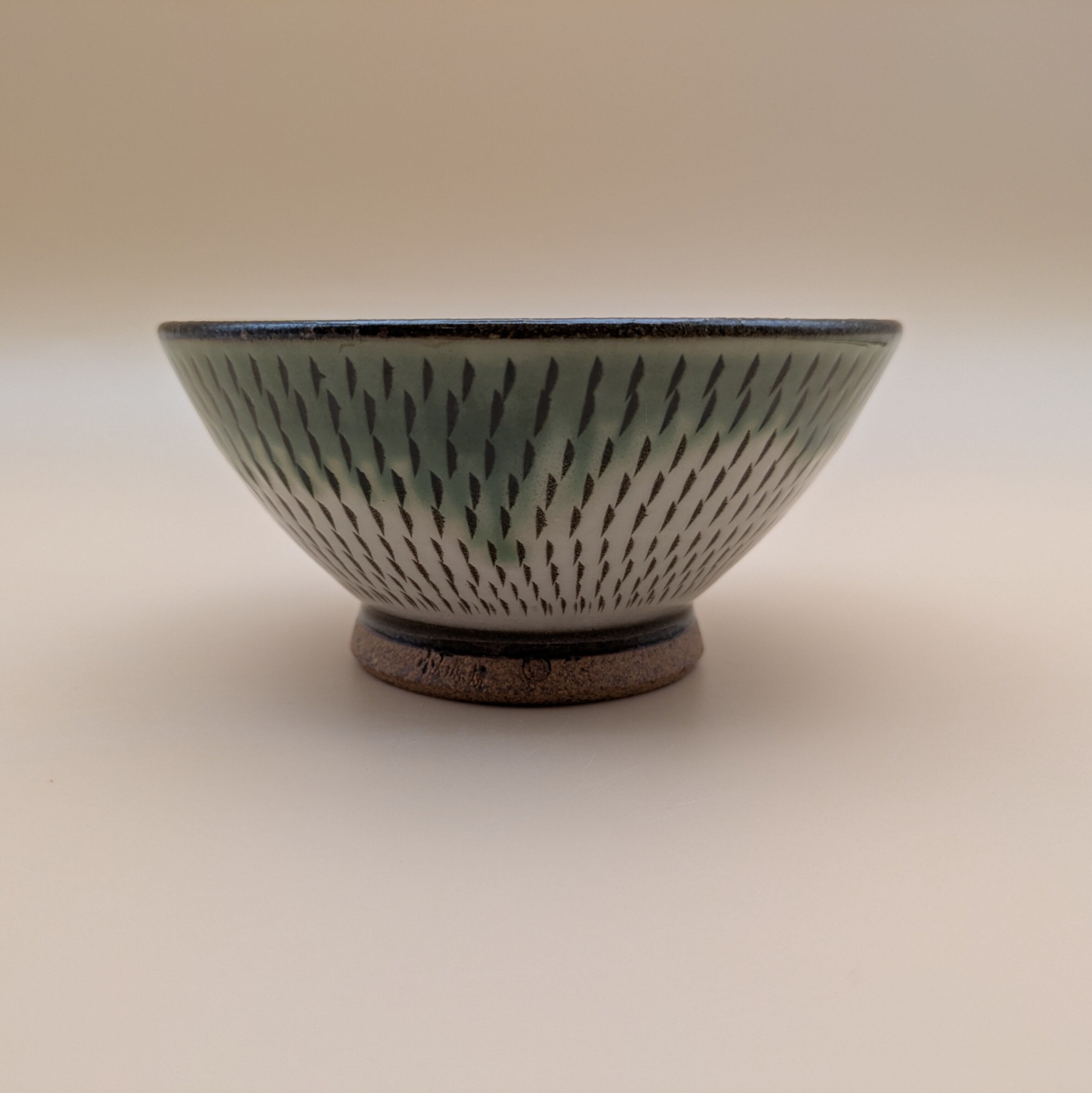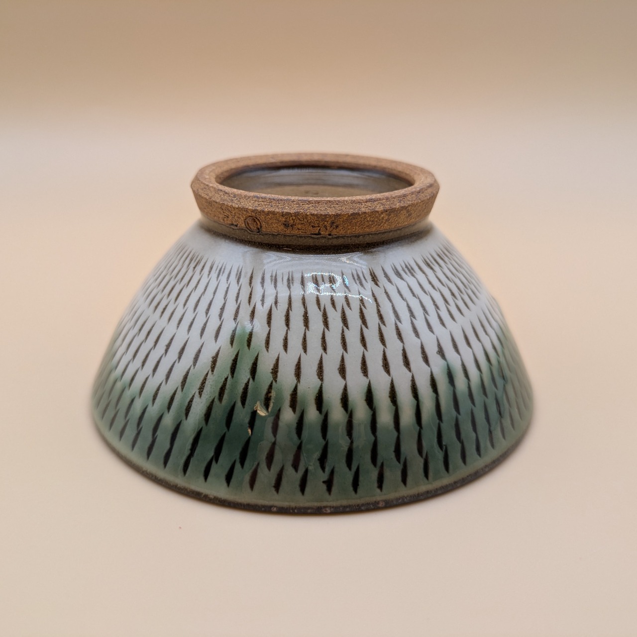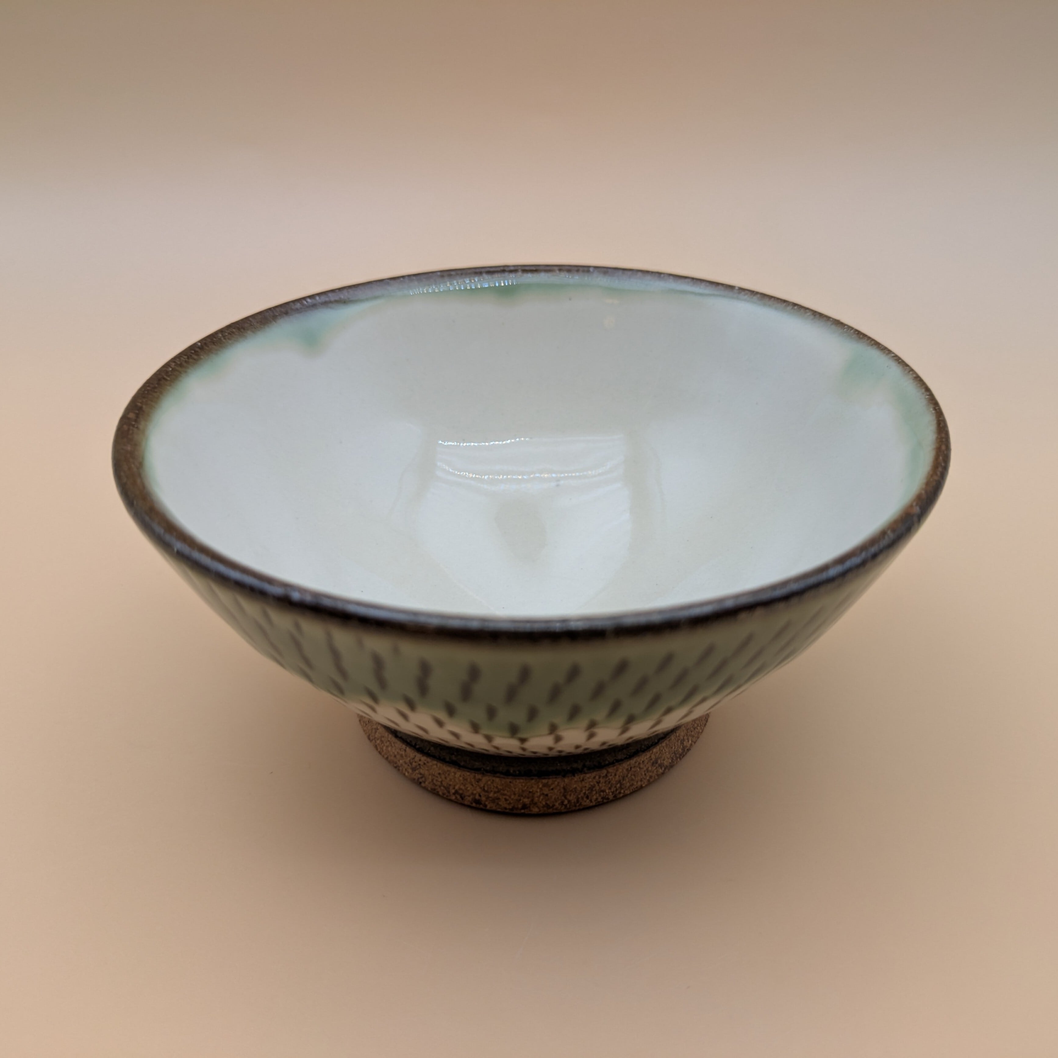 茶碗 小石原焼(縁緑釉 白 飛び鉋) 直径11.6cm 高さ5.5cm 重量182g