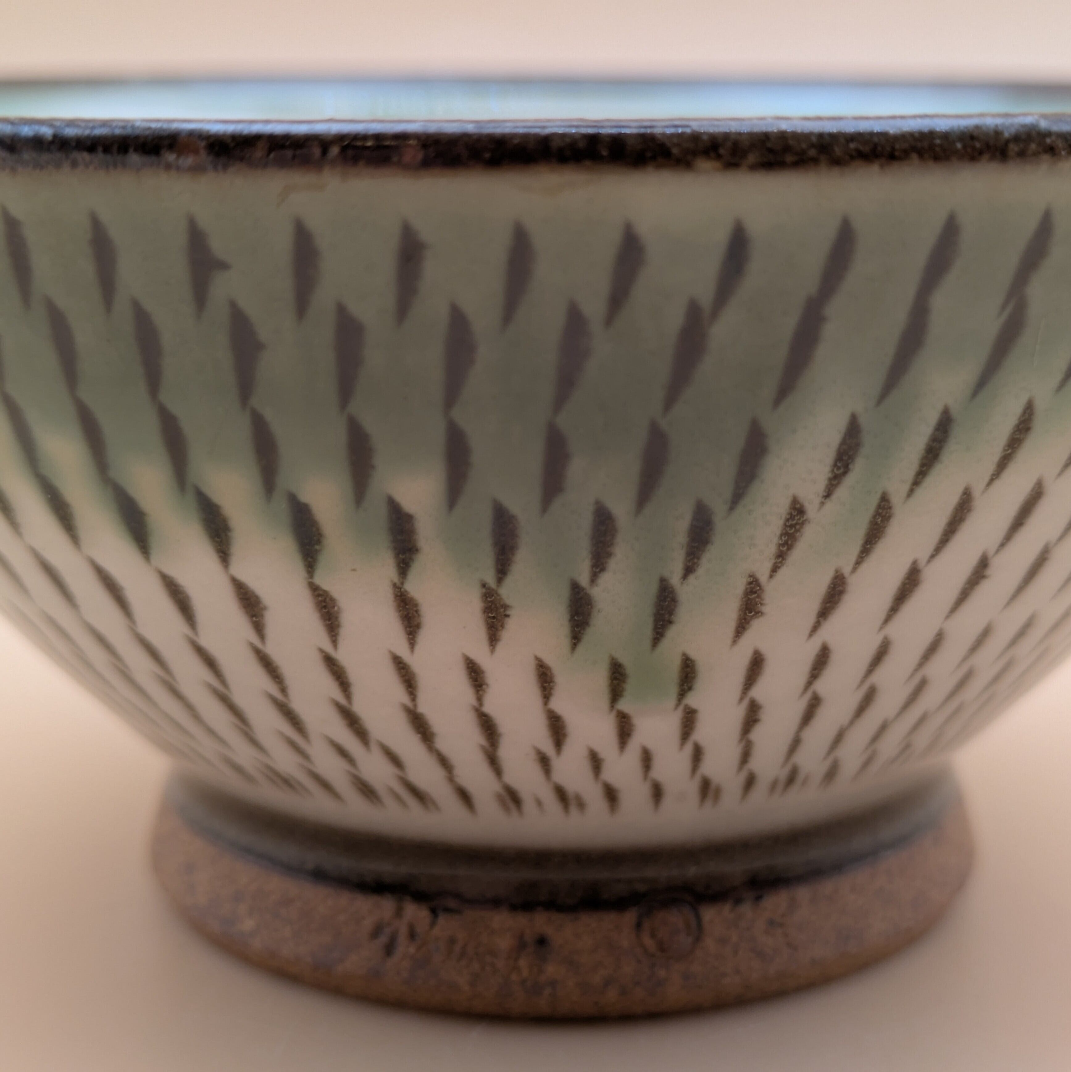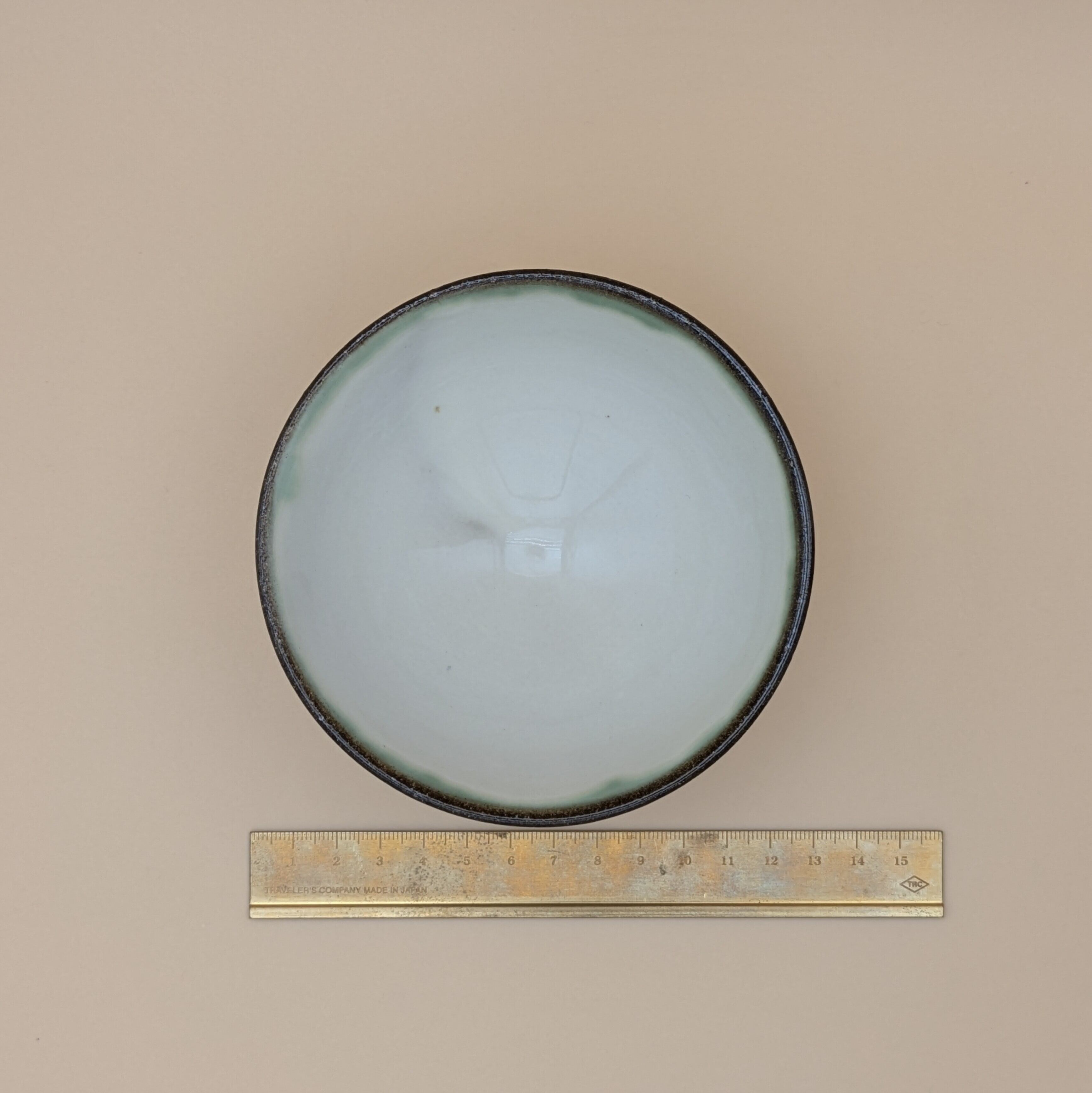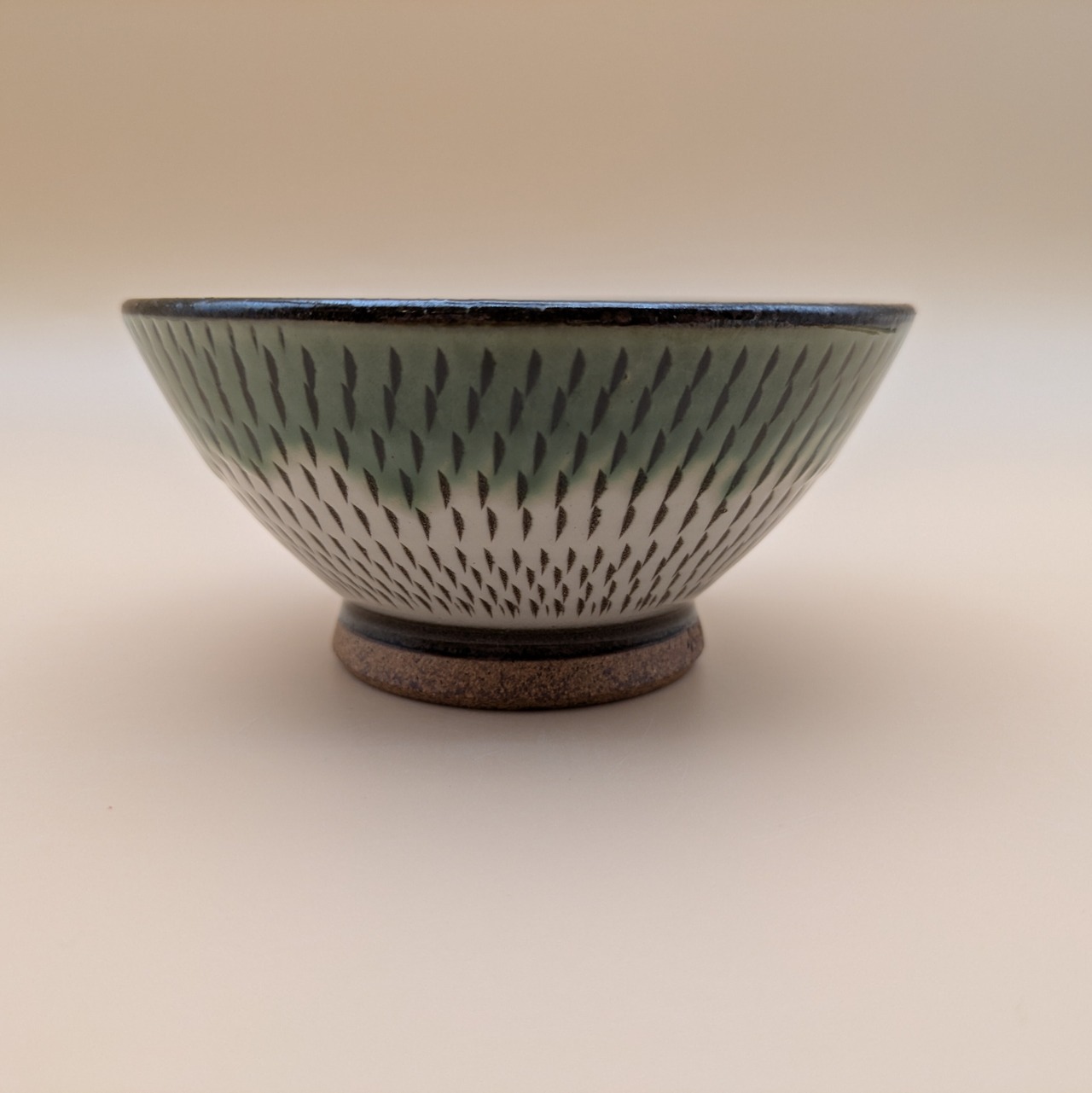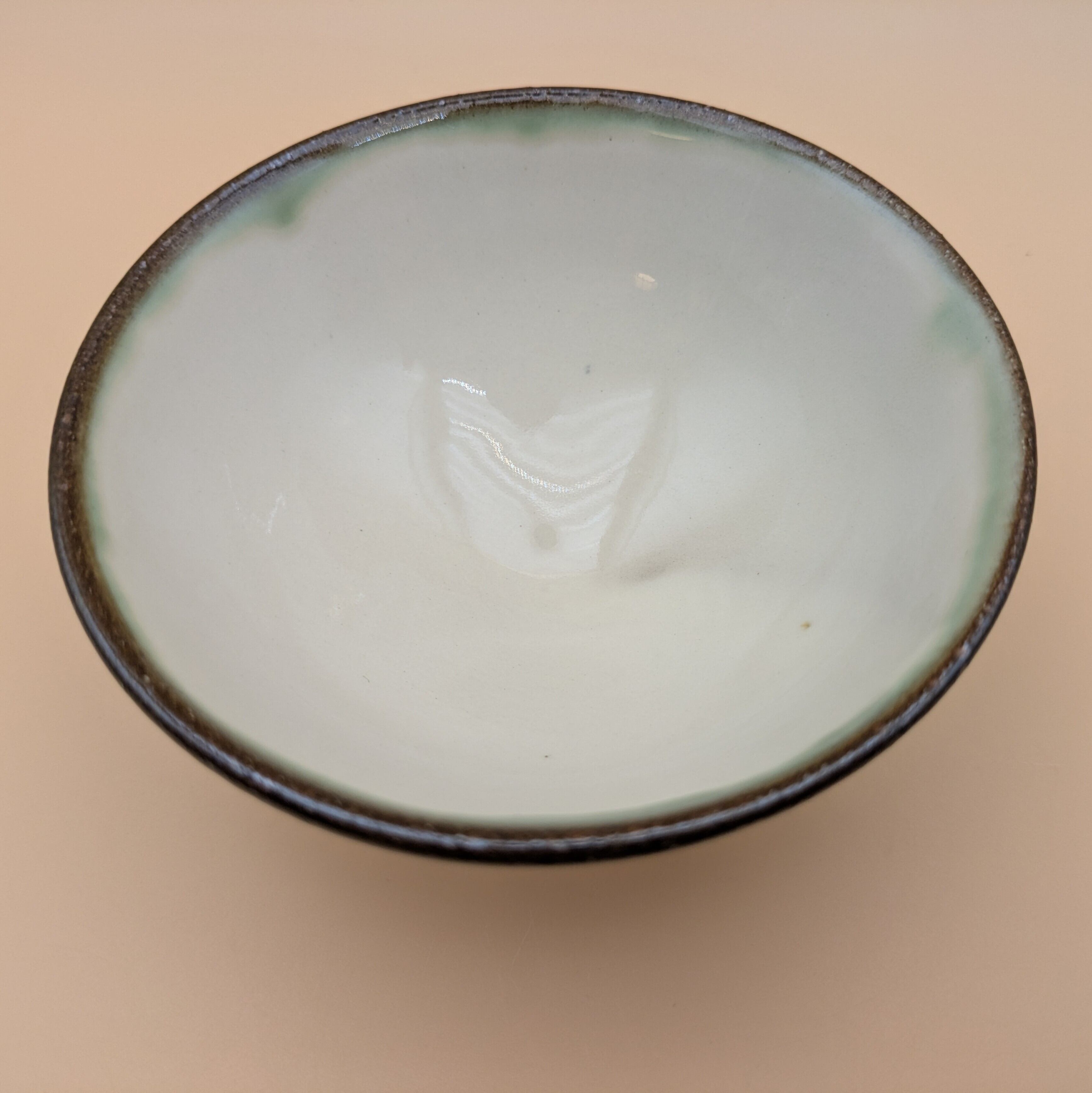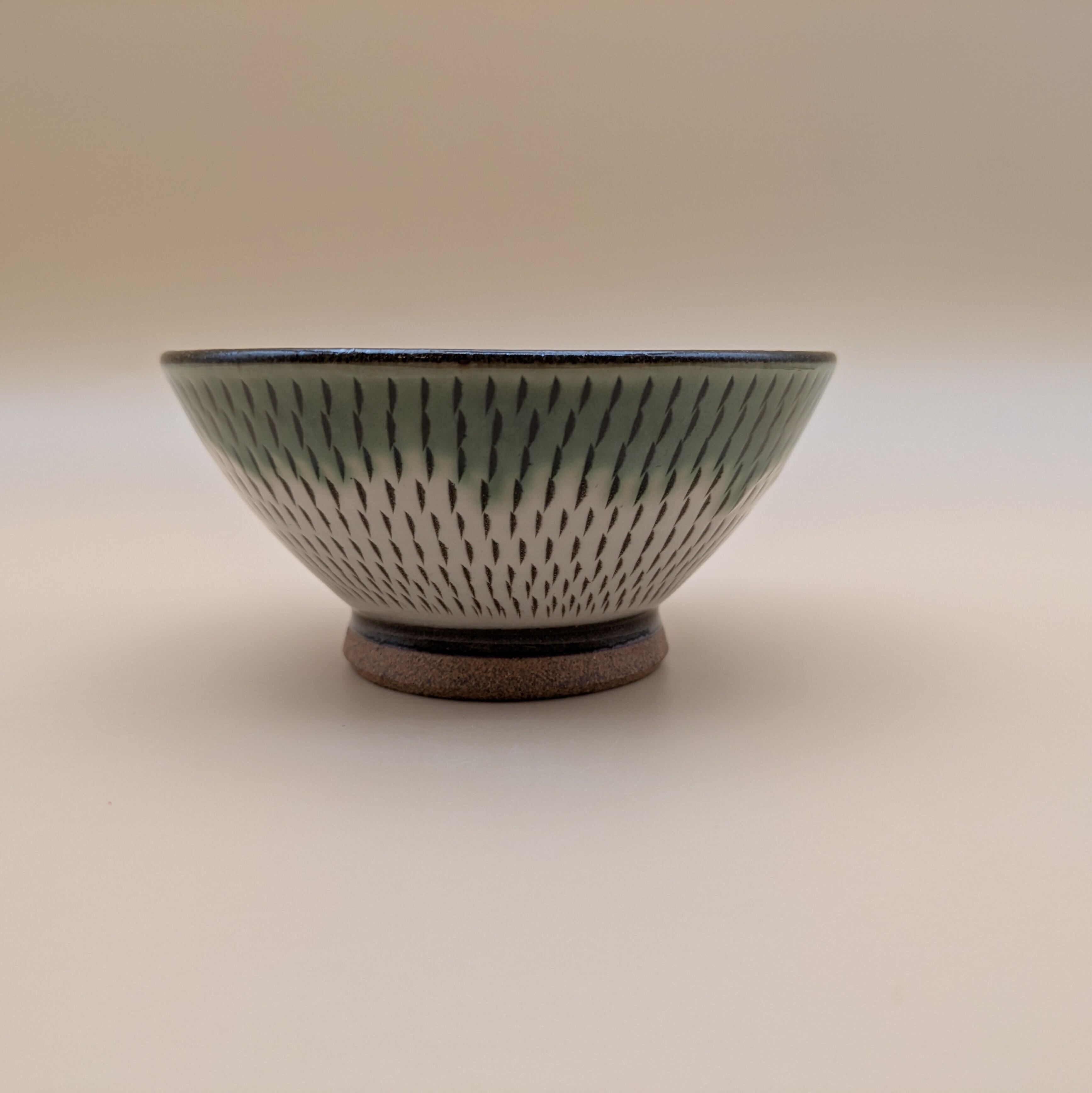 茶碗 小石原焼(縁緑釉 白 飛び鉋) 直径11.6cm 高さ5.5cm 重量182g