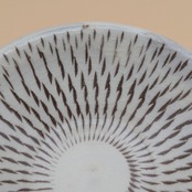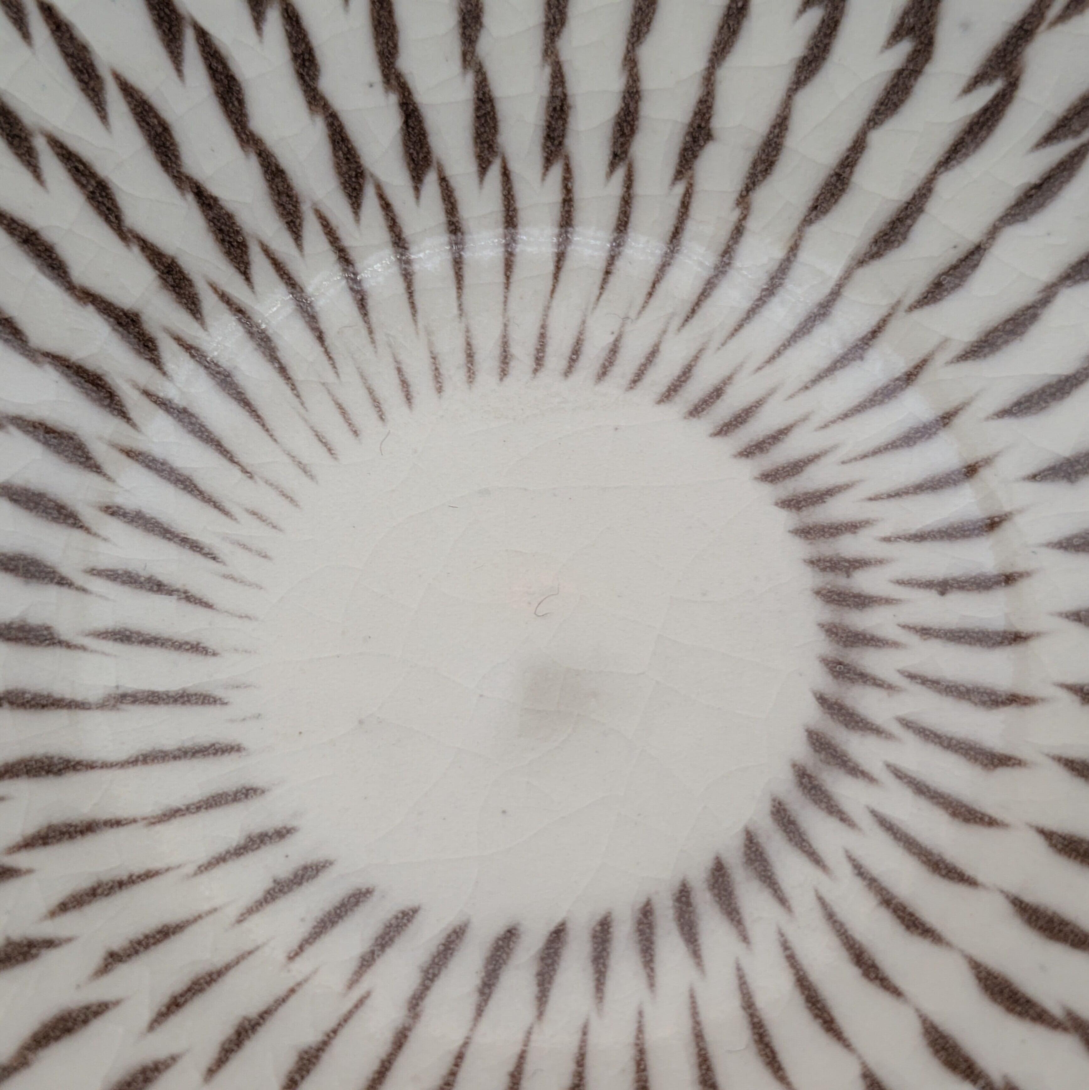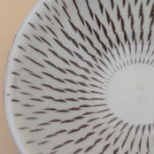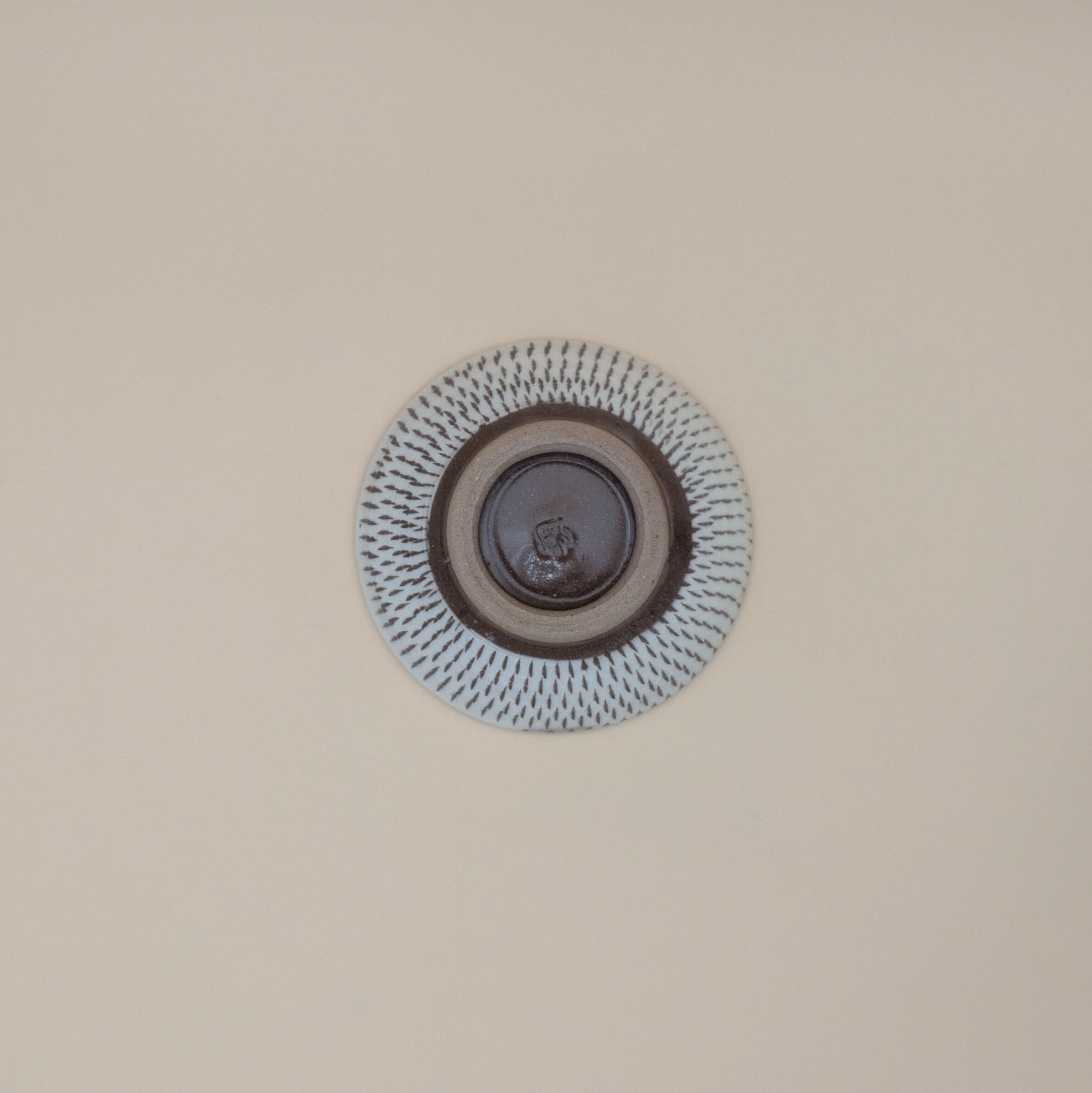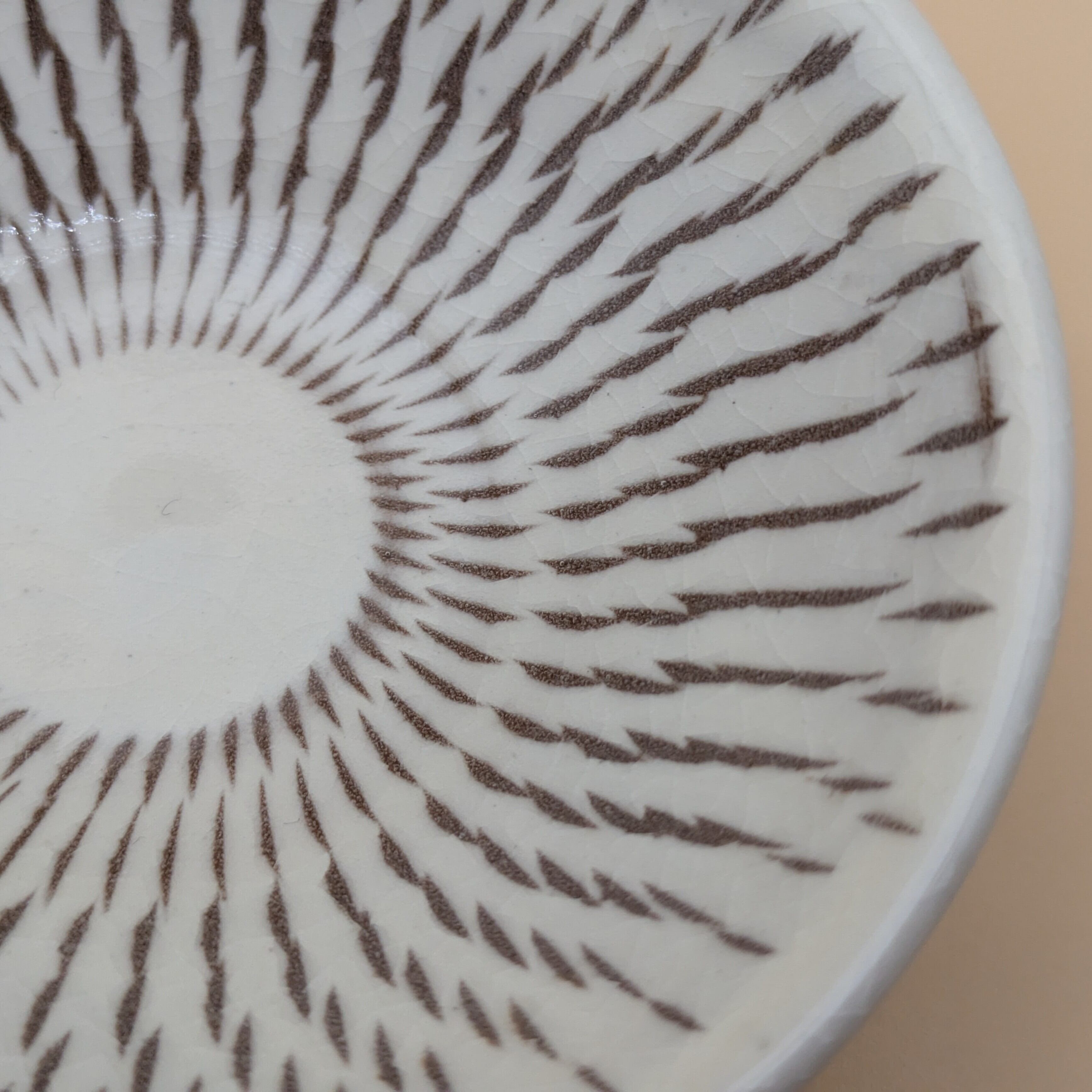 日本の伝統工芸品である小石原焼の豆皿で、飛び鉋の技法を使い、繊細な模様を表現しています。