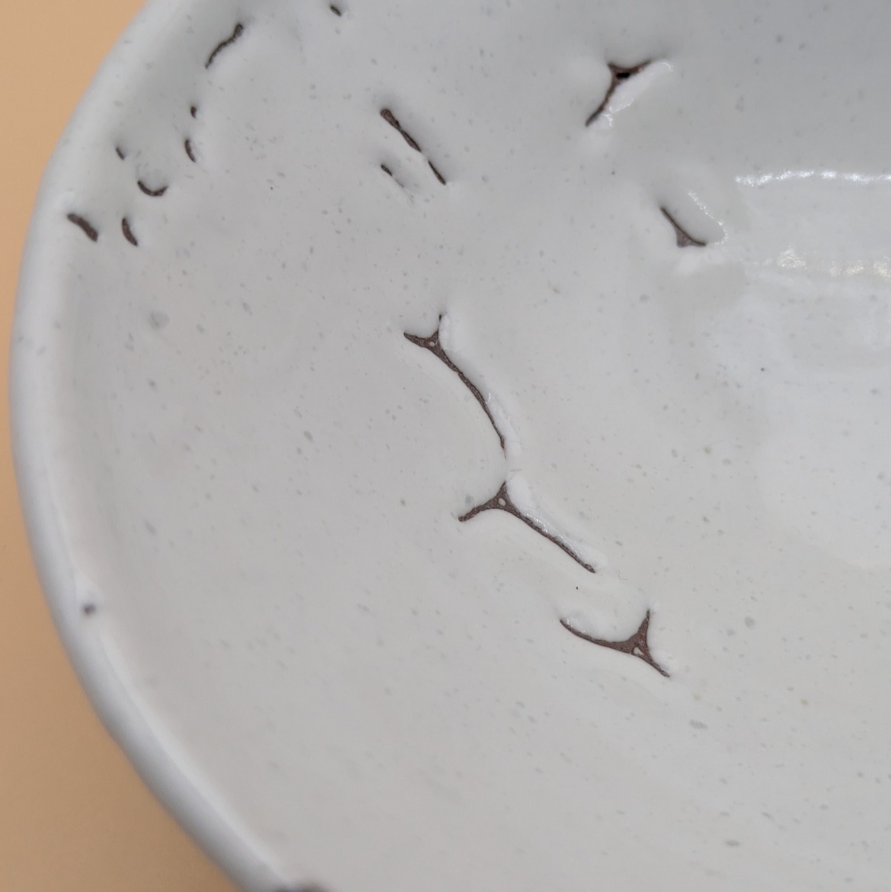 白い地に大胆に描かれた鬼萩の紋様が、シンプルでありながら存在感のある一品です。伝統的な技法を用いた紋様は、一つ一つ微妙に異なる風合いを楽しむことができます。