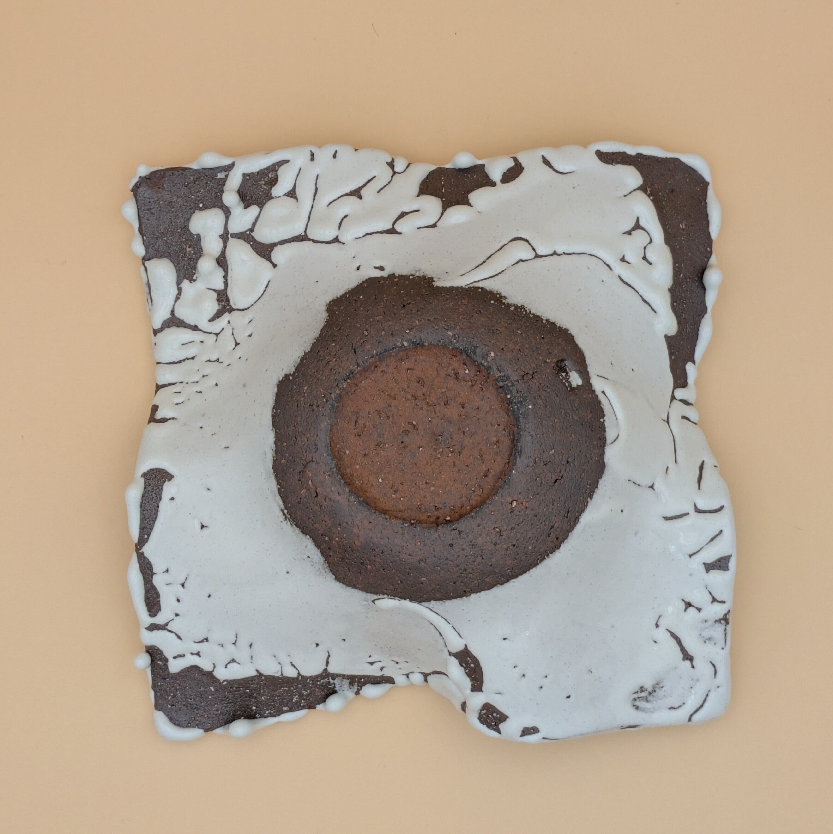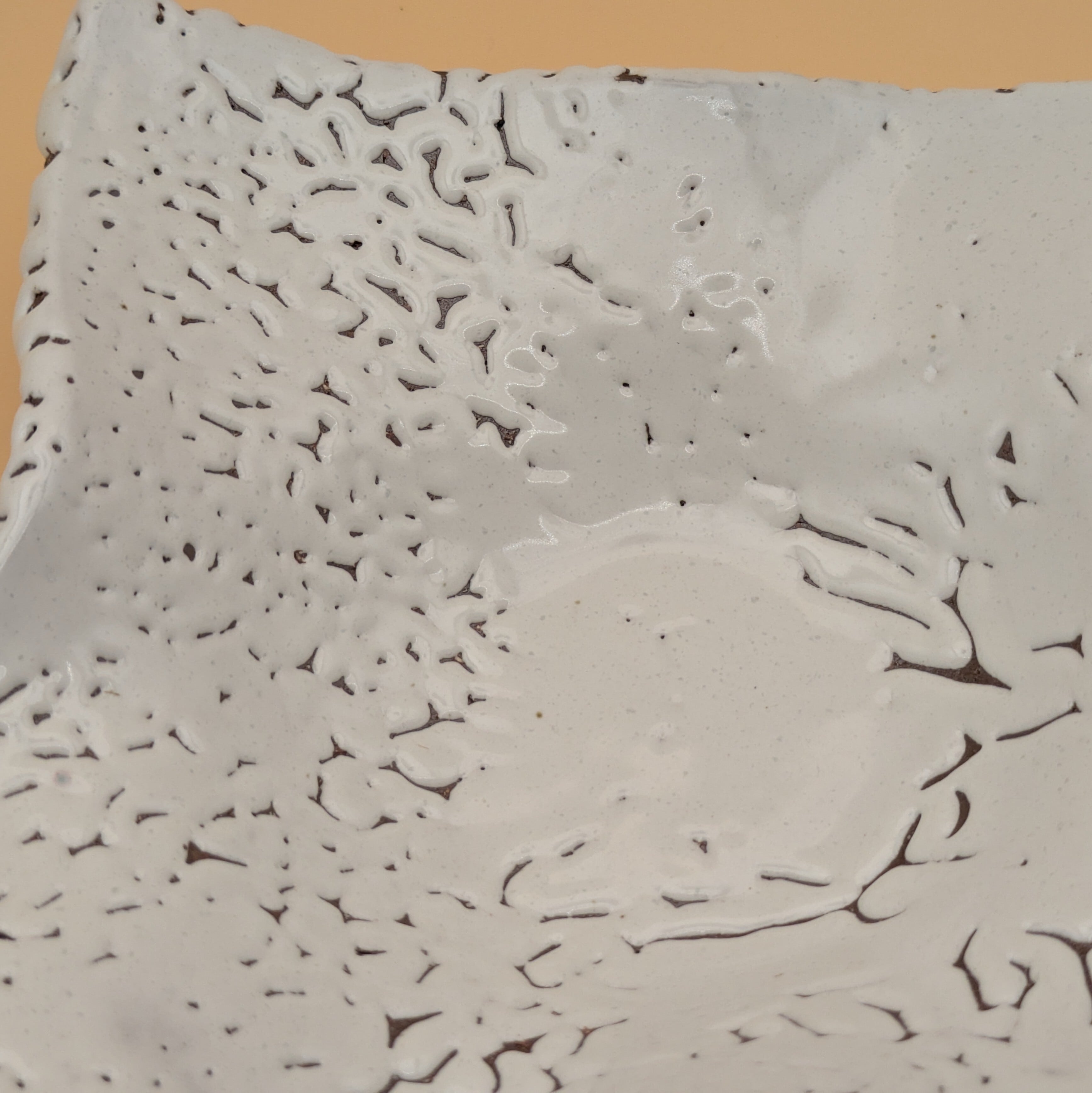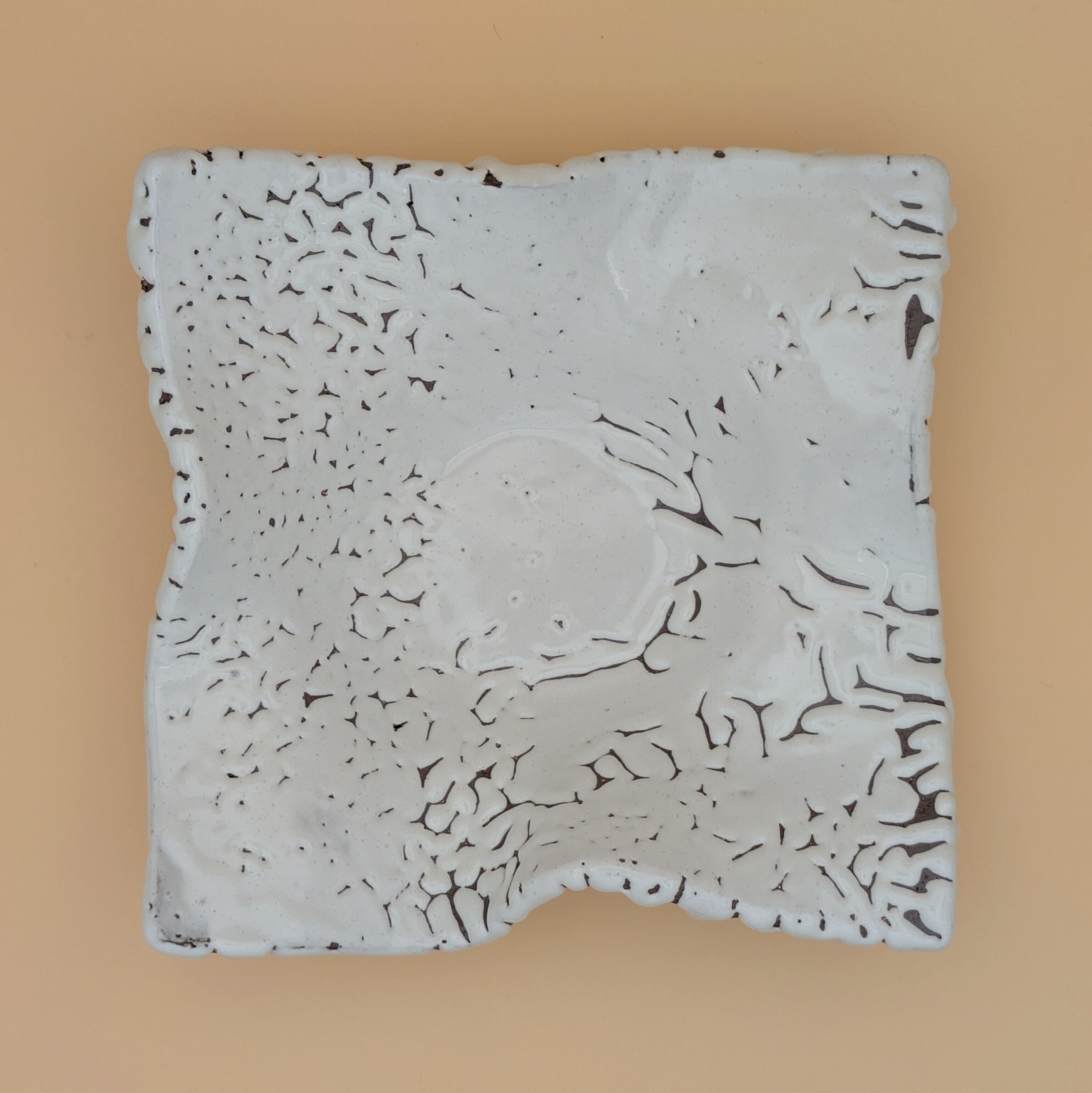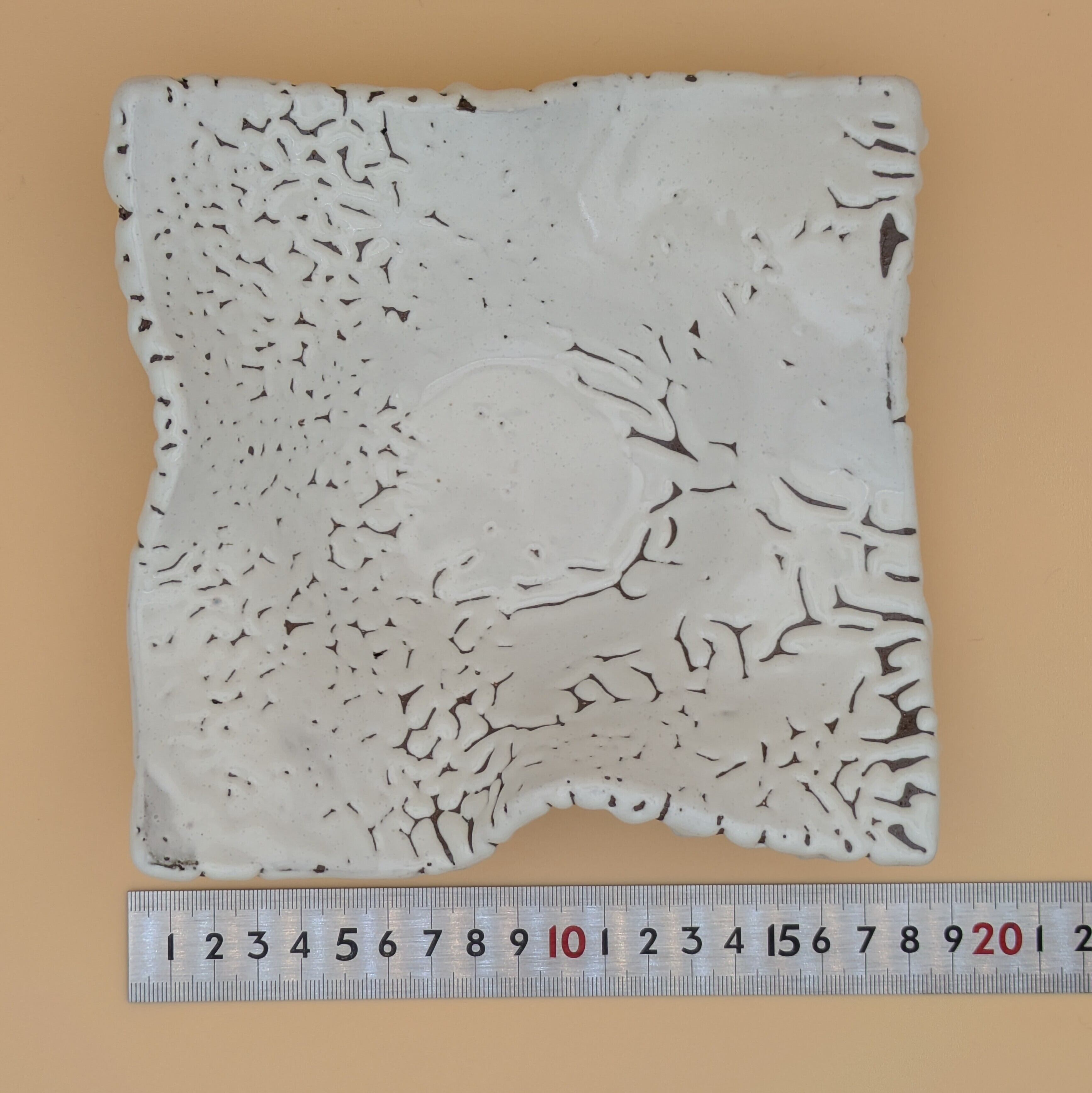 盛皿5.5寸 萩焼(変形四角皿 白 鬼萩01) 一辺17cm 高さ5cm 重量508g
