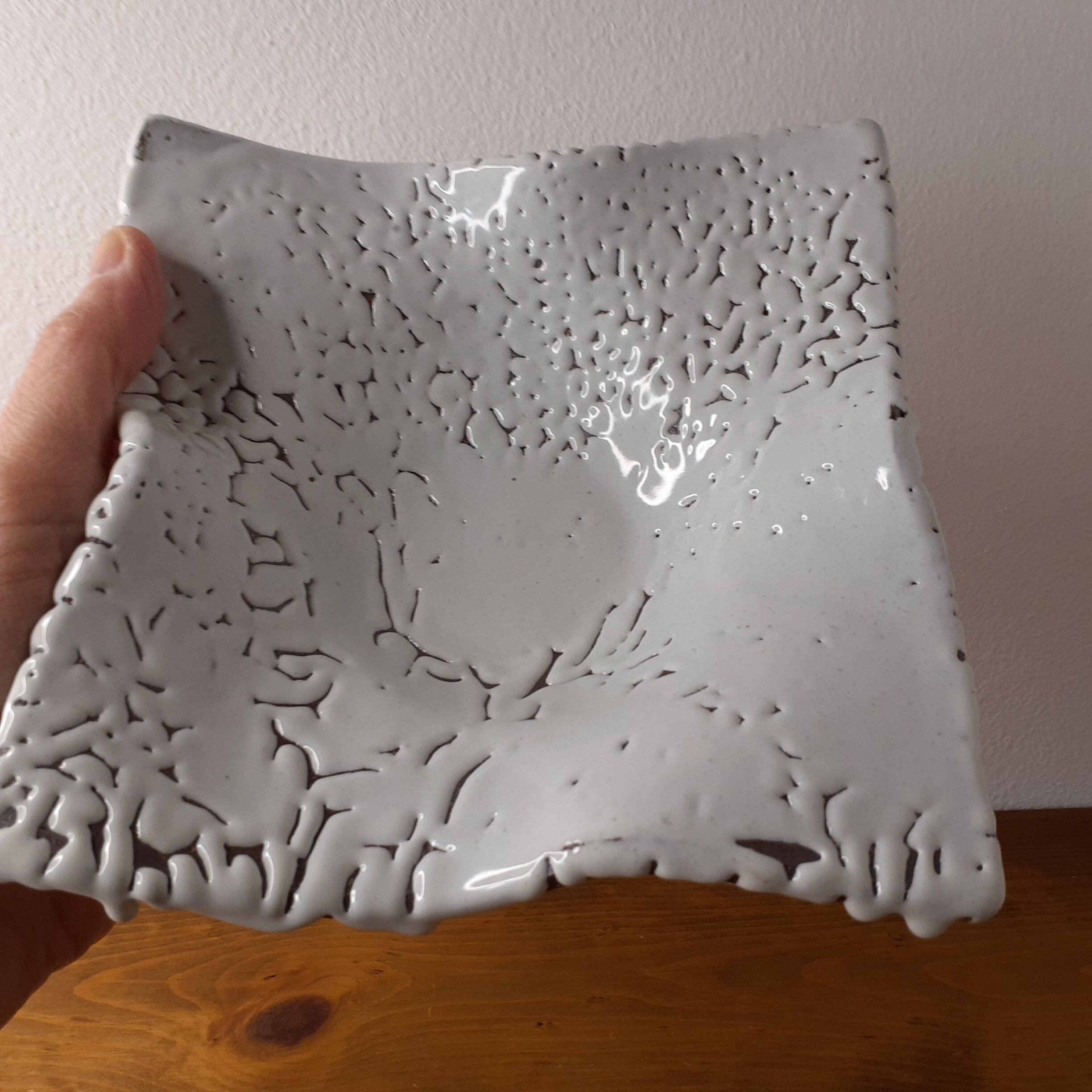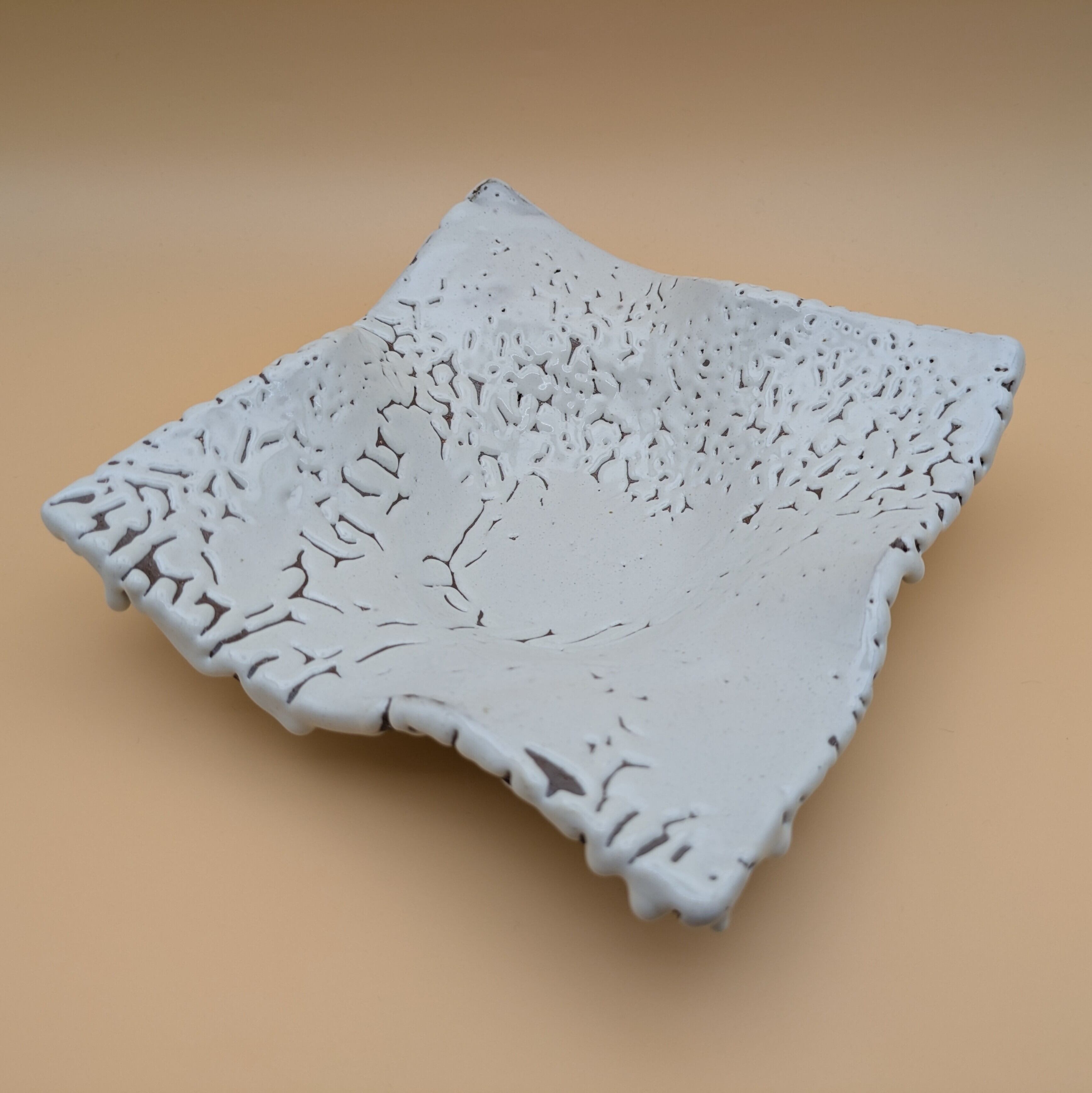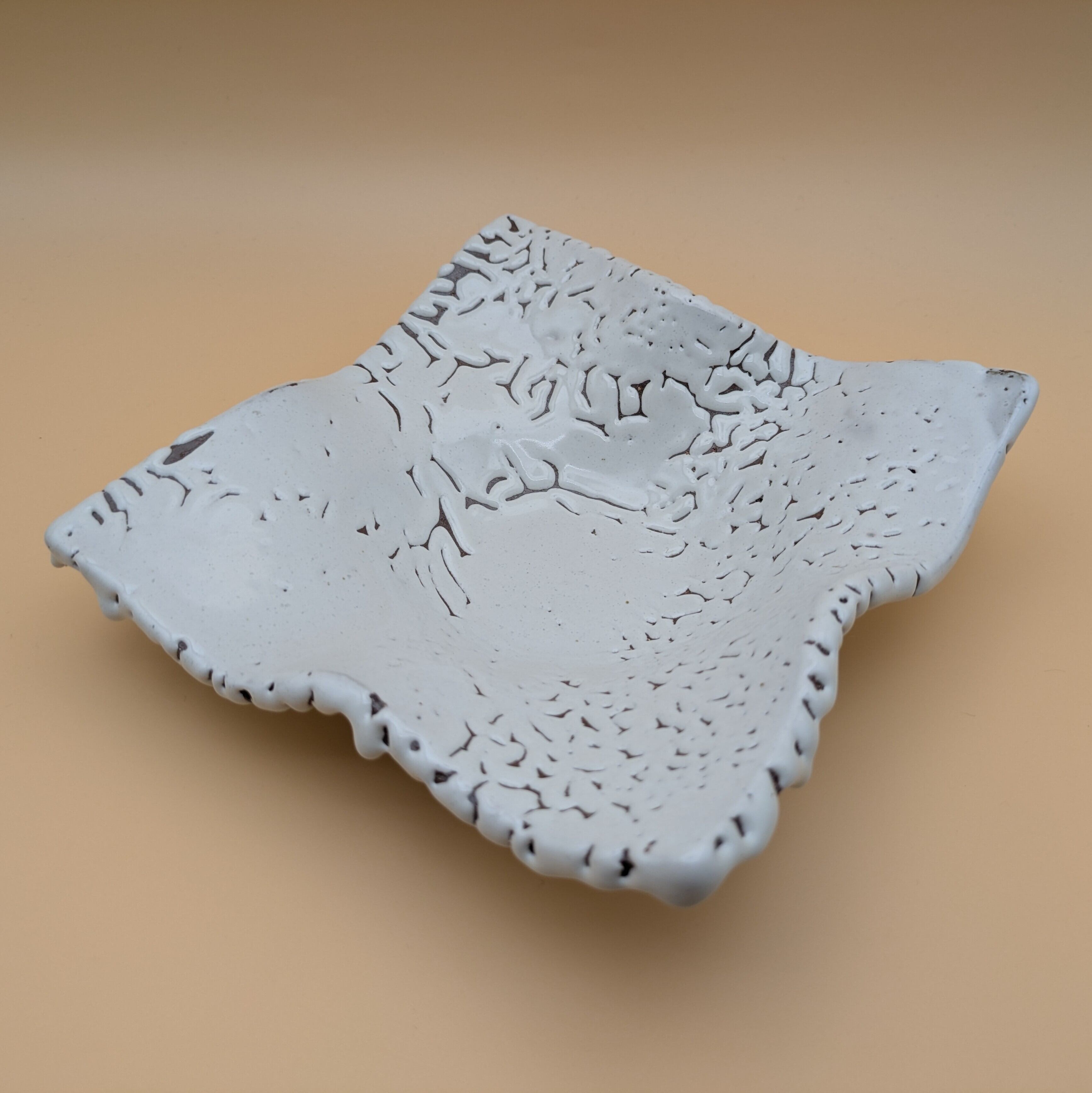 紙のようにうねりのあるユニークなスタイルは、手作業でひとつひとつ焼かれた丁寧な職人技が感じられる逸品です。