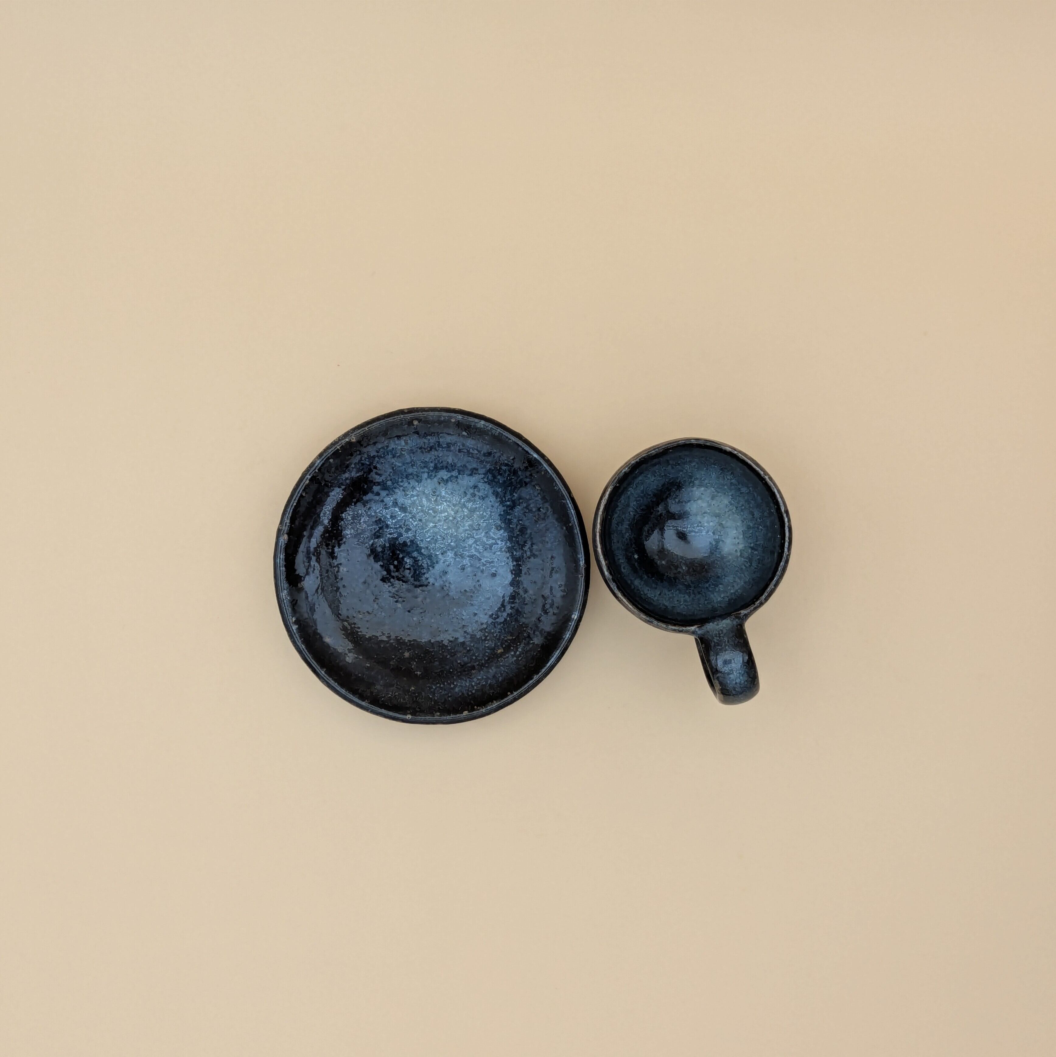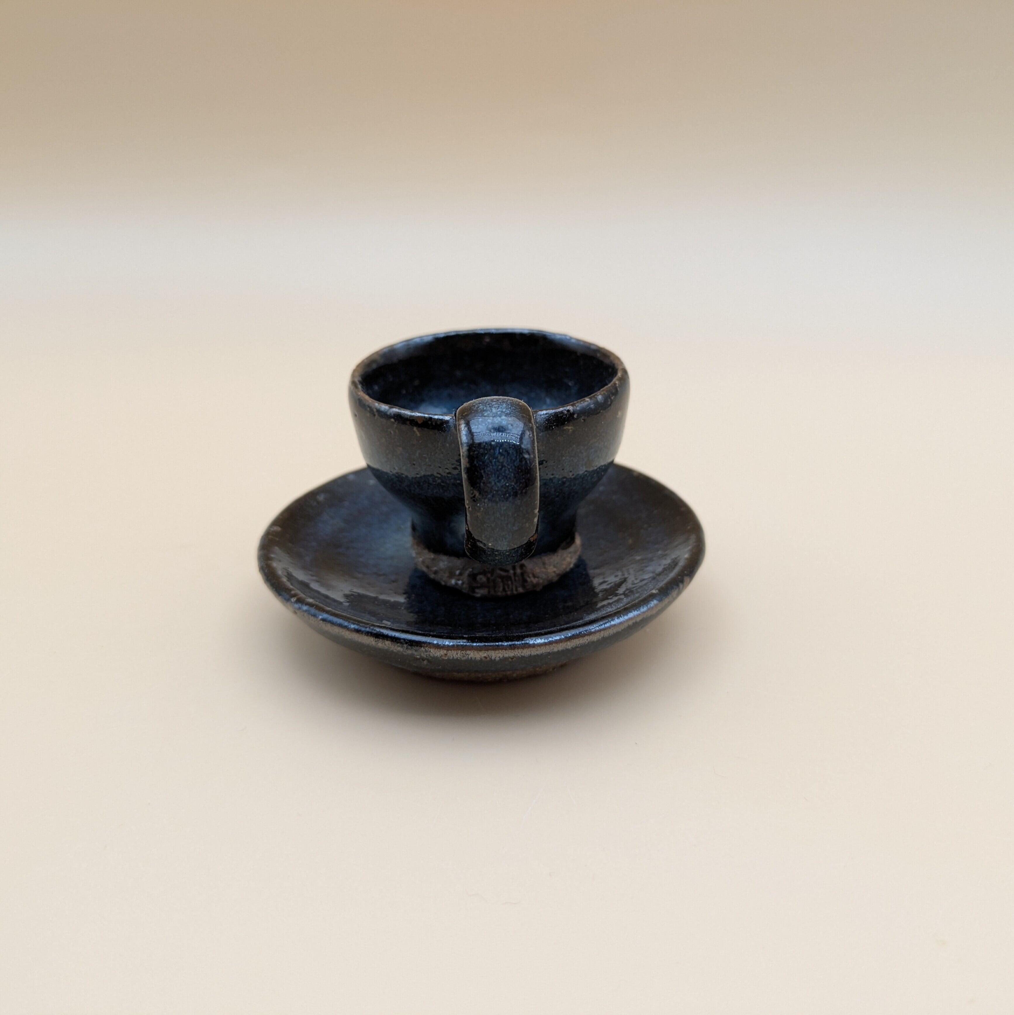 コーヒーカップ&ソーサー(ミニチュア) 萩焼(青01)